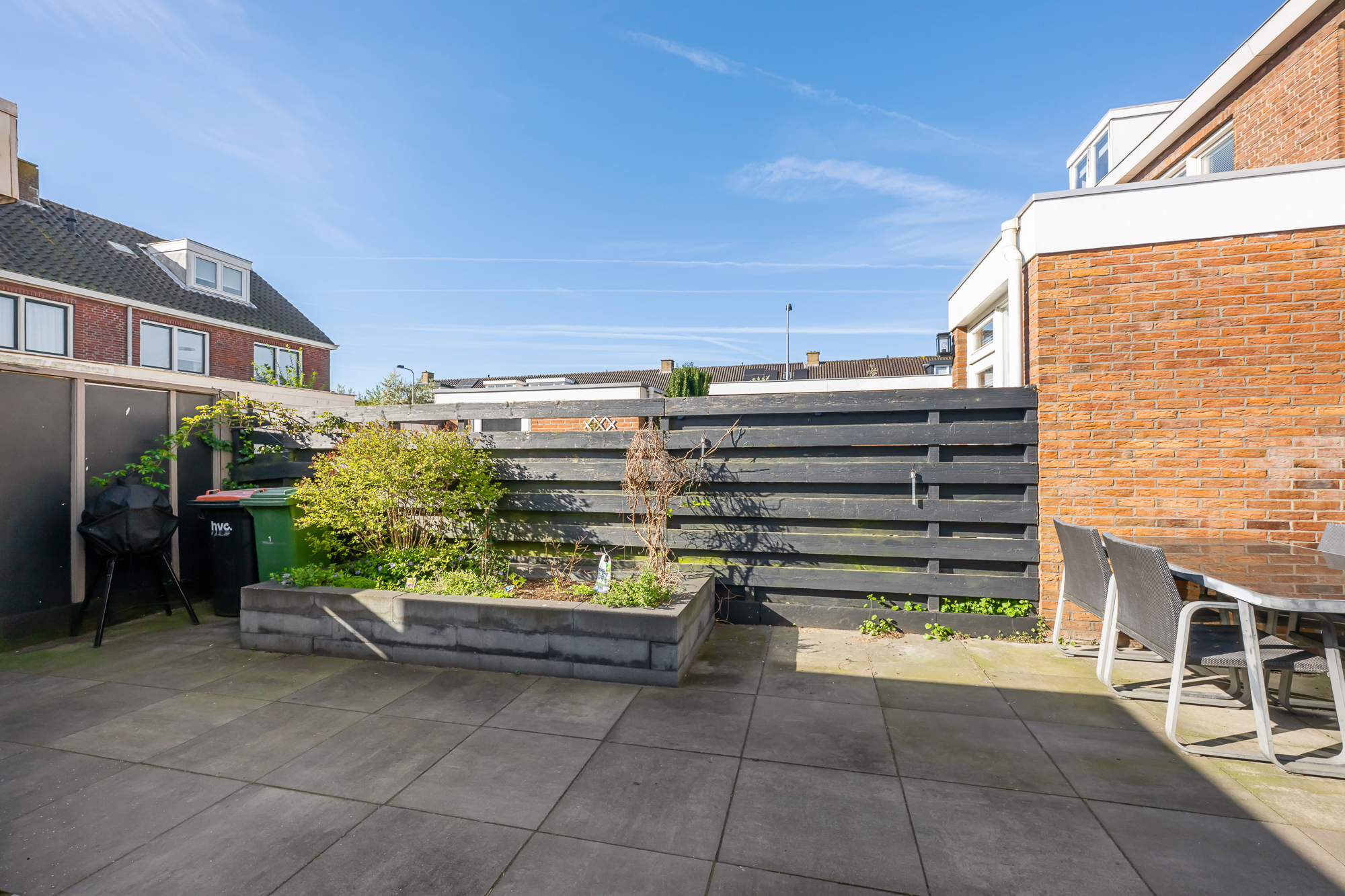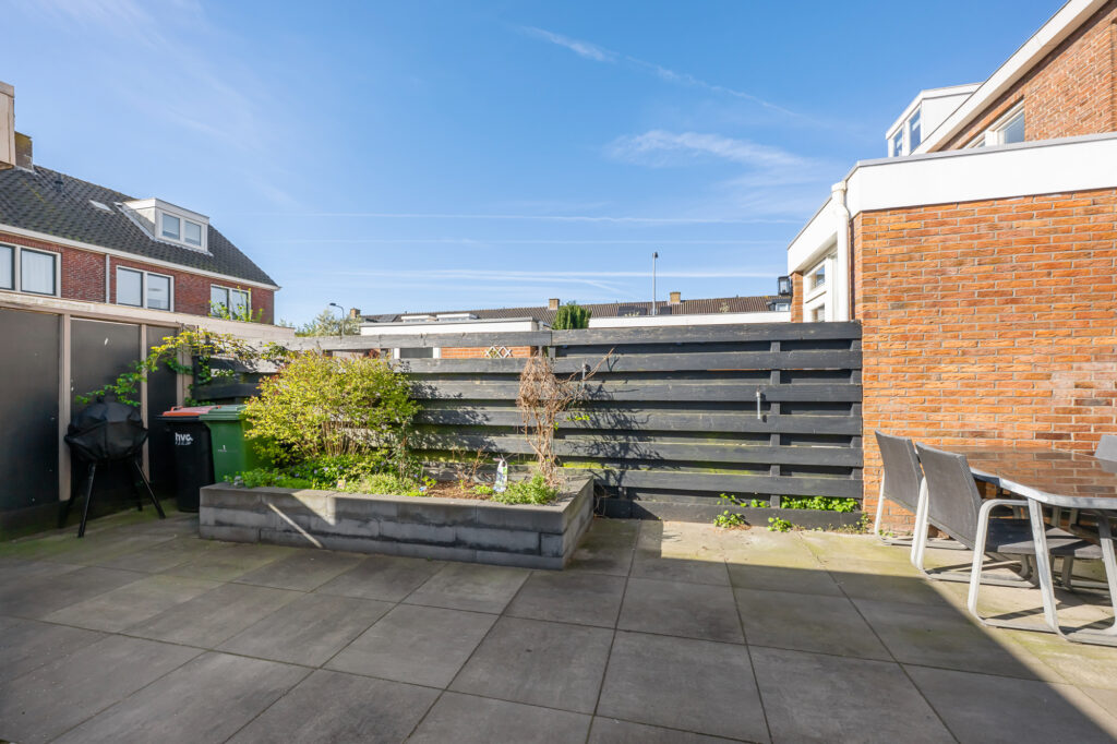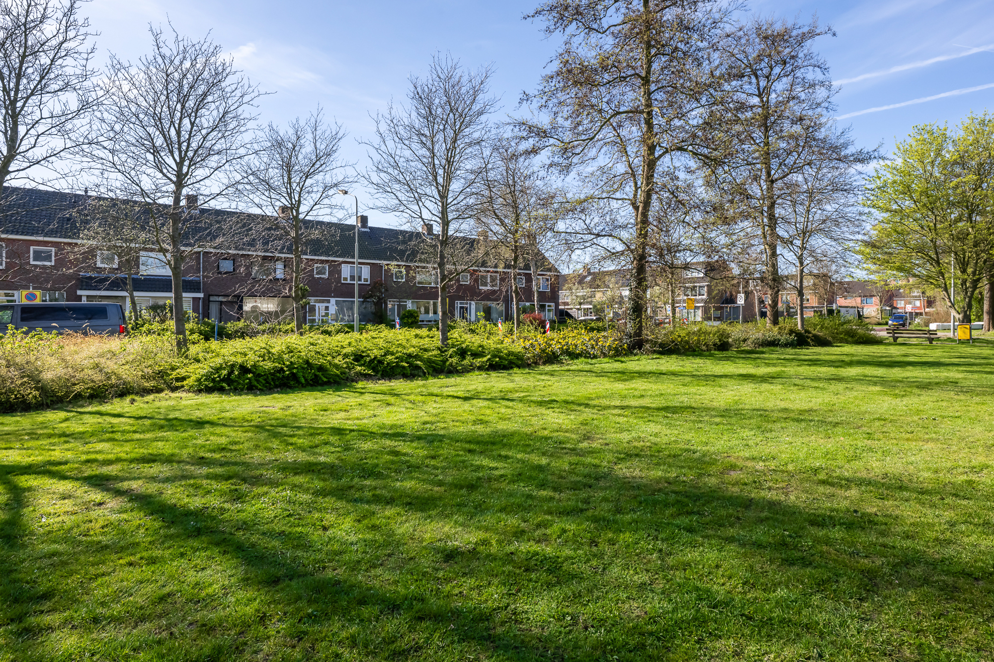 De achtertuin is verzorgd aangelegd en biedt voldoende ruimte voor meerdere zithoeken of om een plekje te creëren voor de groene vingers. Aan de voorzijde profiteer je van het vrije uitzicht op het speelveld.