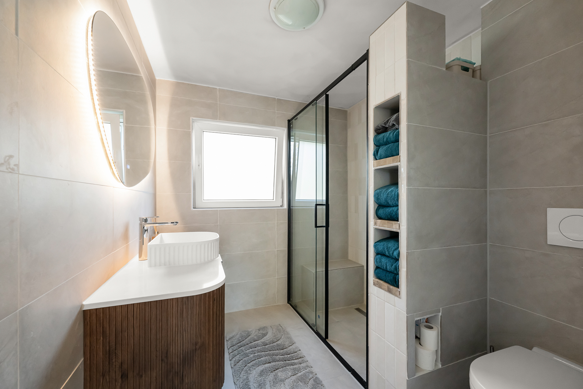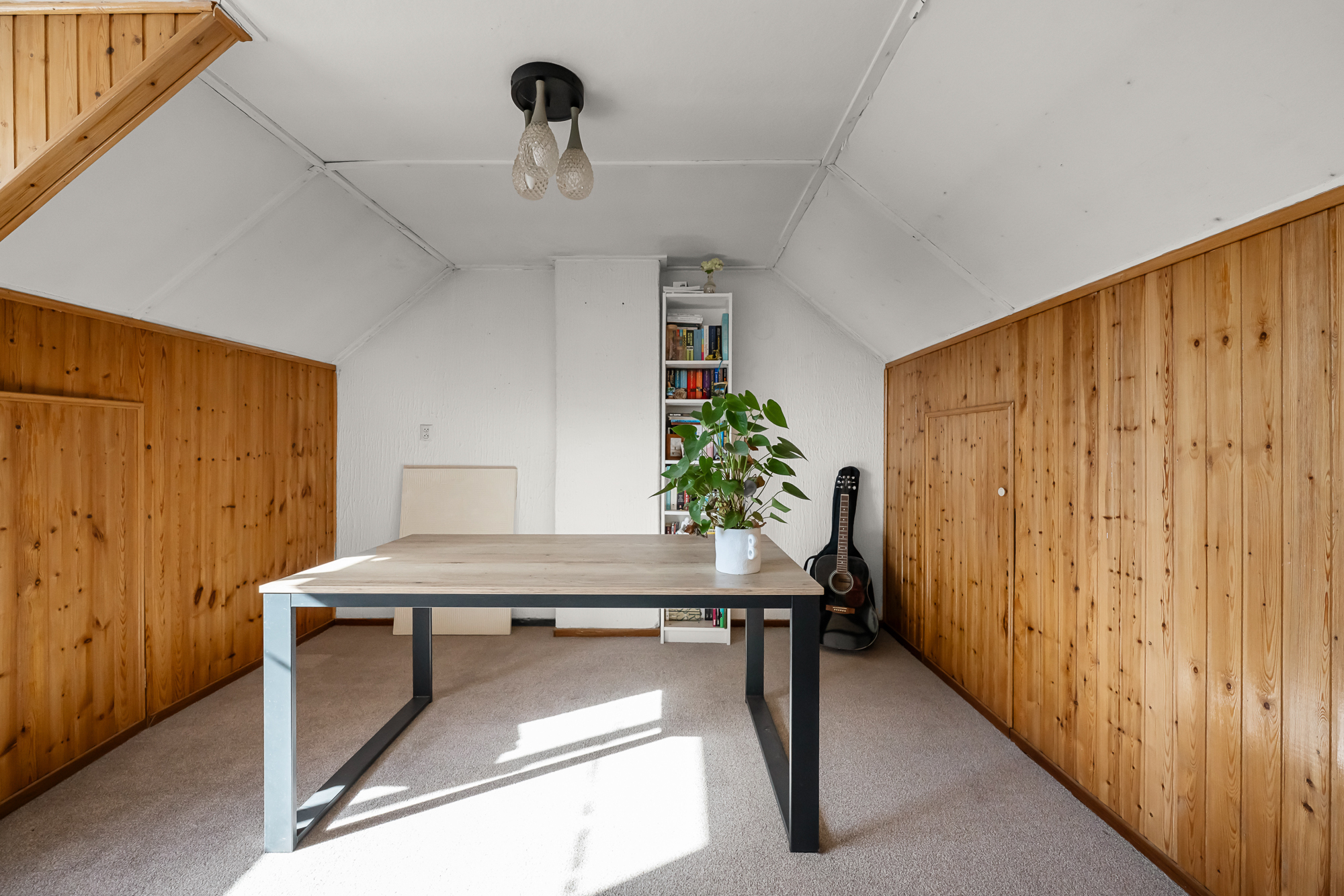 Op de verdieping zijn meerdere slaapkamers aanwezig, ideaal voor een gezin of een eigen werkplek. De recent vernieuwde badkamer (2025) is modern afgewerkt en voorzien van een douche, toilet en wastafelmeubel. Niet geheel onbelangrijk, is de vloerverwarming dus hier geen koude voeten! Via de vaste trap naar zolder bereiken we de voorzolder met opbergruimte, CV- en wasmachineaansluiting. Tevens is hier ook nog een volwaardige slaapkamer aanwezig met dakkapel welke nog volledig naar eigen wens en smaak te moderniseren valt.