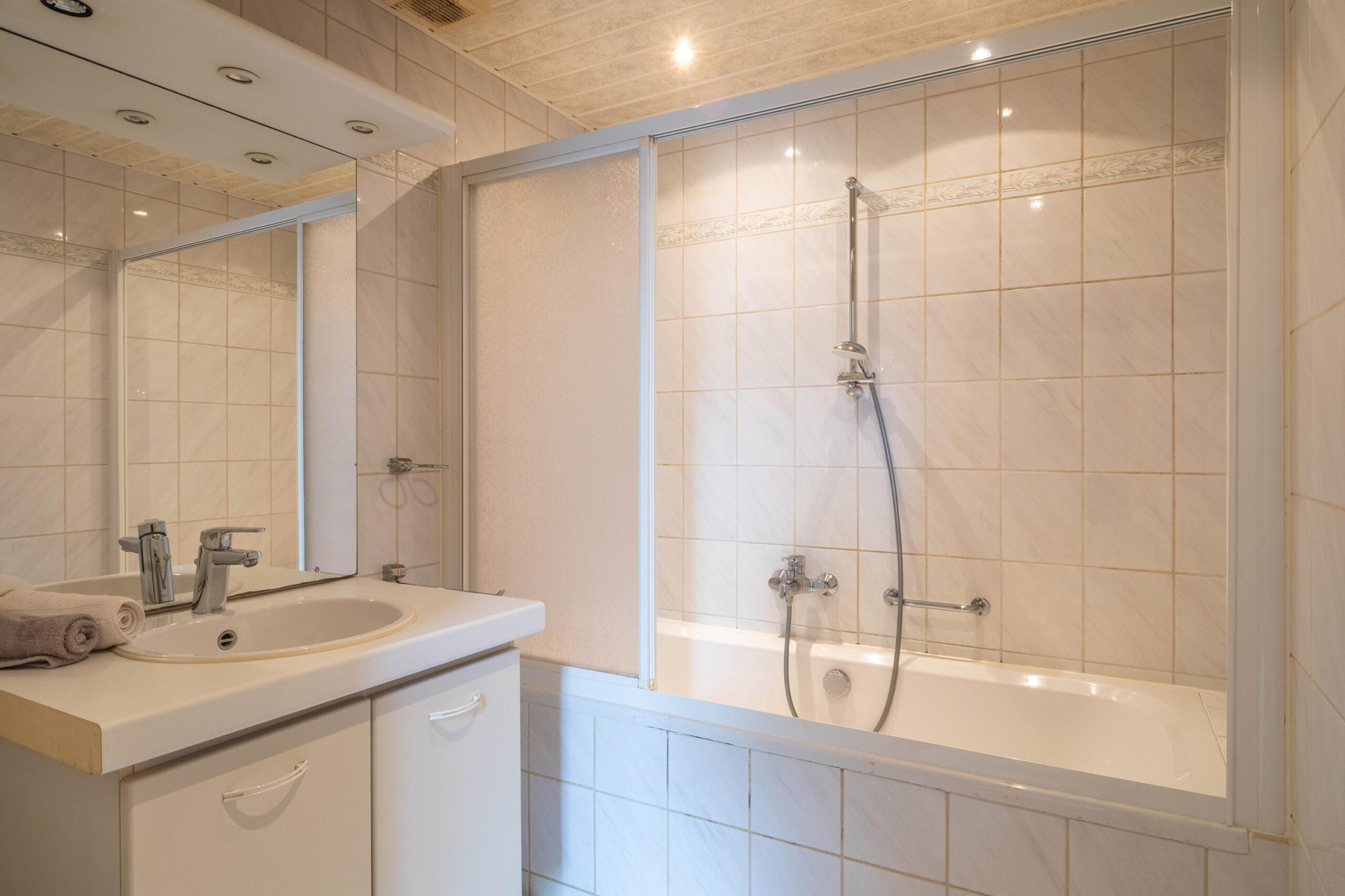 – badkamer op de begane grond met ligbad/douche en wastafelmeubel;