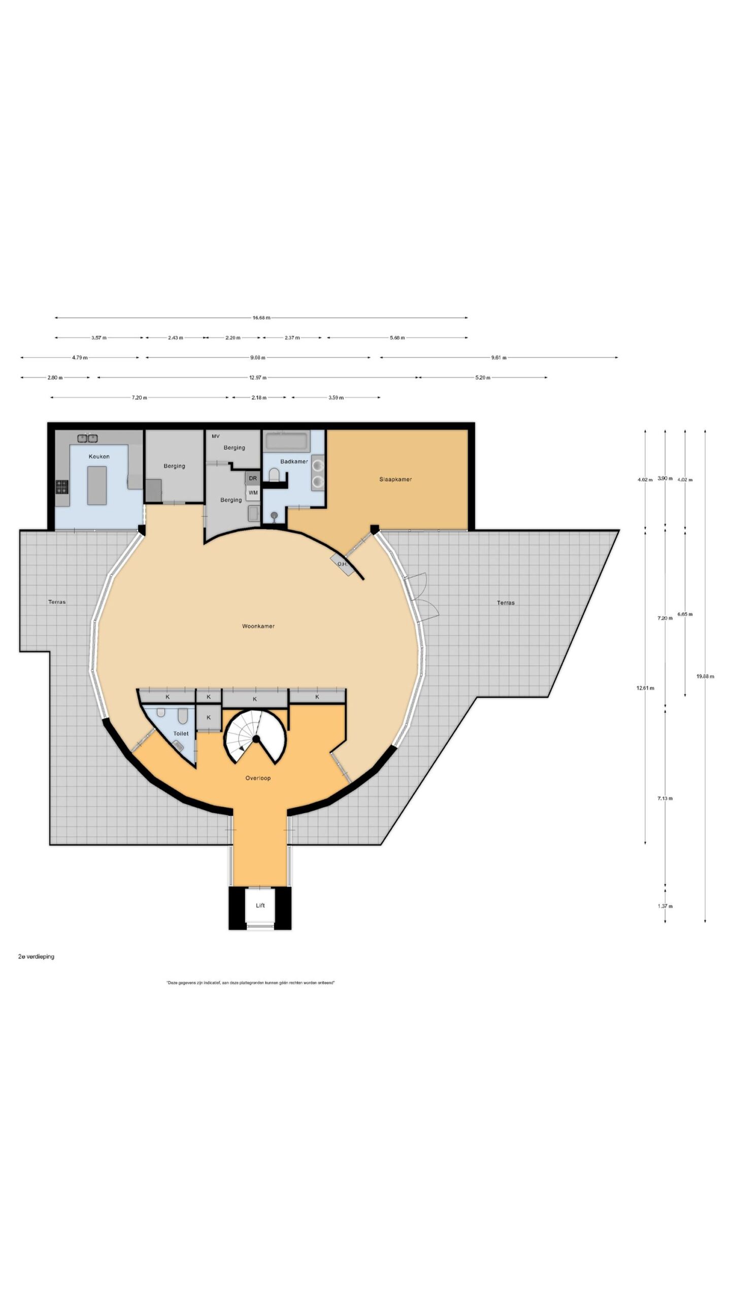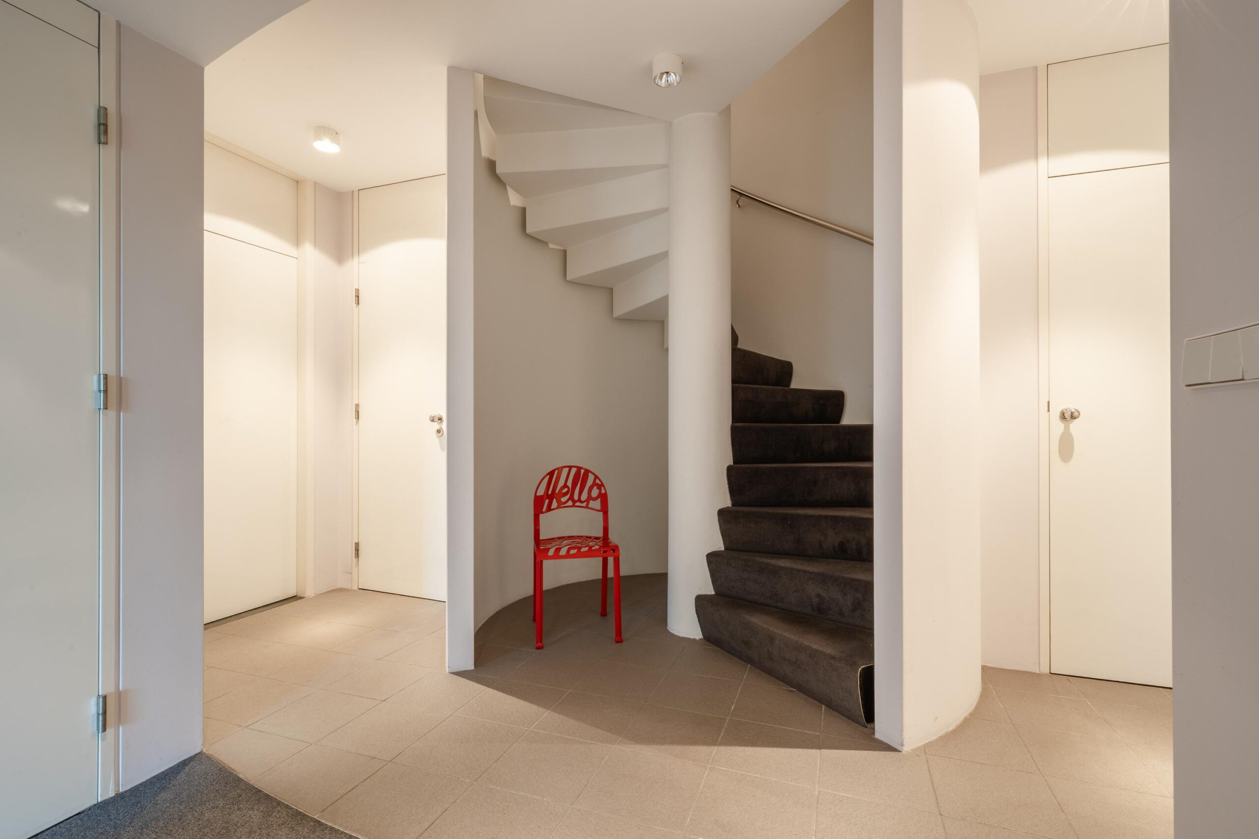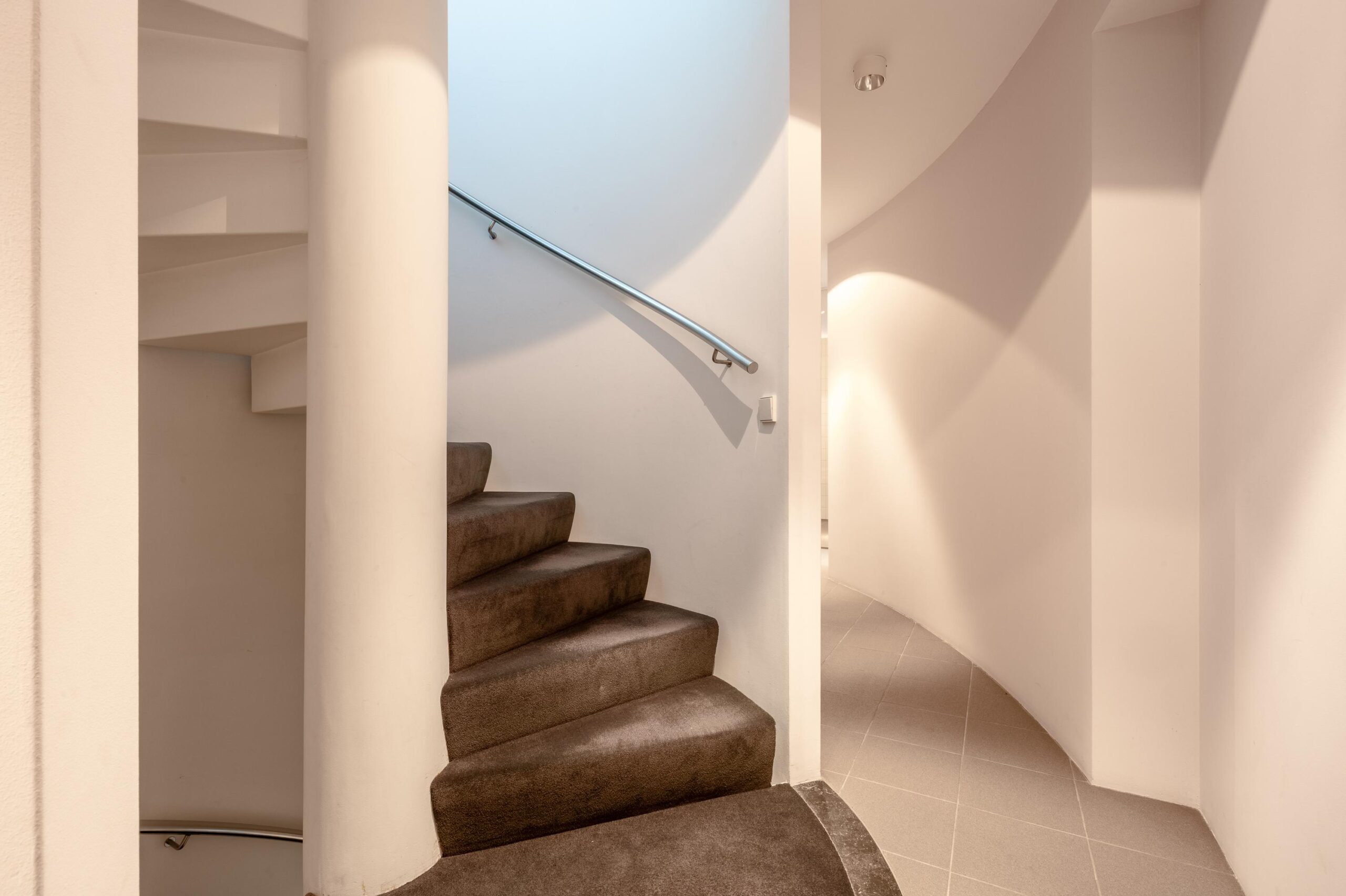 Via de specifieke spiltrap bereikt u de woonverdieping op het hoogste niveau.