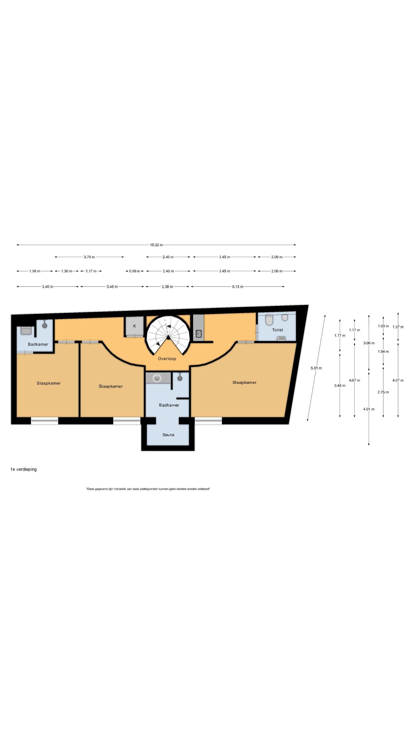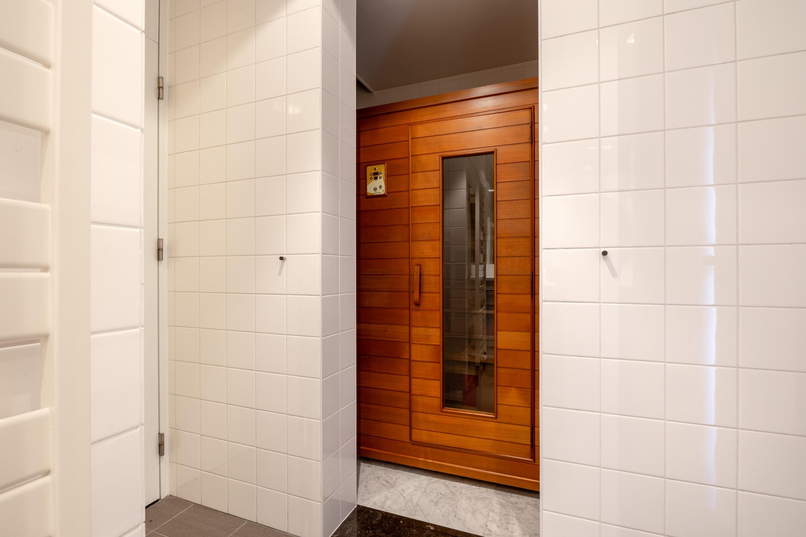 Eerste verdieping: Op deze verdieping treft u een drietal slaapkamers, ieder met eigen sanitaire voorzieningen. Ideaal voor de kinderen of logés. In het centrum van de woning bevindt zich ook een infrarood sauna.