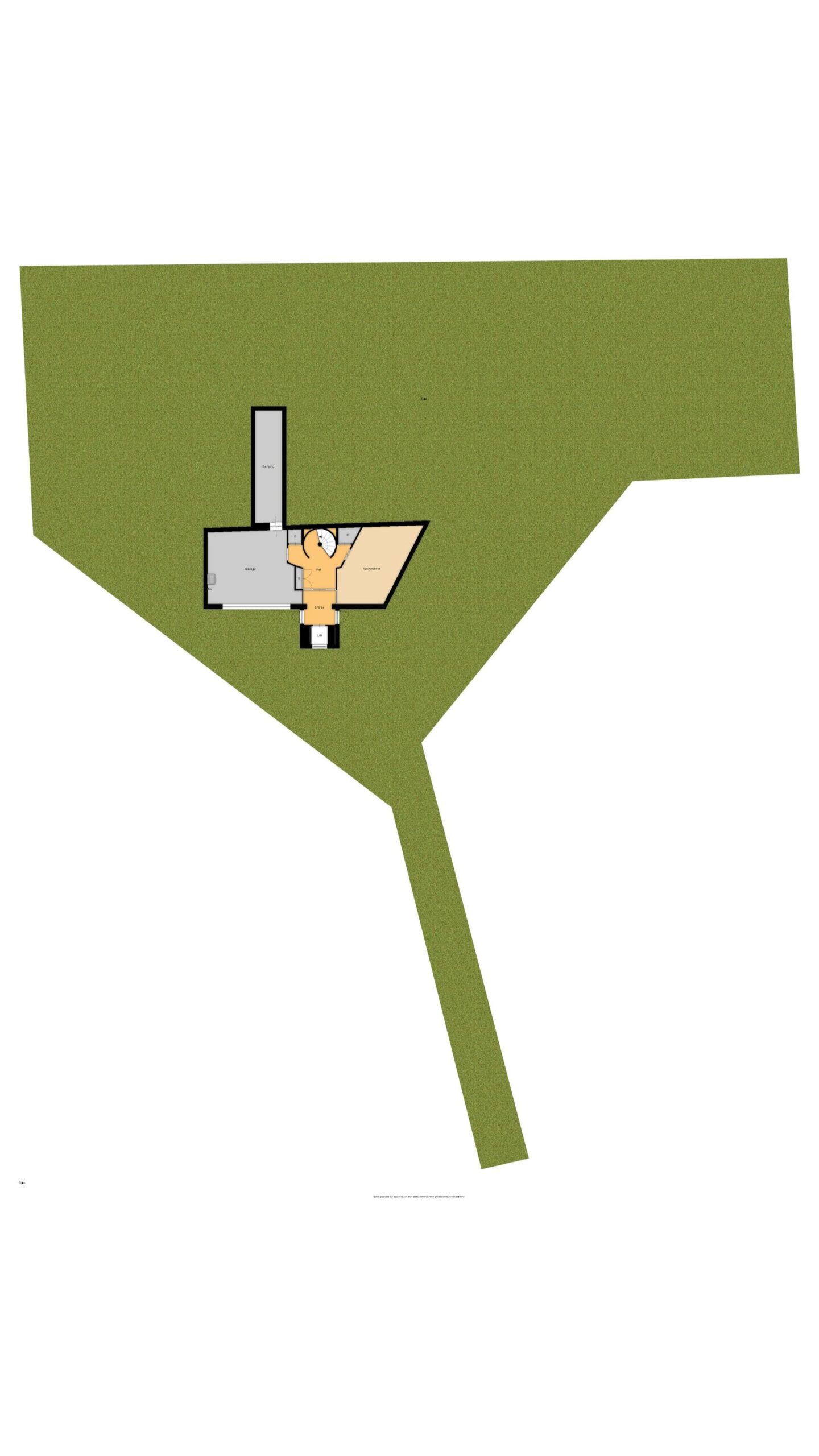 Begane grond: Na de entree bevindt zich het ontvangstportaal, dat toegang geeft tot de begane grond, als ook de lift naar de woonverdiepingen. Op de begane grond vindt u naast de markante trapopgang naar de bovenverdiepingen, eveneens een grote werkkamer die geschikt is voor vele doeleinden. Ook is er een inpandig bereikbare dubbele garage met een elektrische sectionaaldeur aanwezig. Vanuit de garage is er tevens toegang tot een royale berging.
