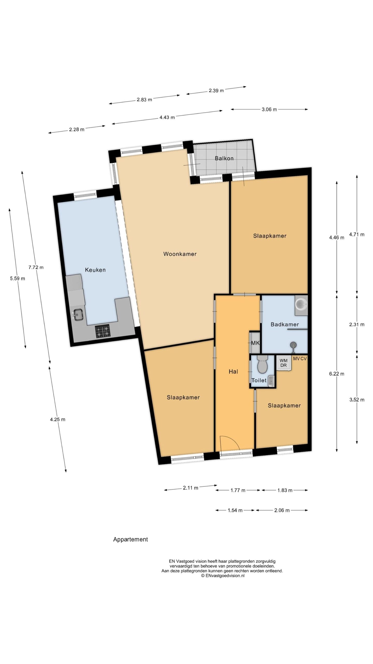 – Het appartement beschikt over drie slaapkamers;