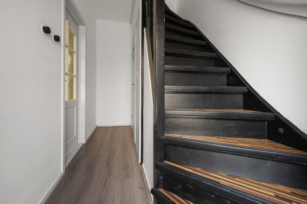 Aan de achterzijde bevindt zich de open keuken, die door de praktische opstelling en de verbinding met het eetgedeelte een fijne centrale plek vormt in huis. De keuken beschikt over diverse inbouwapparaten en biedt genoeg werkruimte om uitgebreid te koken. Vanuit de keuken stap je via de achterdeur zo de zonnige tuin in – ideaal wanneer je in de zomer buiten wilt eten of even met een kop koffie van de zon wilt genieten.