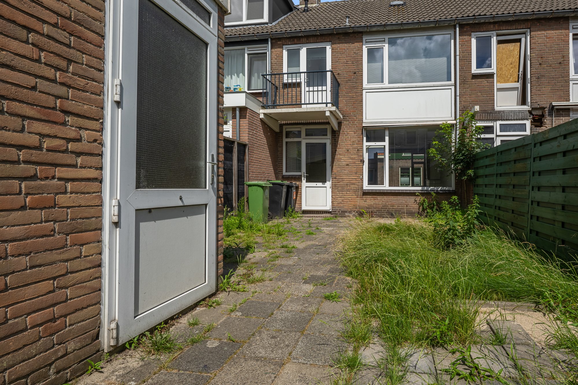De achtertuin ligt gunstig op het zuiden, waardoor je hier de hele dag door zon hebt. Met een lengte van circa 8,5 meter is er ruimte genoeg voor zowel een gezellige loungehoek als een eettafelset. Achterin de tuin staat een stenen berging, perfect voor het stallen van fietsen of (tuin)gereedschap. Dankzij de achterom is de tuin ook via de achterzijde te bereiken – praktisch en prettig in het dagelijks gebruik.