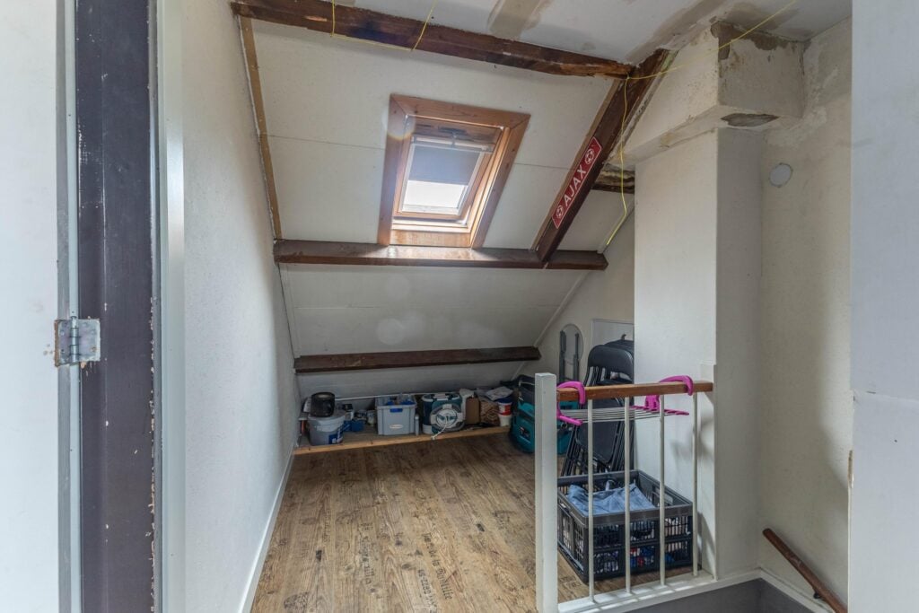 Op een centrale locatie is deze fijne tussenwoning gelegen, met heerlijk zonnige achtertuin en 4 goede slaapkamers! De woning beschikt over een lichte woonkamer en een half open keuken met divers inbouwapparatuur. Op de eerste verdieping zijn 3 slaapkamers aanwezig en een ruime badkamer met inloopdouche, dubbele wastafel en 2e toilet. Via een vaste trap is de 2e verdieping te bereiken, waar een ruime zolderkamer is met dakkapel aan de achterzijde. In de ruime en zonnige achtertuin (zuidoosten) staat een stenen berging, voorzien van elektra, met aangebouwde overkapping en achterom. Ook de locatie is ideaal: dichtbij alle belangrijke voorzieningen, zoals basisscholen, supermarkten, openbaar vervoer en uitvalswegen. Kortom, een woning met veel potentie en de moeite waard om een kijkje te komen nemen!