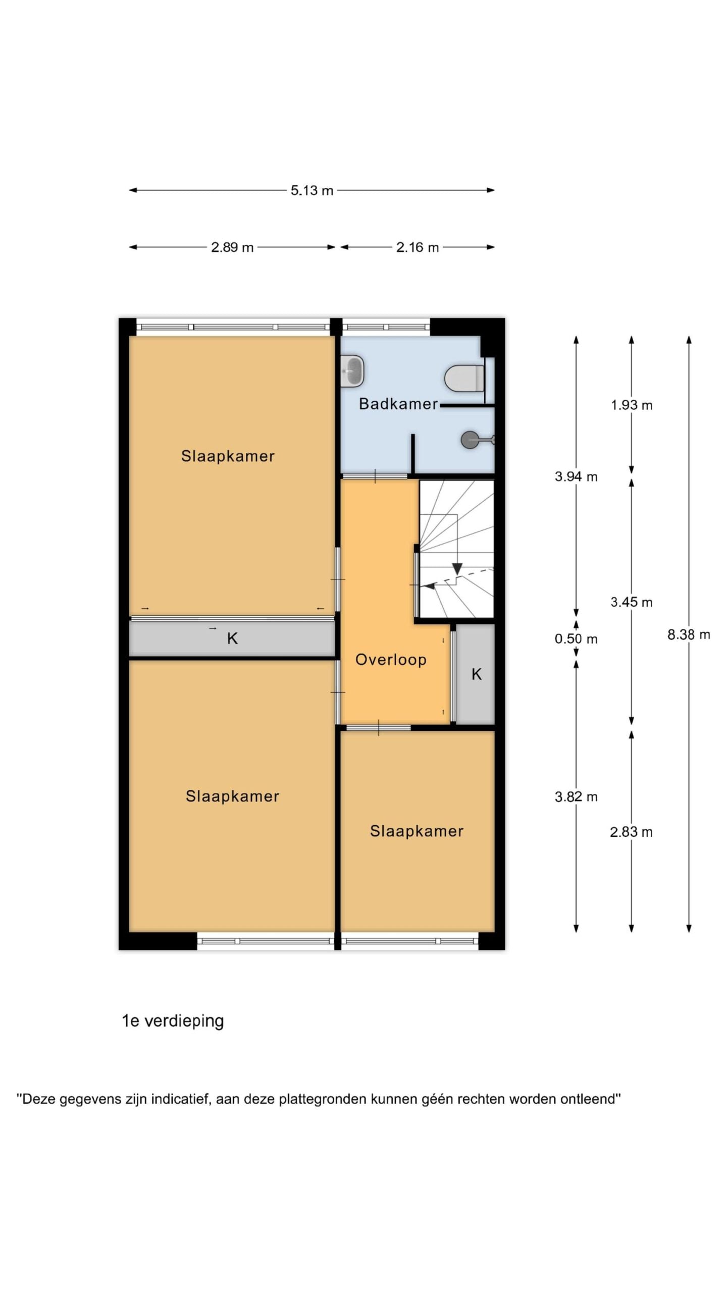 Via de open trap in de woonkamer kom je op de eerste verdieping waar drie goed bemeten slaapkamers zijn gelegen. De badkamer is netjes en voorziet in een douche, toilet en wastafelmeubel. Op de tweede verdieping is de vierde ruime slaapkamer gesitueerd, deze is voorzien van een dakkapel. De voorzolder is praktisch ingedeeld met wasmachine aansluiting en opstelplaats voor de cv-ketel.