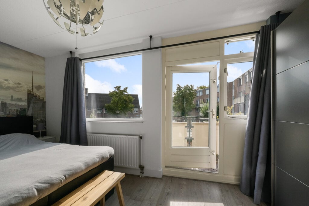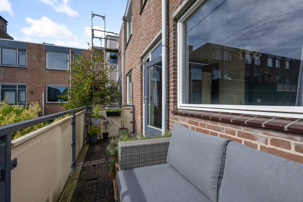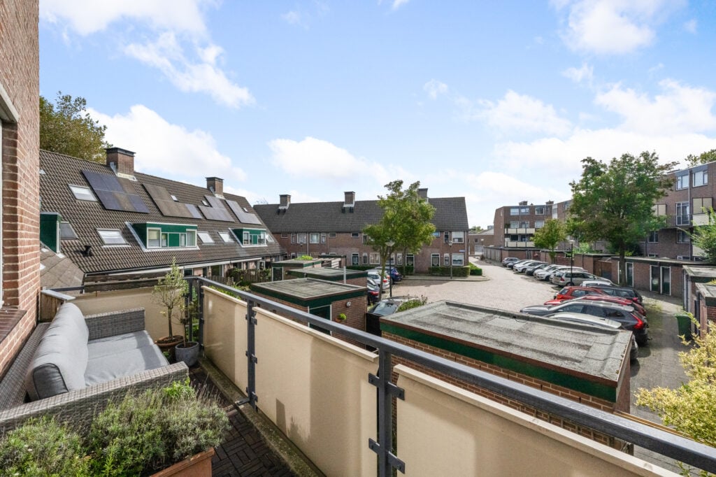 Op het zonnige balkon/terras, dat gunstig is gelegen op het zuiden, kun je volop genieten van de zon en het buitenleven. Een heerlijke plek om te ontspannen en te genieten van alles wat deze fijne woonomgeving te bieden heeft.