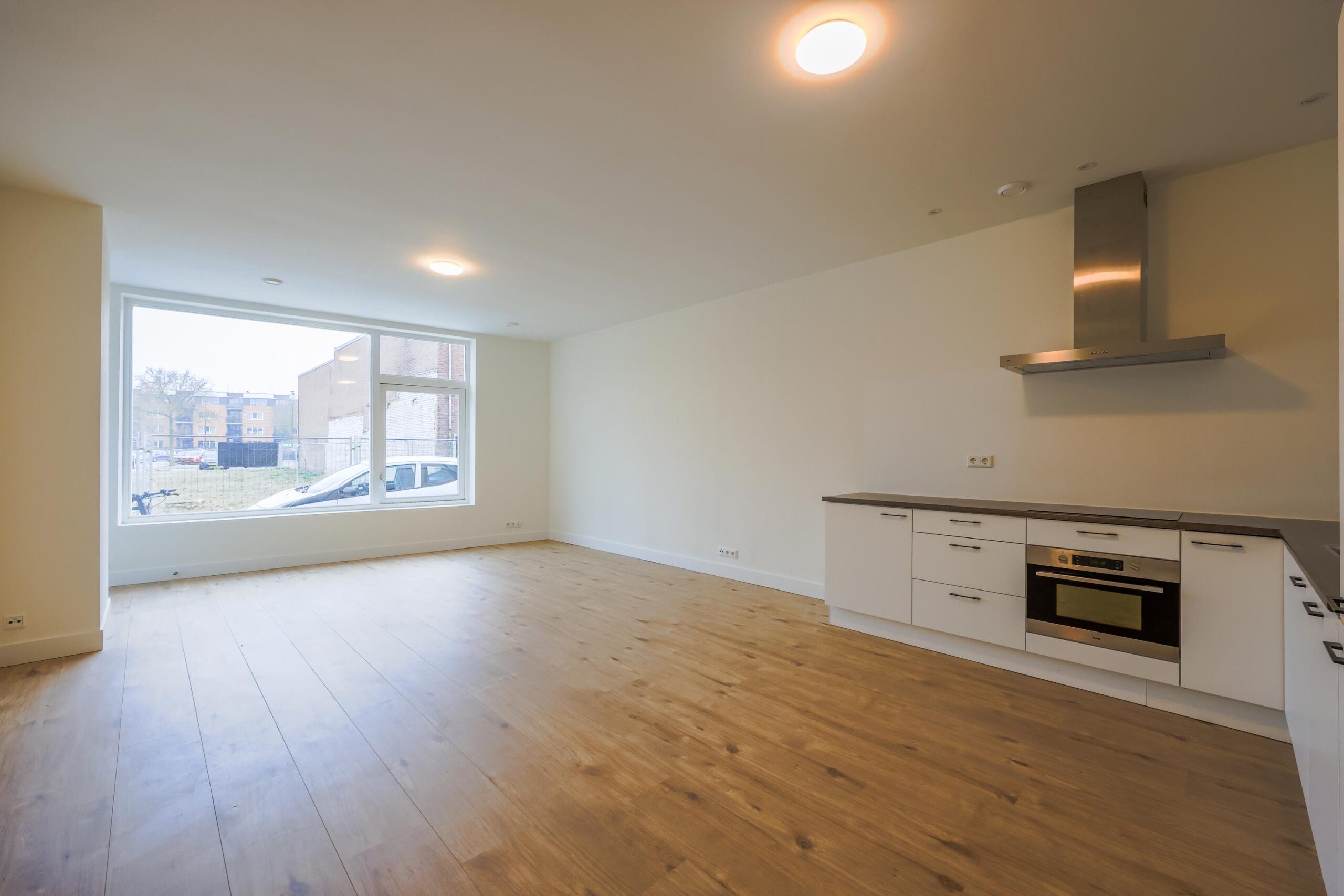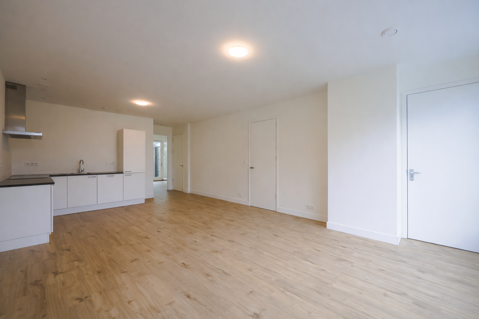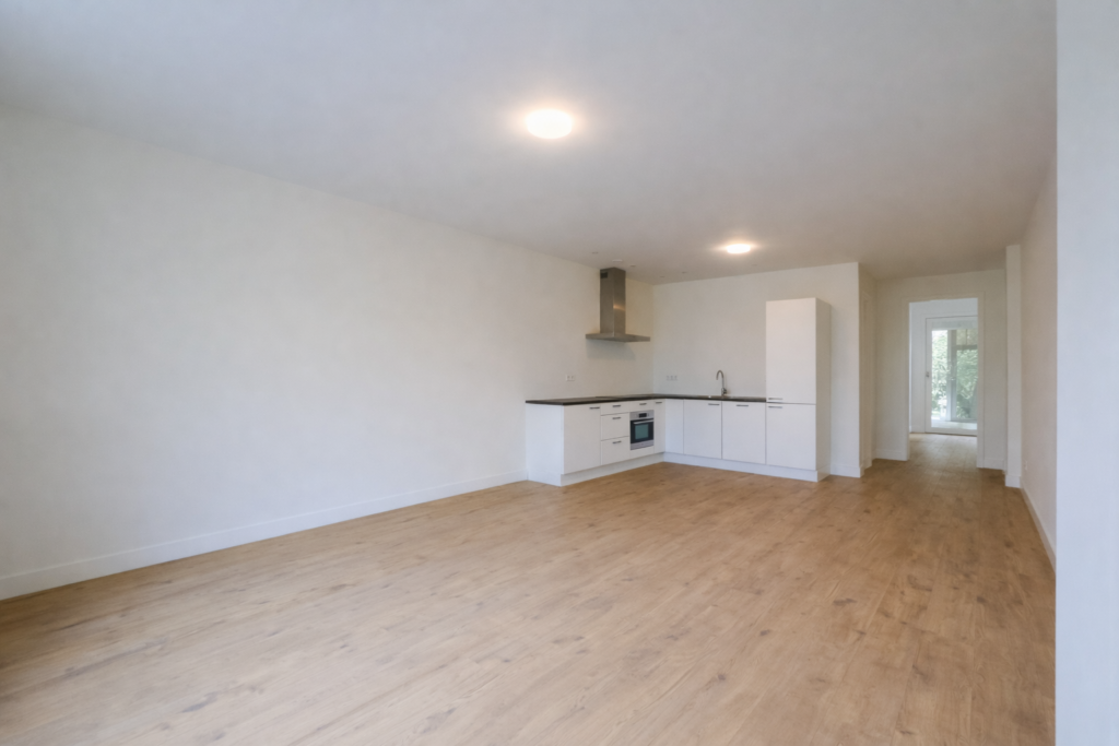 Je komt binnen in de ruime woonkamer, de ruimte is licht en gezellig en biedt voldoende ruimte voor een fijne zithoek en eettafel. De open keuken is functioneel ingericht en voorzien van diverse inbouwapparatuur.