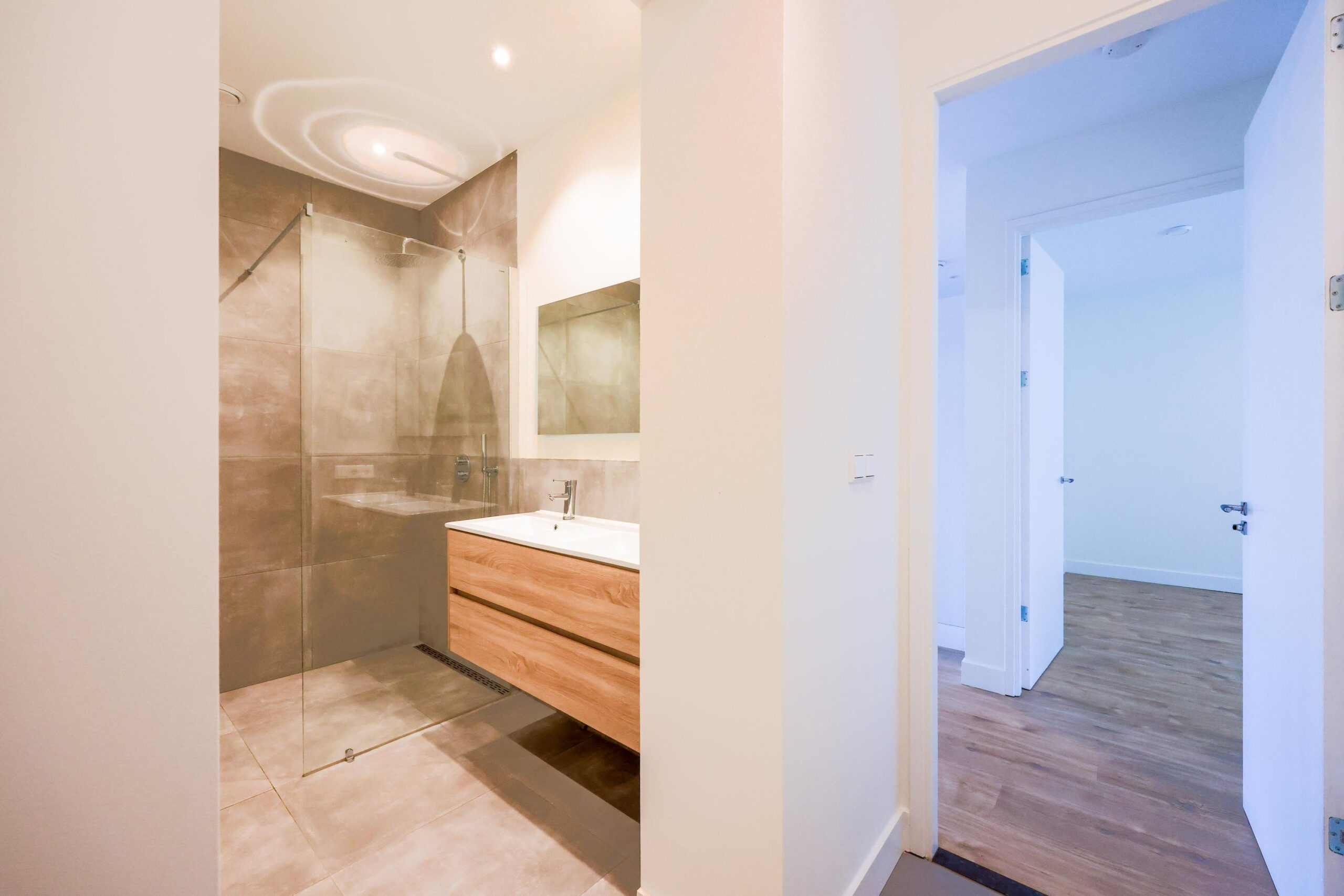 Verder beschikt de woning over twee slaapkamers die je flexibel kunt gebruiken als slaap-, werk- of hobbykamer, beide geven toegang tot de fijne stadstuin. De badkamer is voorzien van een douche, dubbele wastafelmeubel en toilet.