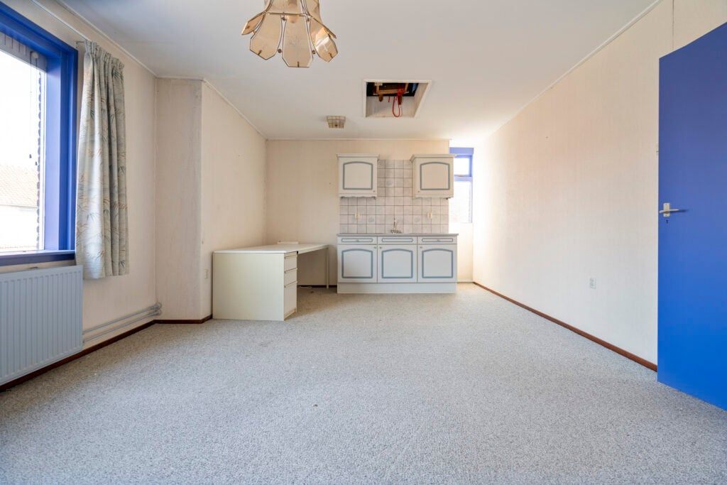 Via de voorzijde betreden we de woning en komen we in een eerste royale ruimte die direct tot de verbeelding spreekt. Deze ruimte heeft een eigen keuken en toilet, en leent zich perfect voor uiteenlopende doeleinden: een zitkamer, kantoor aan huis of praktijkruimte – de mogelijkheden zijn eindeloos.