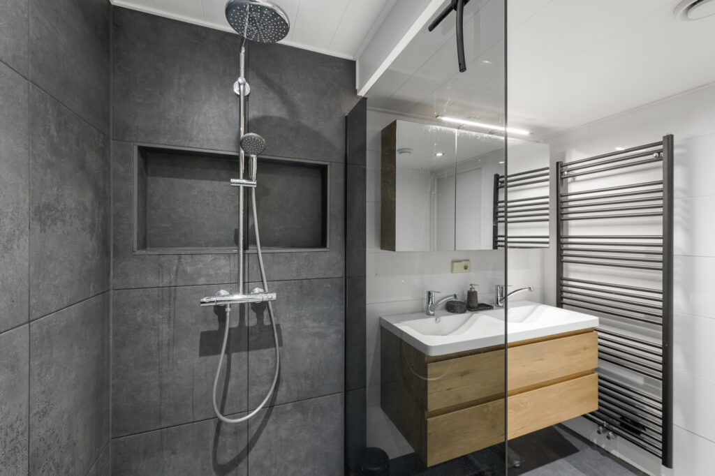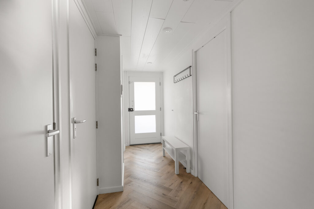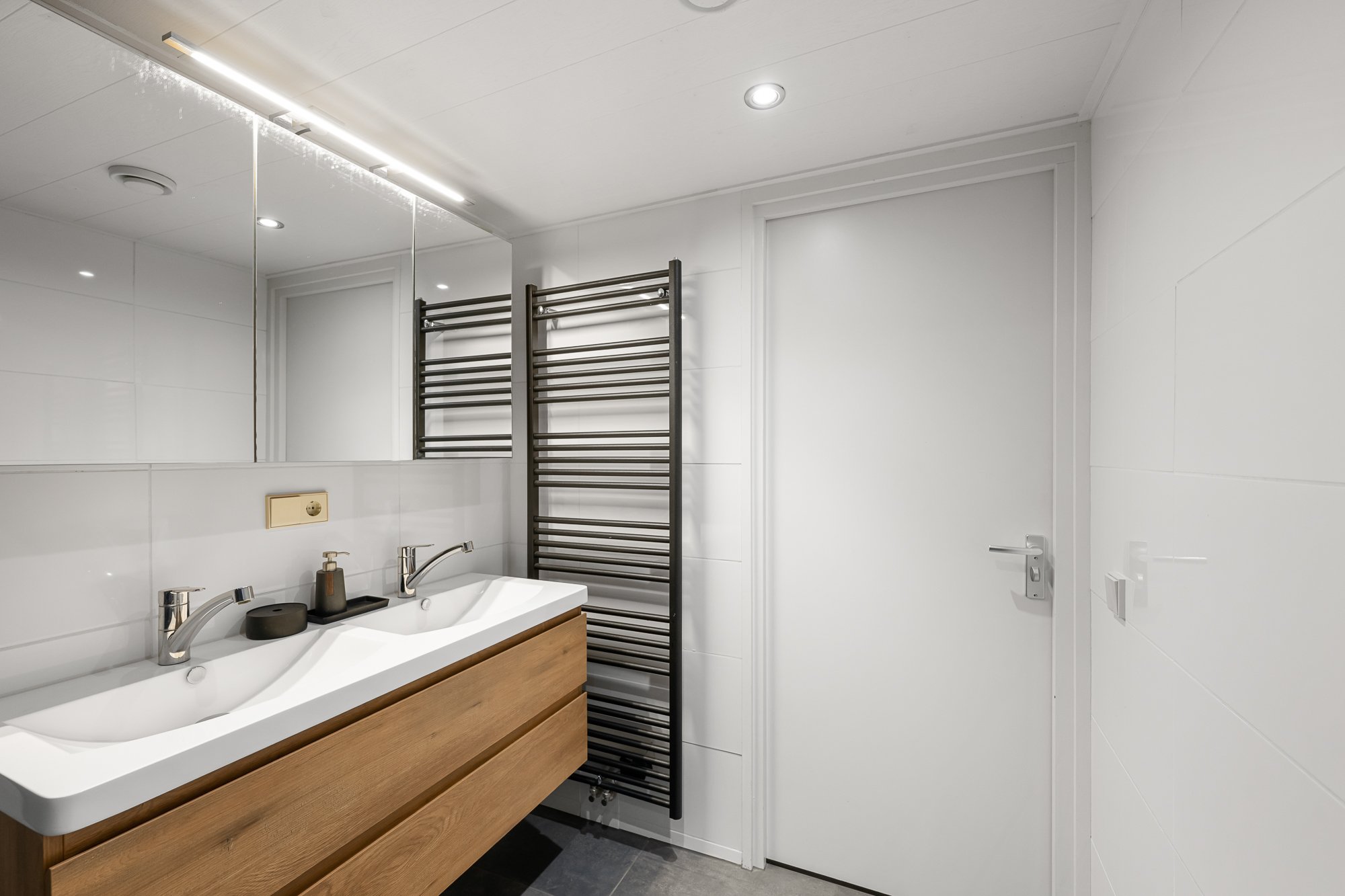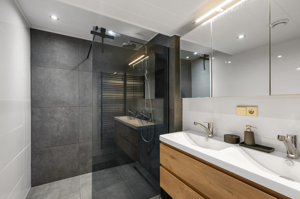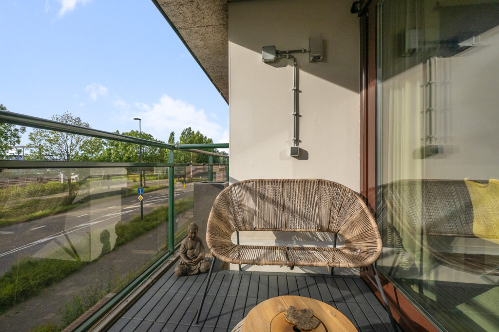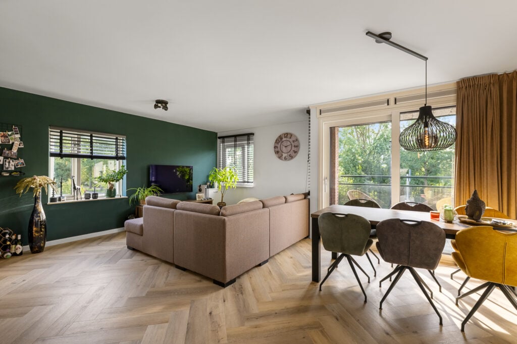 Met de lift bereik je de eerste verdieping, waar de entree van het appartement uitkomt op een hal met videofoon en een vernieuwde meterkast. Vanuit de hal zijn de separate toiletruimte, een praktische bergruimte met de opstelling van de cv-ketel (2020) en een betegelde wasruimte met aansluitingen voor wasmachine en droger bereikbaar. De ruime en sfeervolle woonkamer, voorzien van vloerverwarming, biedt een fijne lichtinval en geeft toegang tot het balkon op het zuidoosten. Aansluitend vind je de moderne keuken (2021), die is uitgerust met diverse inbouwapparatuur zoals een combimagnetron, koel-/vriescombinatie, vaatwasser, 4-pits inductiekookplaat met flexibele kookzones en een afzuigkap. Het appartement beschikt daarnaast over twee slaapkamers en een moderne badkamer met inloopdouche en dubbele wastafel.
