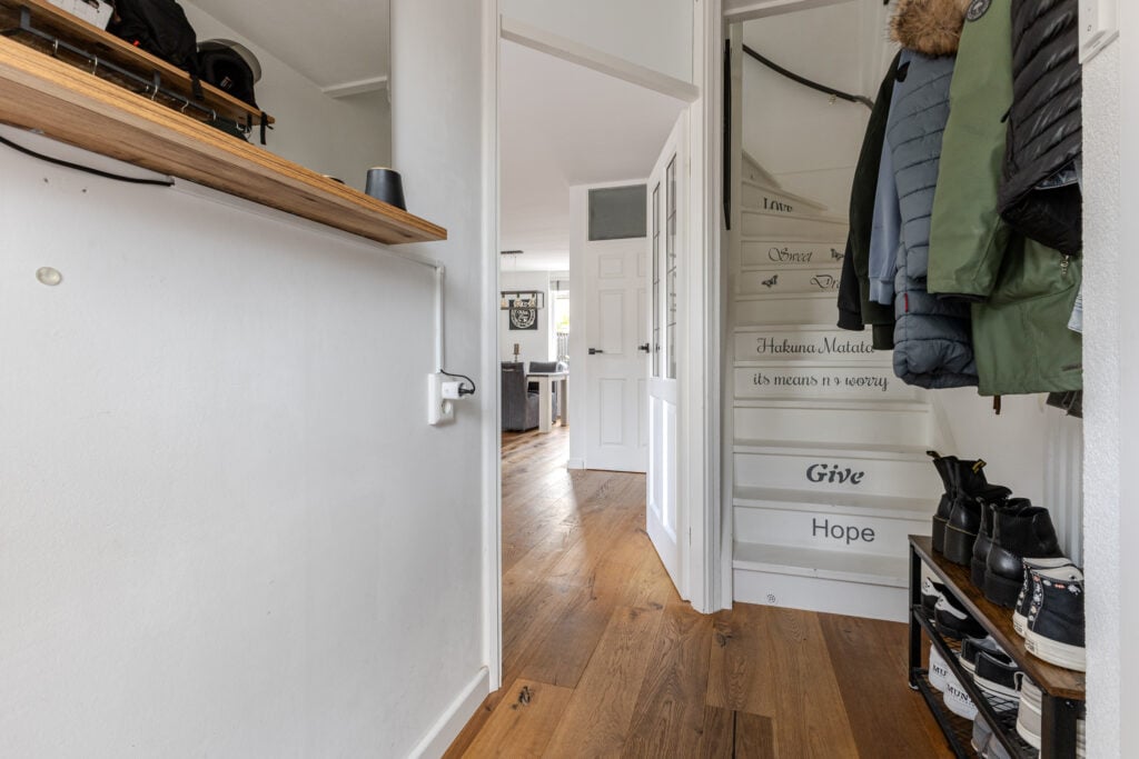 De woning is verdeeld in drie woonlagen en heeft een fijne, praktische indeling. Op de begane grond vind je een ruime en lichte woonkamer met houten vloerdelen en strak gestucte wanden. De woonkamer loopt over in de half open keuken, die in 2021 volledig is vernieuwd en is voorzien van een inductiekookplaat, Quooker, slimme dimmers en diverse inbouwapparatuur. Vanuit de keuken betreed je de royale achtertuin die in 2024 is vernieuwd en verhoogd. Hier kun je heerlijk genieten van lange zomeravonden door de gunstige ligging. De tuin beschikt over een stenen berging met elektra en een handige achterom. De zonwering zou overgenomen kunnen worden. Ook de voortuin is recent (juni 2024) verhoogd.
