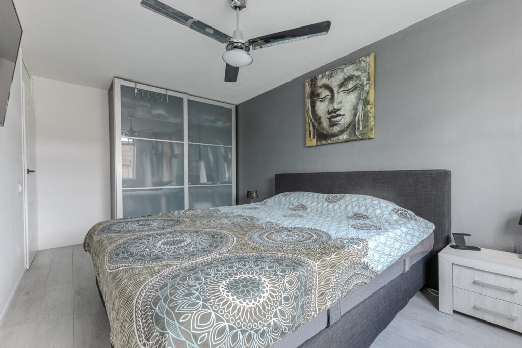 Op de eerste verdieping vind je drie goed bemeten kamers die je naar eigen behoefte kunt invullen. Of je nu kiest voor een comfortabele masterbedroom, een rustige werkplek en een ruime inloopkast of toch kiest voor 3 complete slaapkamers, hier heb je alle vrijheid. De slaapkamers zijn licht en praktisch ingedeeld, met voldoende ruimte voor kasten of een bureau. De badkamer is een fijne plek om de dag te beginnen of juist te eindigen. Met een ligbad, een aparte inloopdouche, een toilet en een breed wastafelmeubel is deze ruimte van alle gemakken voorzien. Een frisse, complete badkamer waar comfort en functionaliteit samenkomen.