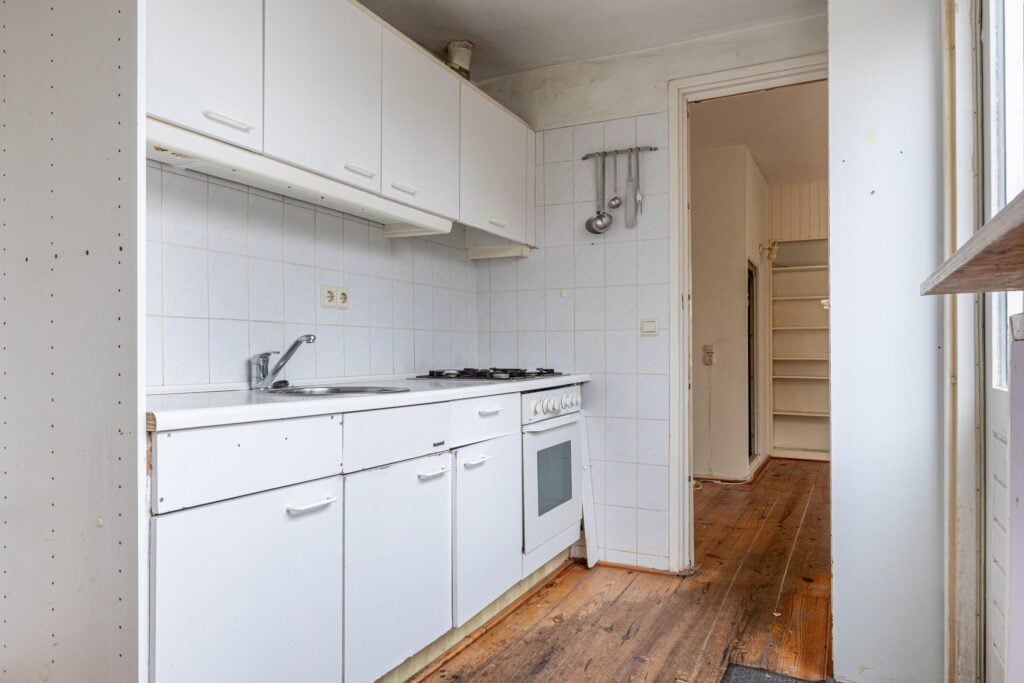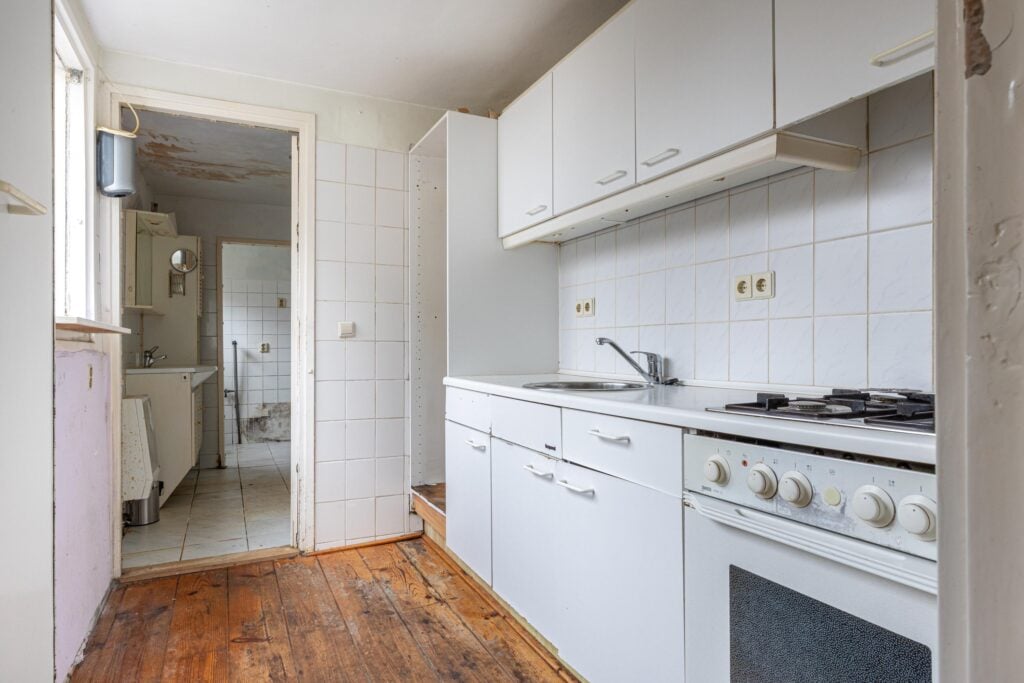 De keuken ligt aan de achterzijde van de woning en heeft uitzicht op de tuin. Vanuit de keuken stap je zo naar buiten. Met een nieuwe indeling kun je hier een praktische en moderne keuken realiseren die goed aansluit op de tuin.