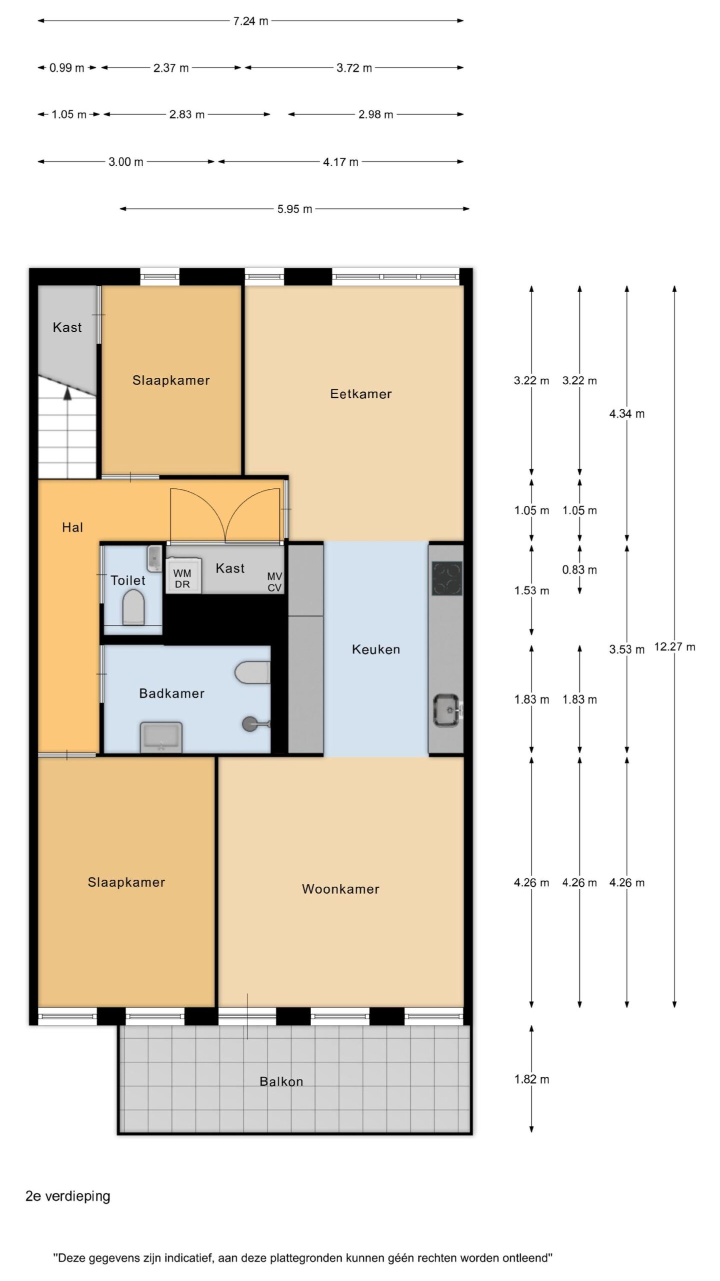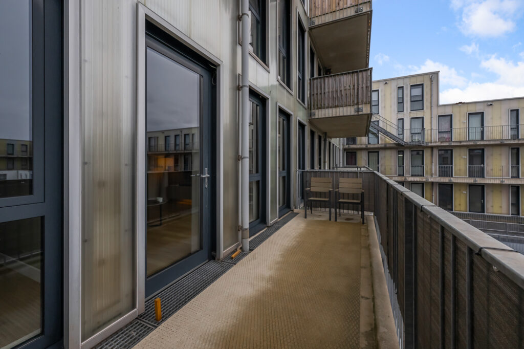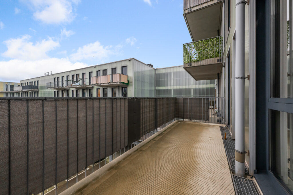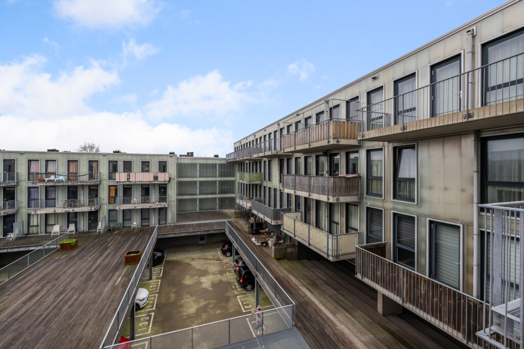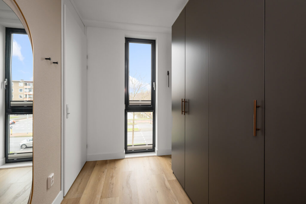De woonverdieping is ruim en licht opgezet. De woonkamer bevindt zich aan de achterzijde en beschikt over grote raampartijen die zorgen voor veel natuurlijk licht. Vanuit de woonkamer is het ruime balkon bereikbaar, gelegen op het zuidwesten, waar je heerlijk kunt genieten van de middag- en avondzon.
