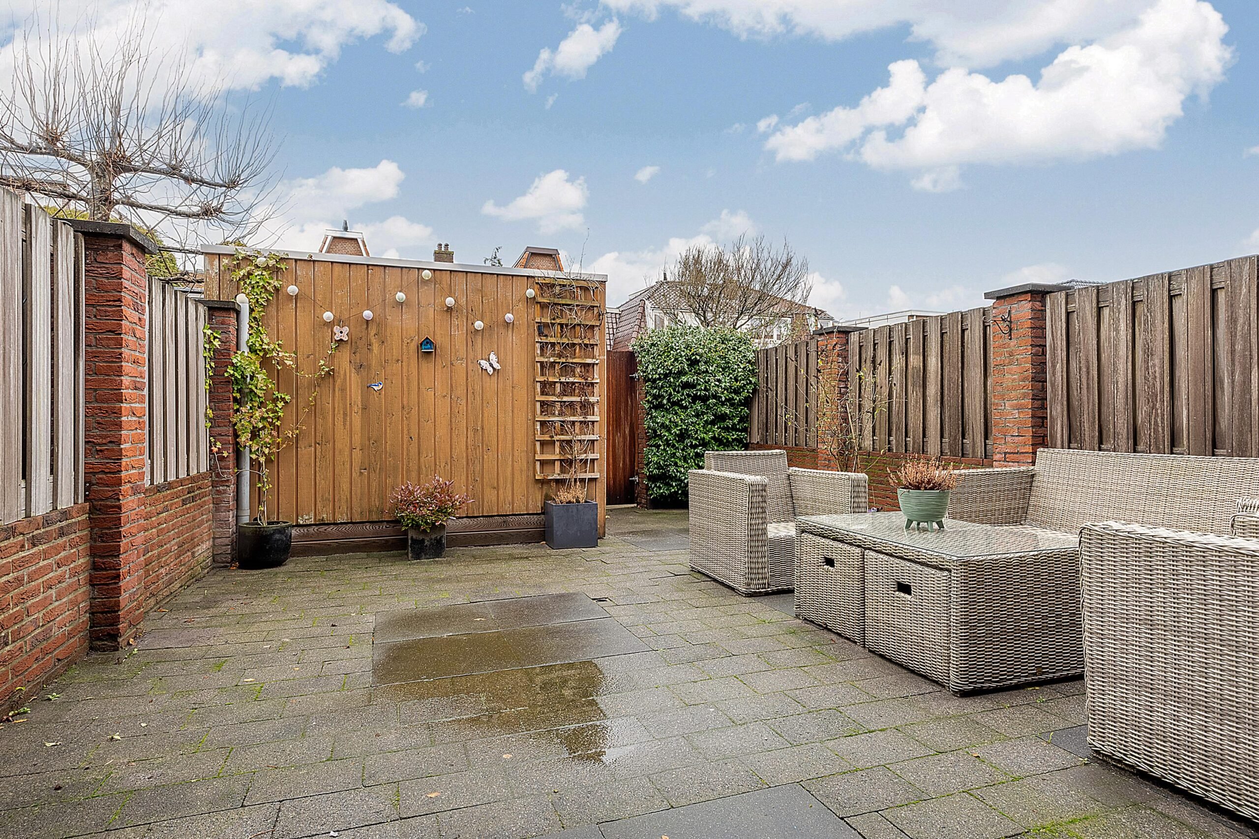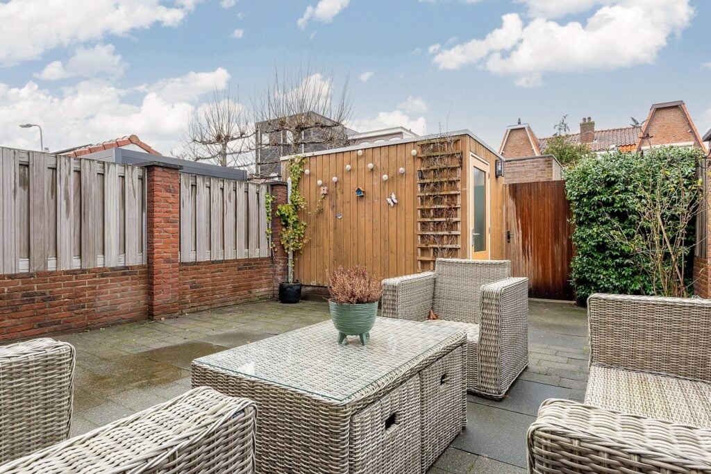 De achtertuin is gelegen op het noordwesten en biedt een prettige combinatie van zon en schaduw. Hier kun je tot in de avond genieten van het buitenleven. Achter in de tuin staat een berging met elektra, ideaal voor fietsen en tuingereedschap.