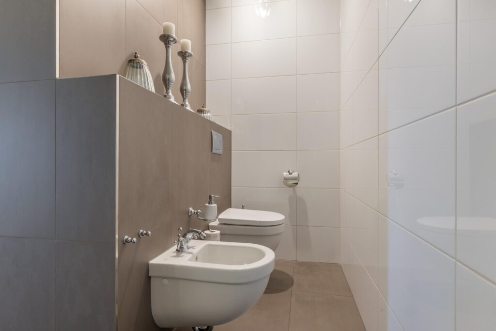 – luxe badkamer met toilet en bidet;