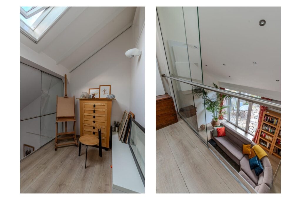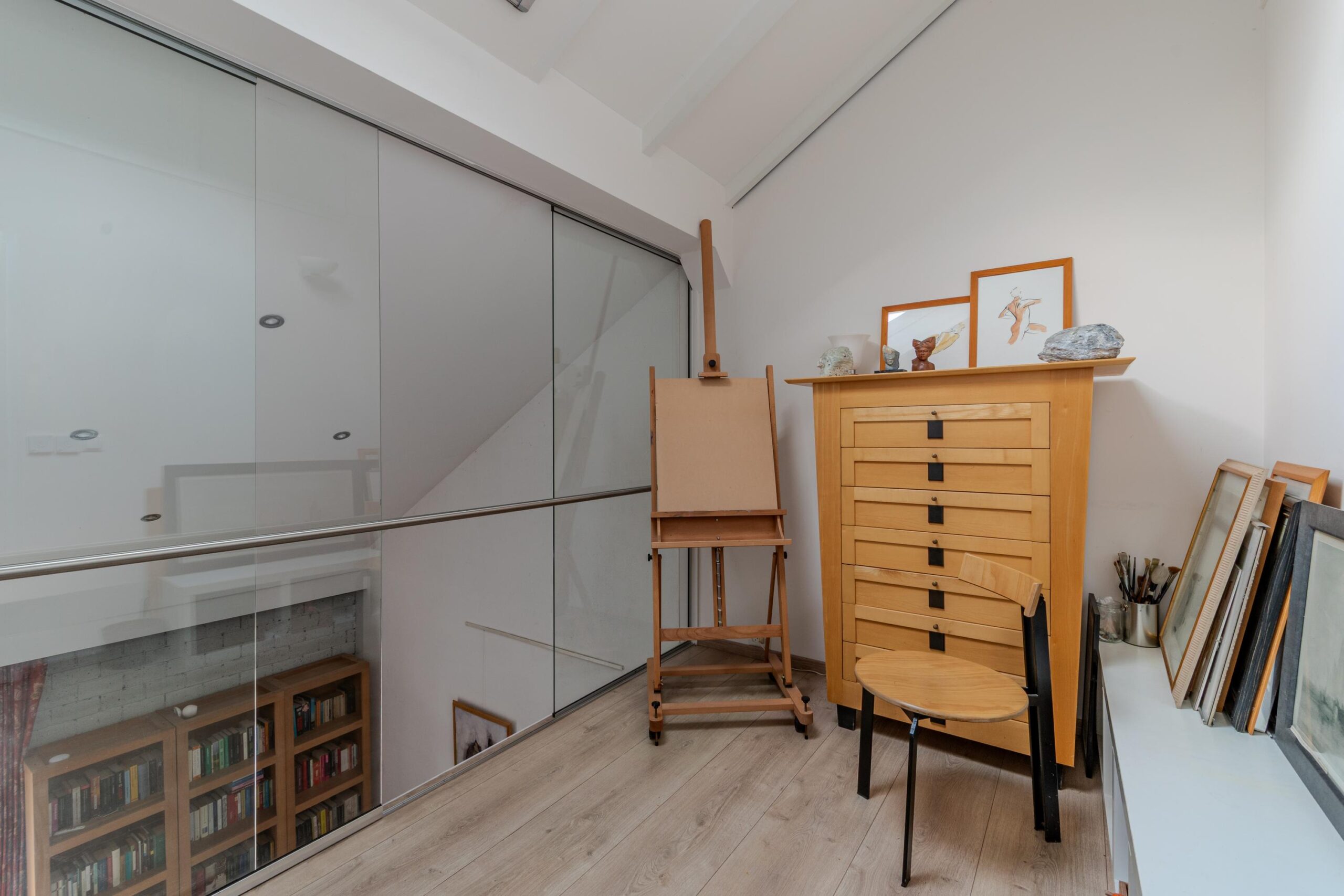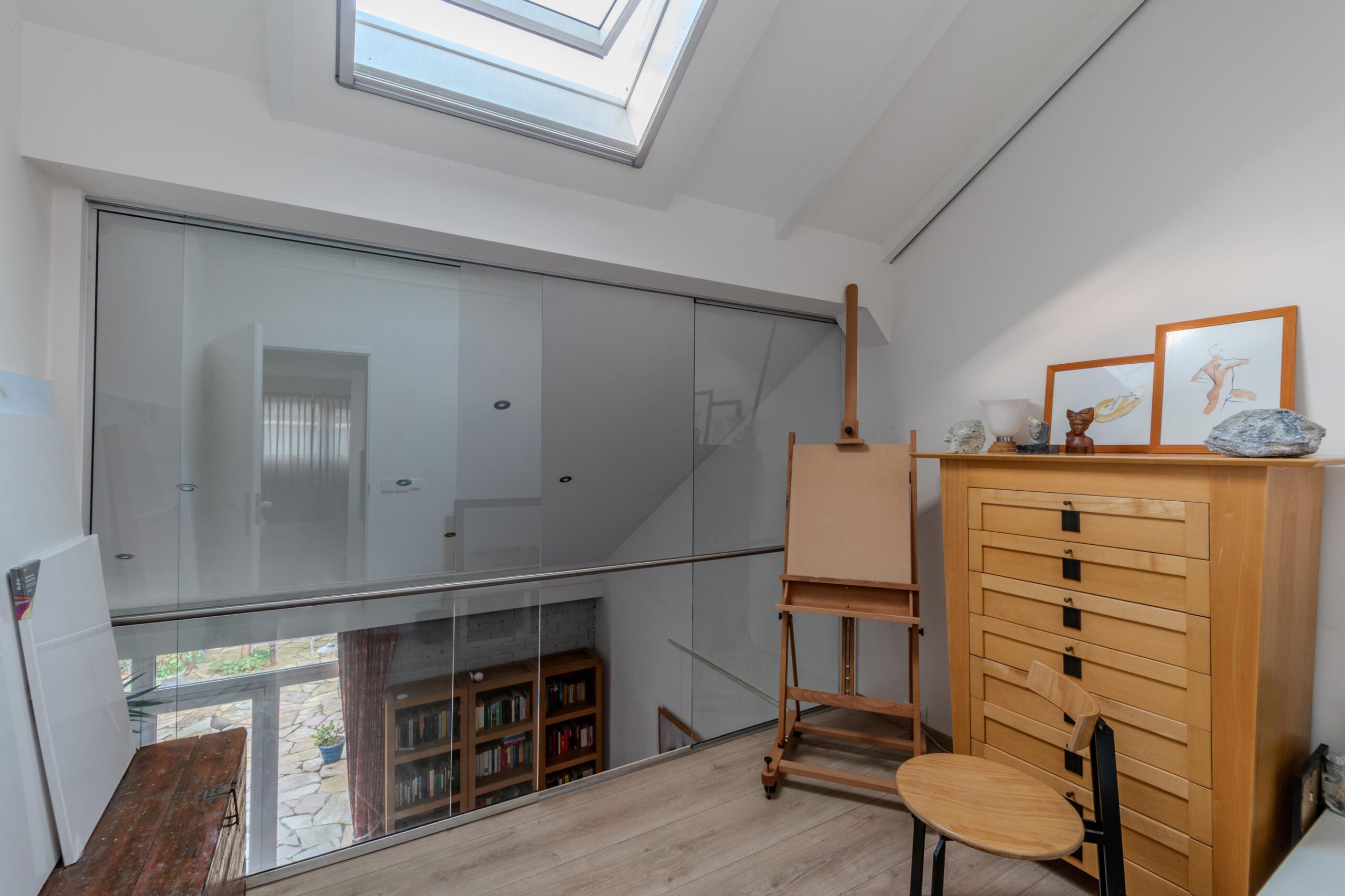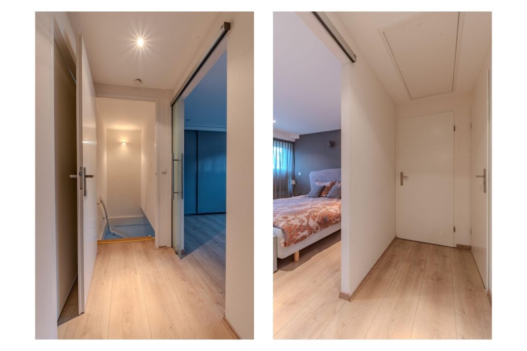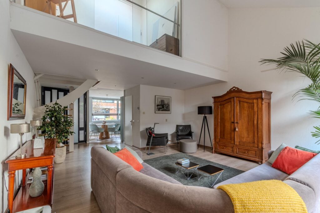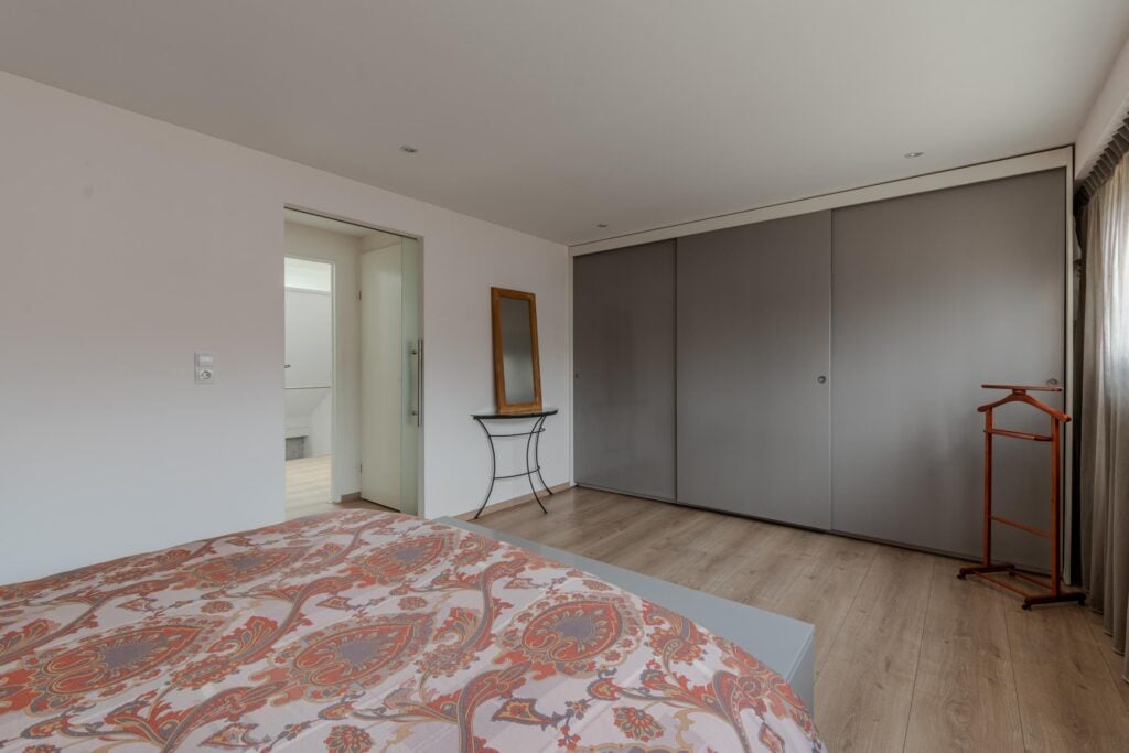 Op de eerste verdieping vind je twee slaapkamers, waarvan de master (voorheen twee slaapkamers) een verrassend royaal formaat heeft. Bovendien is er de mogelijkheid om een derde slaapkamer te creëren door een verdiepingsvloer in de vide te plaatsen. De badkamer (2020) is modern en comfortabel, voorzien van vloerverwarming, een ruime (regen)douche, een strak wastafelmeubel en een toilet. Alles oogt fris en eigentijds. Tot slot is er nog een vliering die extra bergruimte biedt.