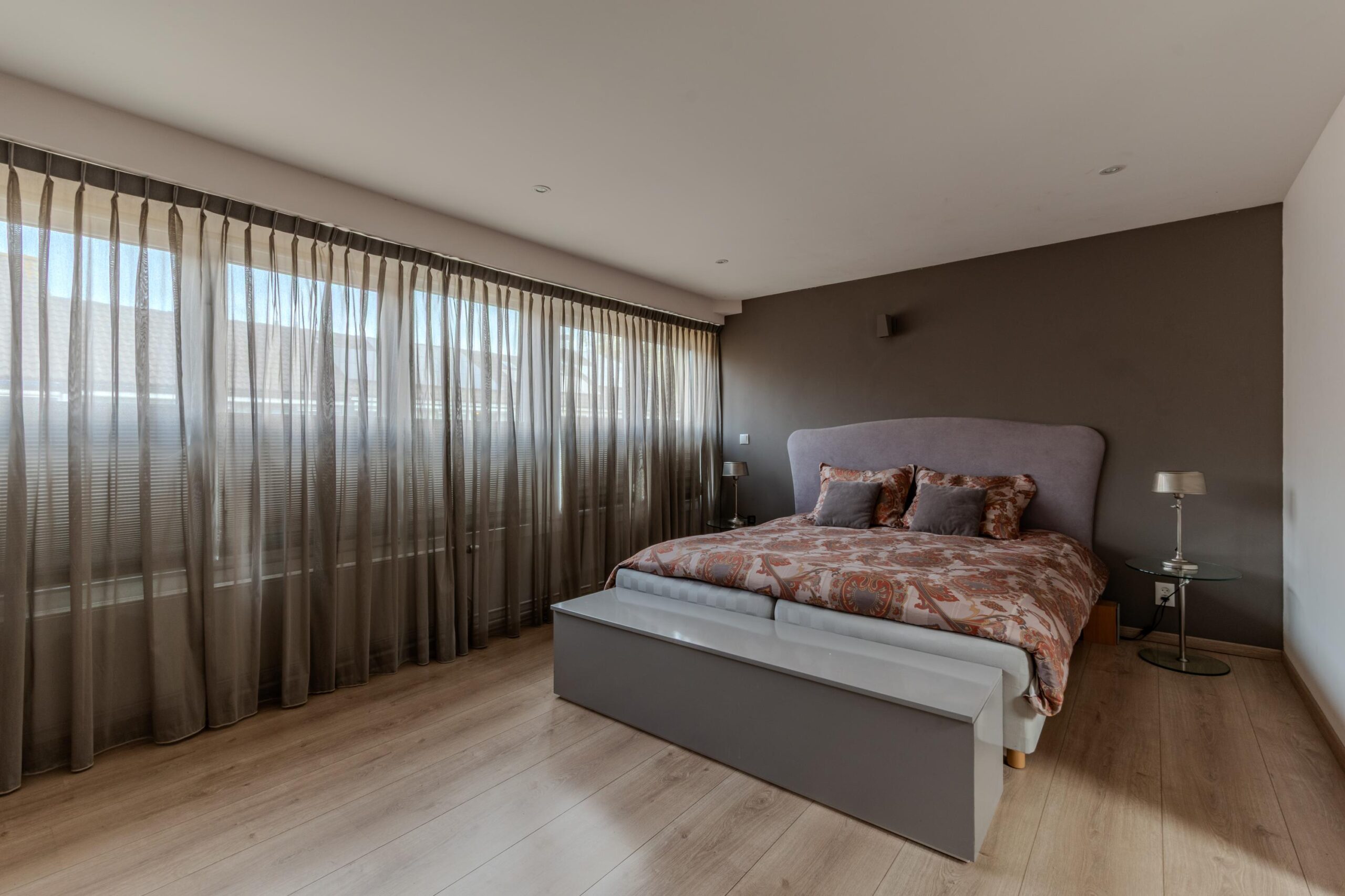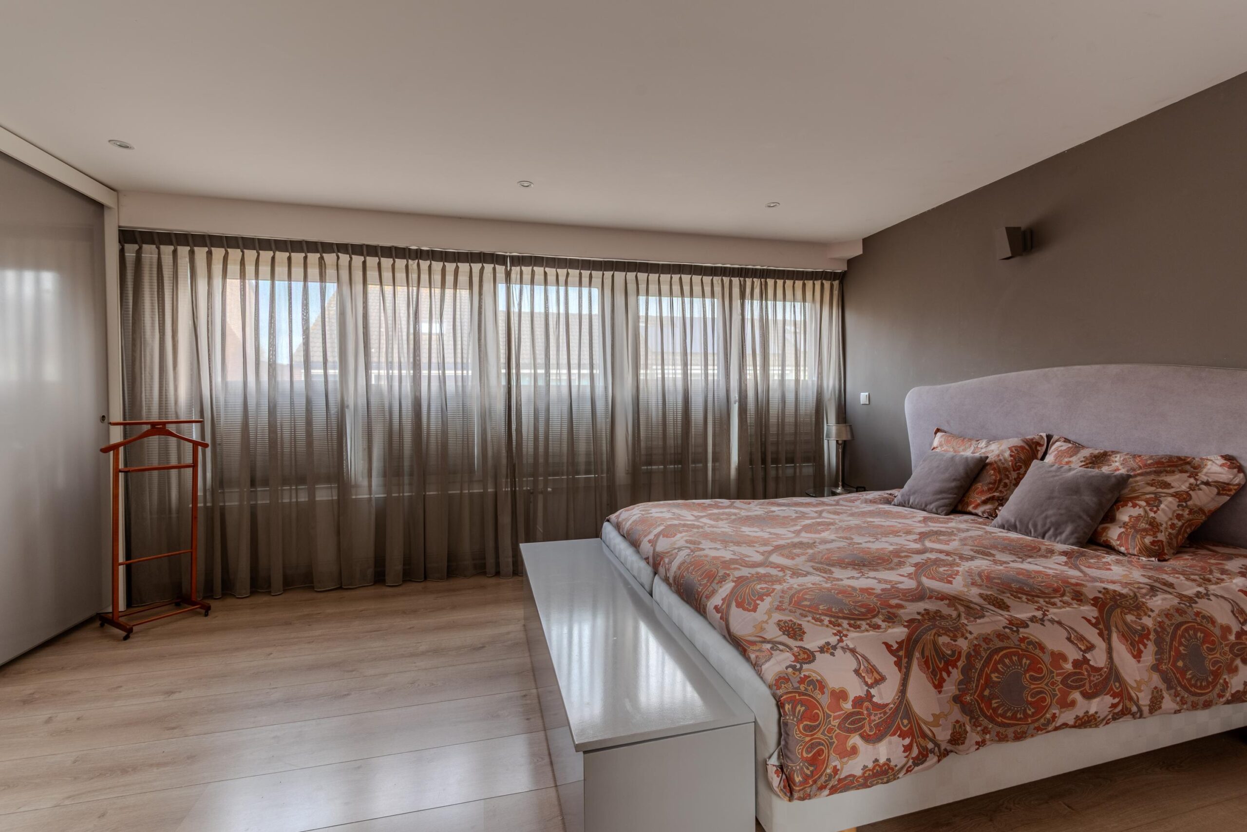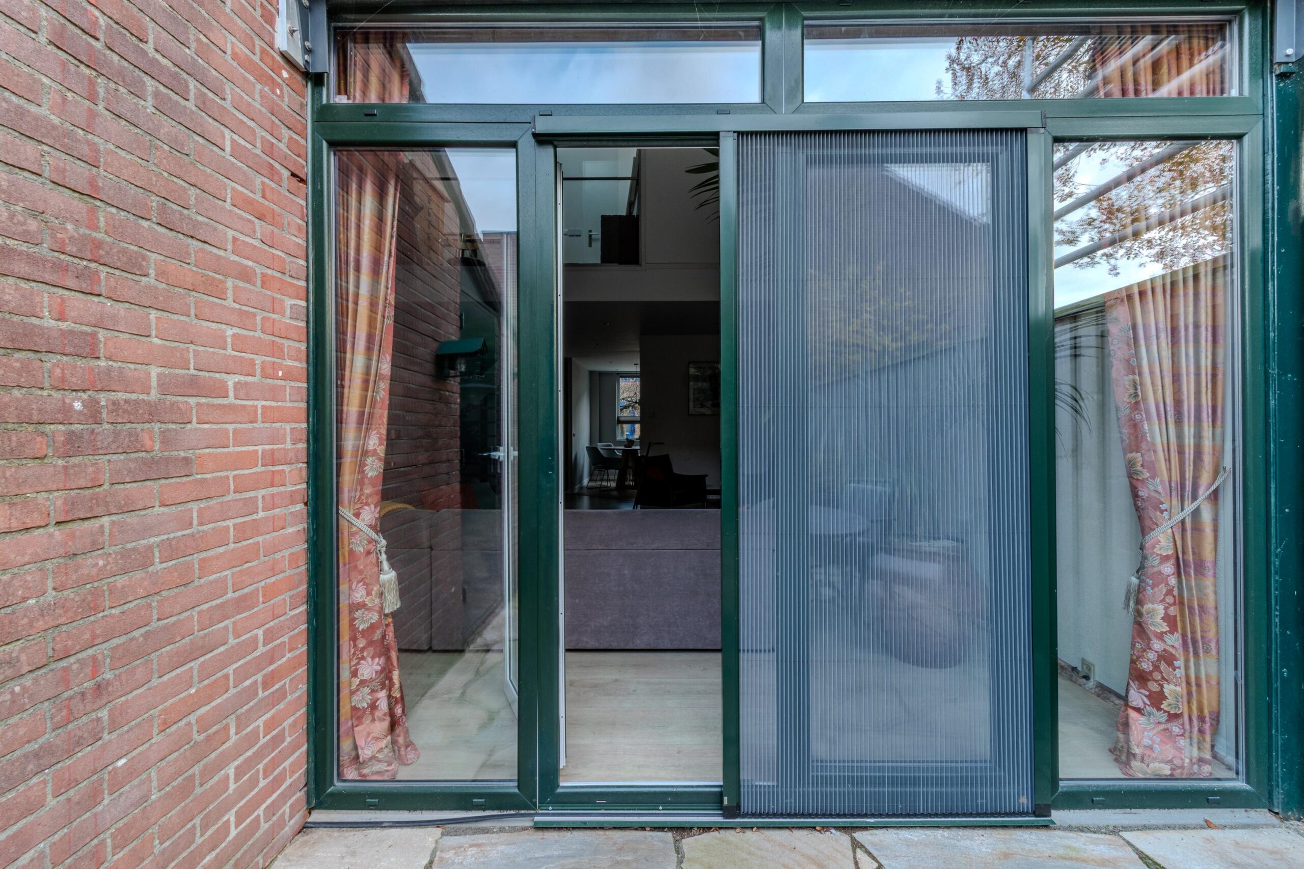– Voorzijde van de woning heeft elektrische screens, dienen als zonwering en hor;