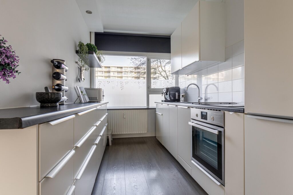 Een prachtig gelegen vierkamerappartement op de eerste woonlaag met balkon op het zuidwesten. Het appartement beschikt over een ruime woonkamer met aangrenzend een luxe, open keuken voorzien van inbouwapparatuur (o.a. vaatwasser, koelkast, vriezer en oven), in totaal drie ruime slaapkamers, een keurige vernieuwde badkamer en een afzonderlijk toilet. Het gehele appartement is netjes afgewerkt met een laminaatvloer en mooie kunststof tegels op het balkon. Het complex is voorzien van een afgesloten entree met intercom, liftinstallatie en een grote berging in de onderbouw. Het winkelcentrum Europaplein en het NS-station van Heemskerk bevinden zich op loopafstand.