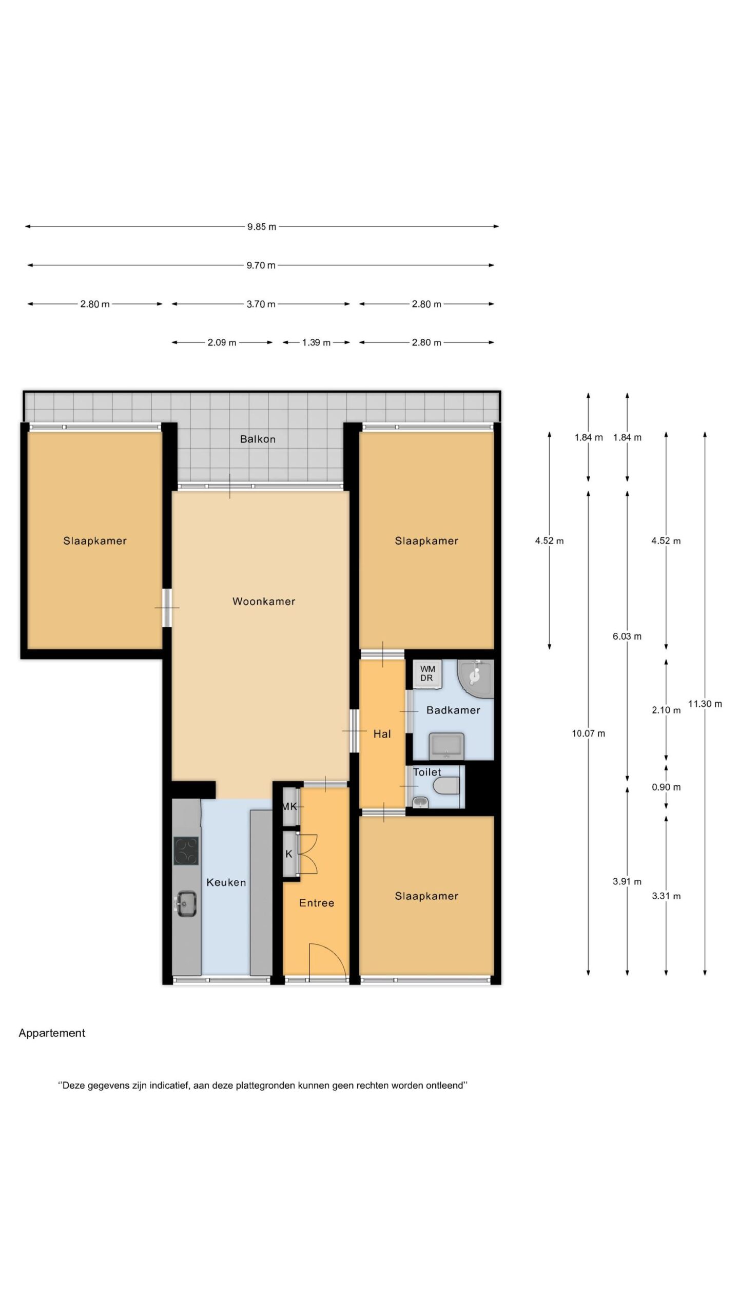 – 3 slaapkamers aanwezig;
