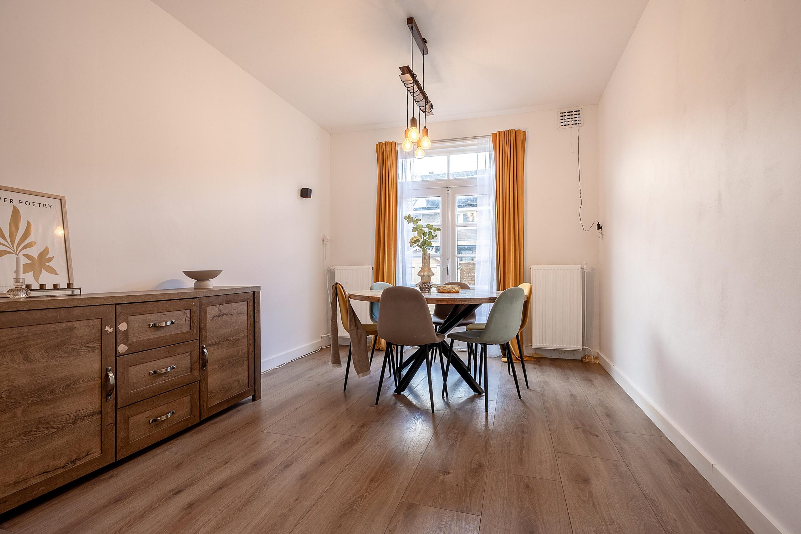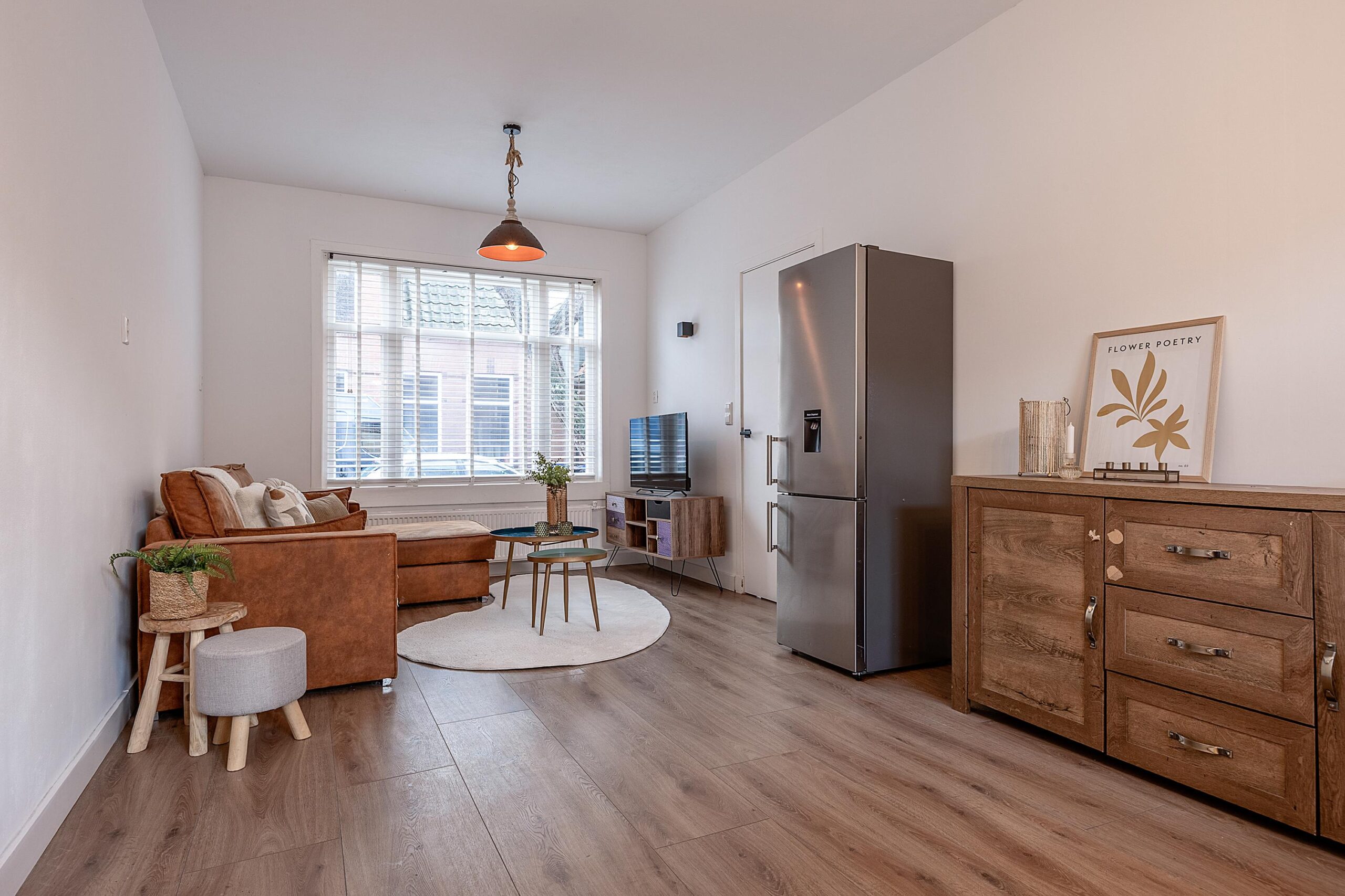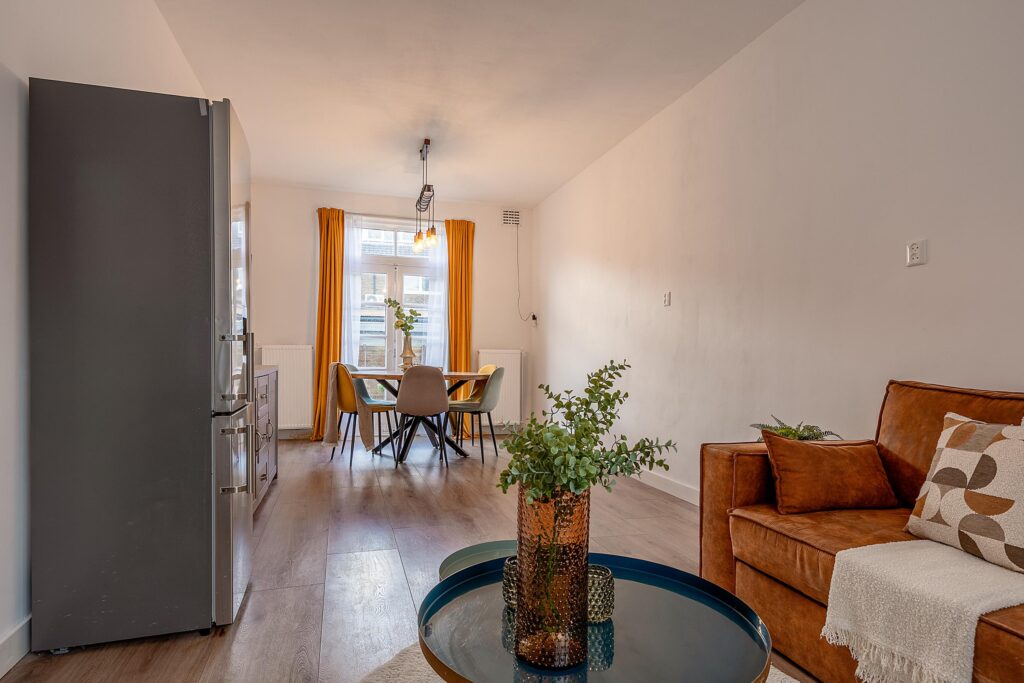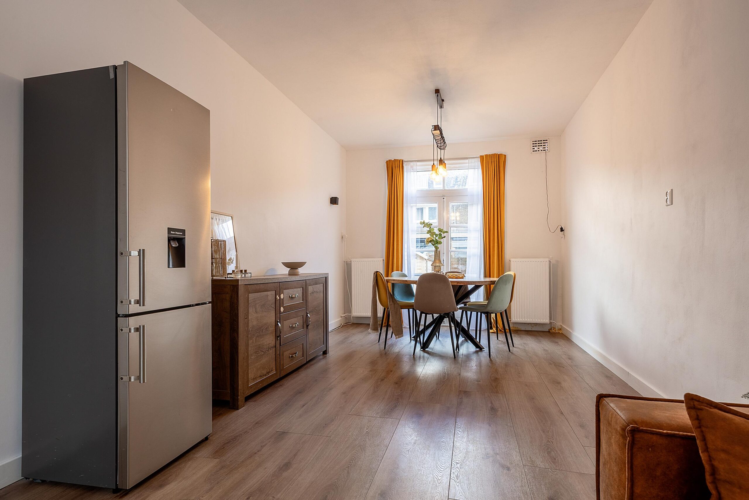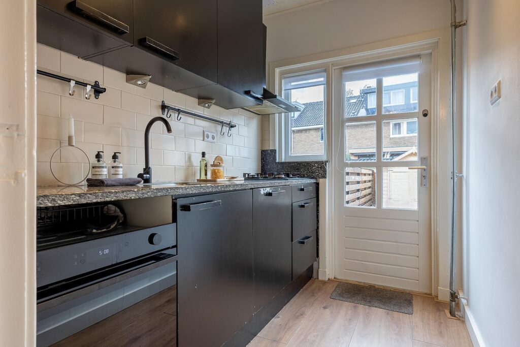 Via de entree stap je binnen in een lichte hal met toegang tot de gezellige doorzon woonkamer. Deze klassiek Hollandse indeling geeft door de grote ramen rijkelijk veel daglichtinval. De zithoek aan de voorzijde kijkt uit over de rustige straat, terwijl aan de achterzijde ruimte is voor een eettafel met uitzicht op de tuin. De dichte keuken is praktisch ingericht en voorzien van diverse inbouwapparatuur, waaronder een gaskookplaat, oven, afzuigkap en vaatwasser. Vanuit de keuken loop je zo de achtertuin in – ideaal op zomerse dagen.