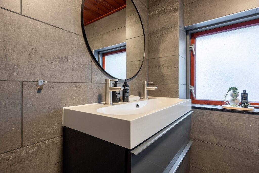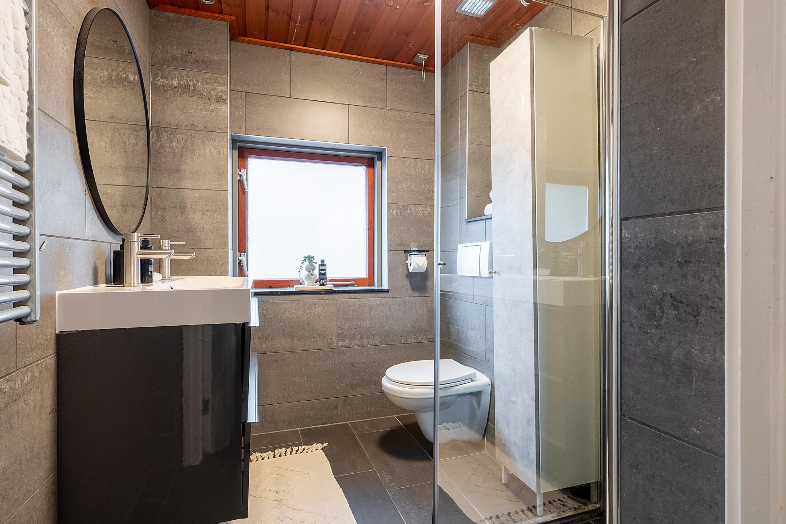 Op de eerste verdieping bevinden zich drie slaapkamers, elk met een eigen sfeer. De kamers zijn netjes afgewerkt en hebben prettige lichtinval. Ook het plaatsen van een king-size bed is geen enkel probleem. De badkamer is voorzien van een douche, wastafelmeubel met 2 kranen, toilet en handdoeken radiator. Extra comfort komt van de elektrische vloerverwarming in de badkamer.
