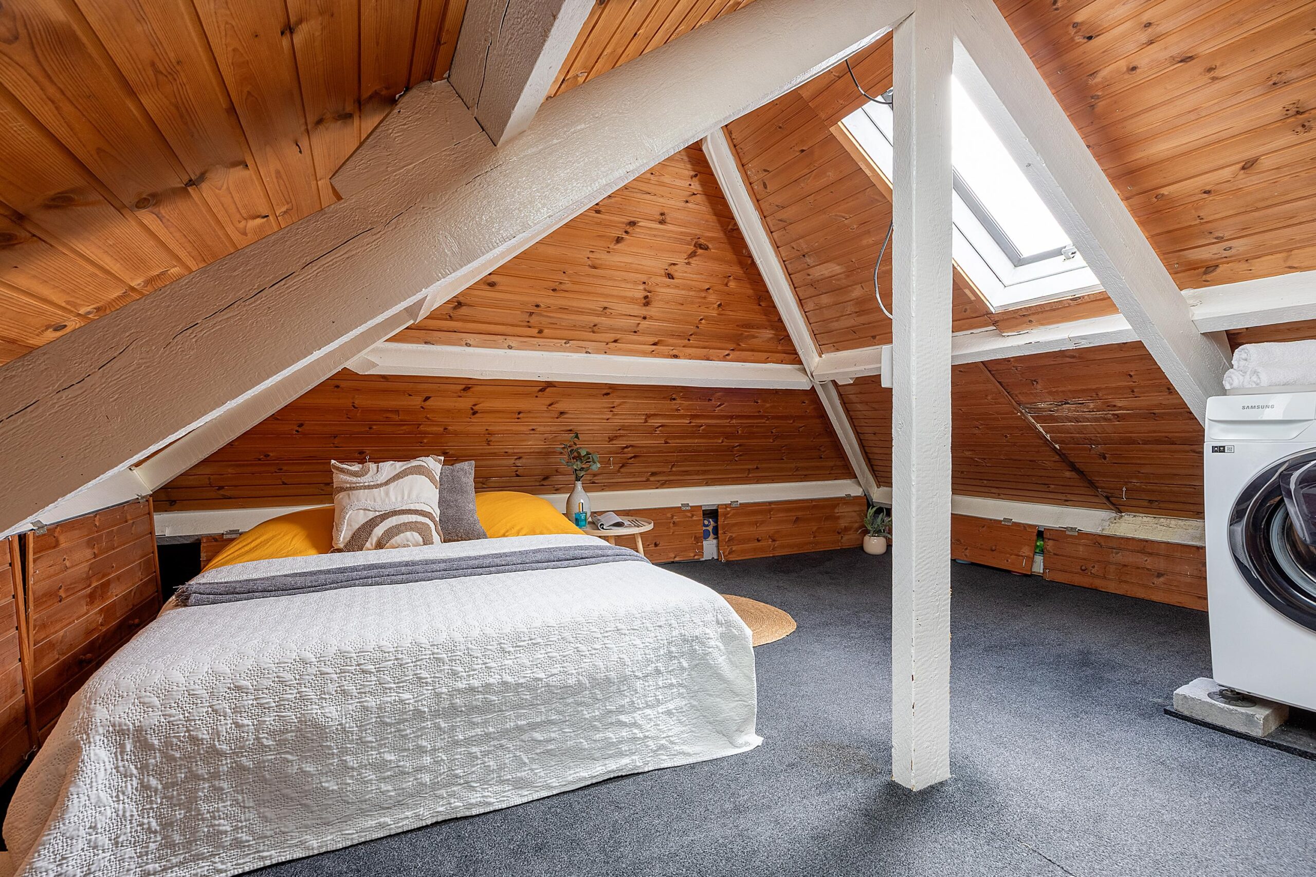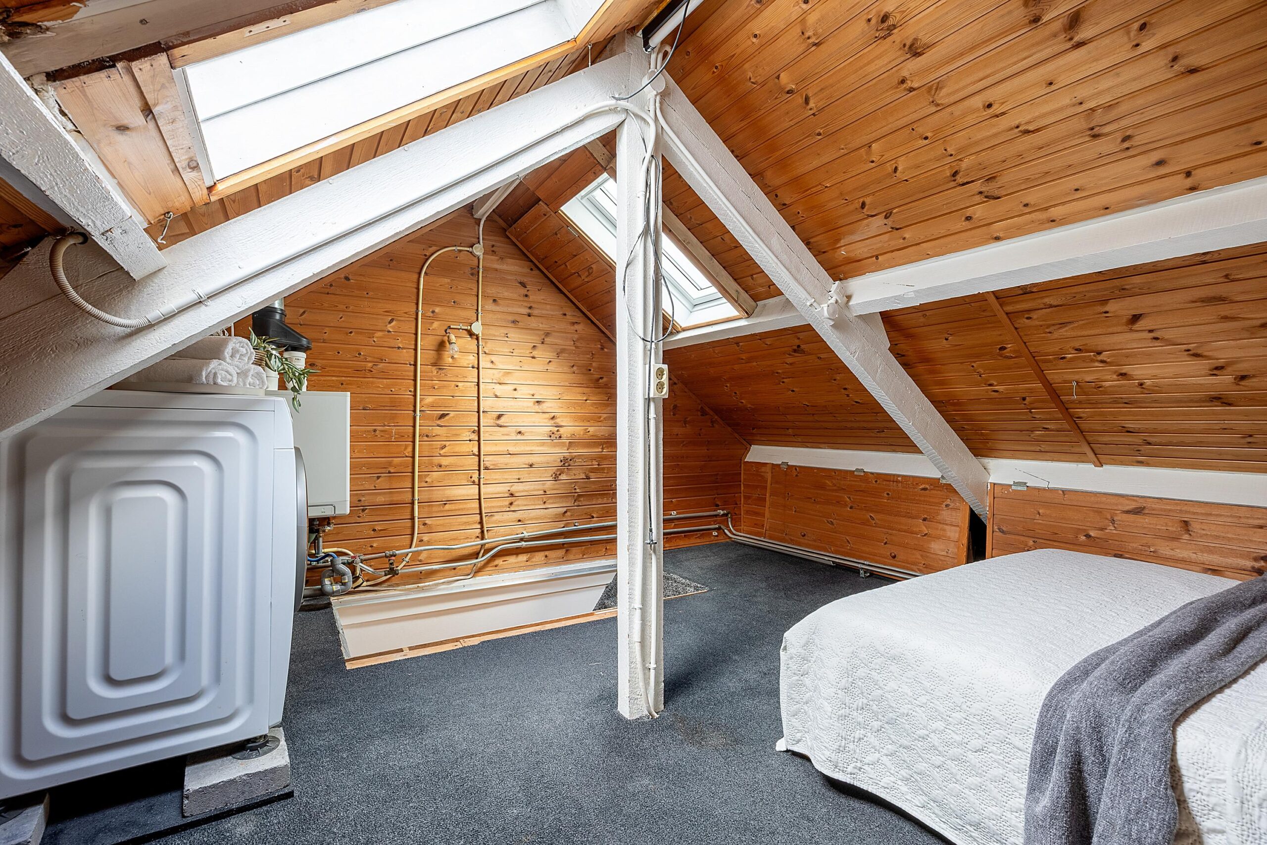 Via de vaste trap is de zolder bereikbaar – een handige plek voor seizoensspullen. En niet alleen dat: de witgoedopstelling is hier ook en een logé heeft er een prima slaapplek. Het dakraam zorgt voor de nodige daglicht en ventilatie