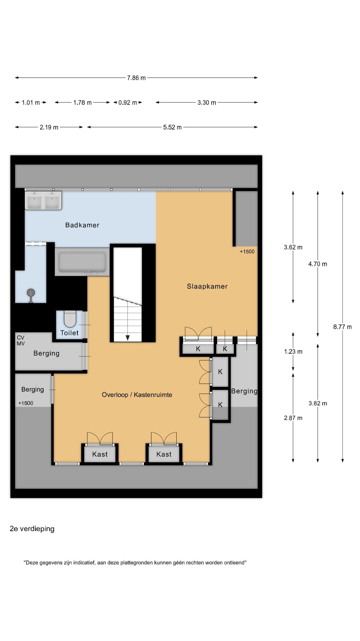 Tweede verdieping: Via een sfeervol verlichte eikenhouten trap bereik je de tweede woonlaag. Hier zorgen twee grote kunststof dakkapellen met HR++ glas voor een heerlijk lichte en ruime verdieping. De slaapkamer op deze verdieping heeft de uitstraling van een luxe hotelsuite, compleet met een bubbelbad, een ruime inloopdouche met regendouche en ingebouwde kranen, en een apart toilet. Als kers op de taart zijn er ingebouwde tv’s om helemaal tot rust te komen. Daarnaast beschikt deze etage over een op maat gemaakte inloopkast, veel extra bergruimte en een aparte ruimte voor de cv-ketel (Nefit, 2019), wasmachine en droger.