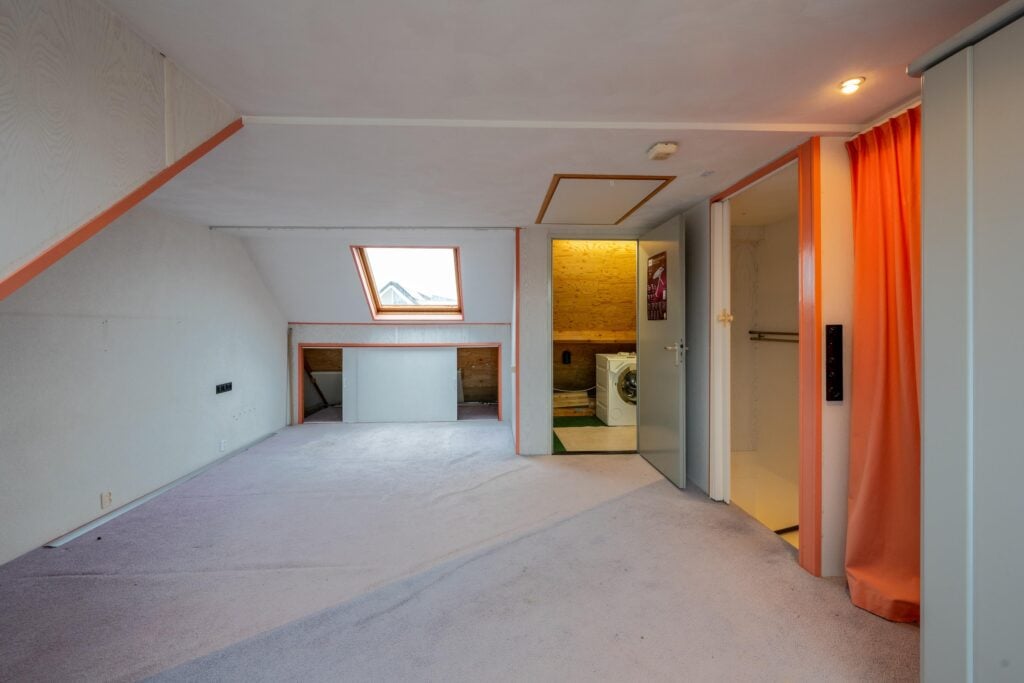 Via een vaste trap bereik je de tweede verdieping. Deze ruime open verdieping met dakkapel aan de achterzijde biedt volop mogelijkheden. Denk aan een extra grote slaapkamer, hobbyruimte of thuiswerkplek. Op deze verdieping is daarnaast ook een wasruimte aanwezig en extra bergruimte achter de knieschotten.