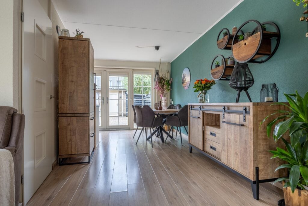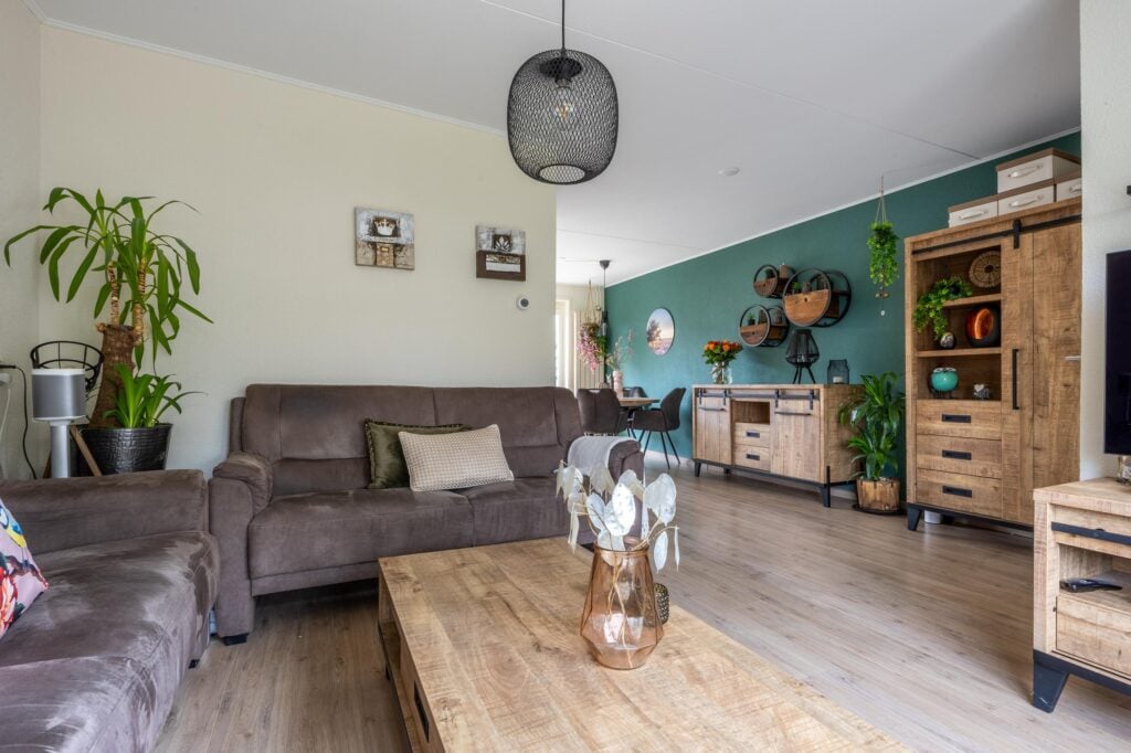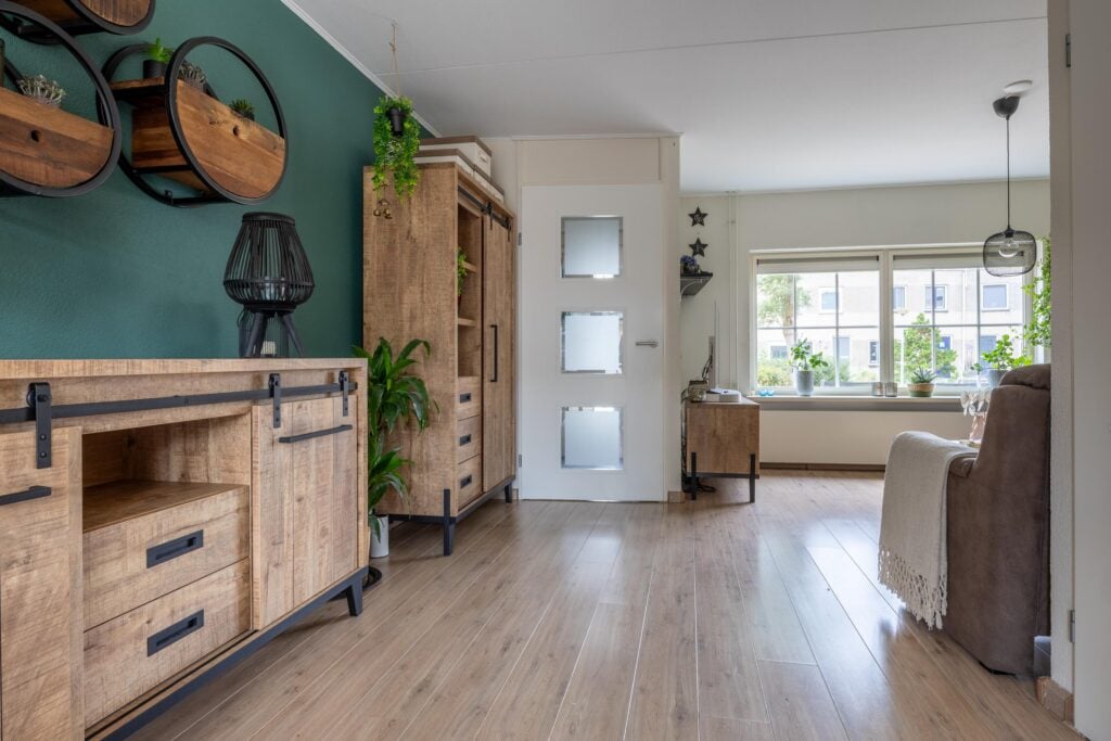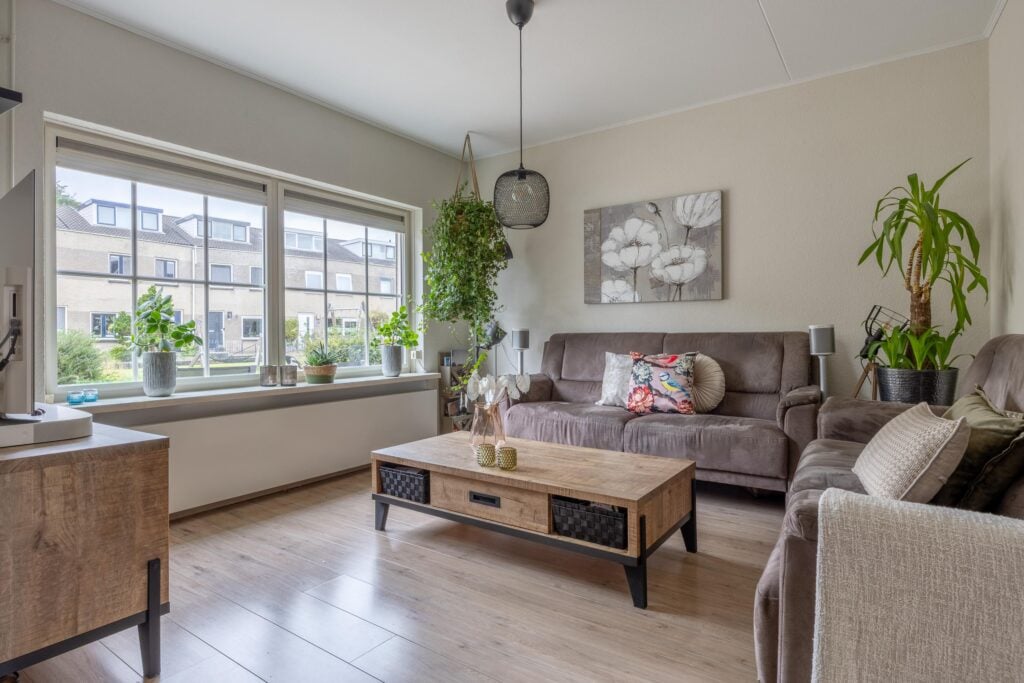 Wanneer je komt aanlopen, voel je direct de fijne sfeer van de straat: rustig, verzorgd en met volop privacy. Via de voortuin stap je de woning binnen, waar de royale woonkamer je verwelkomt met veel lichtinval en een prettige indeling. Er is meer dan genoeg ruimte voor een comfortabele zithoek waar je gezellig kunt samenkomen met familie of vrienden. De voorramen met roeden zijn aan de voorzijde van de woonkamer voorzien van een rolluik.