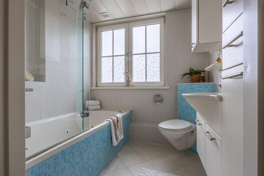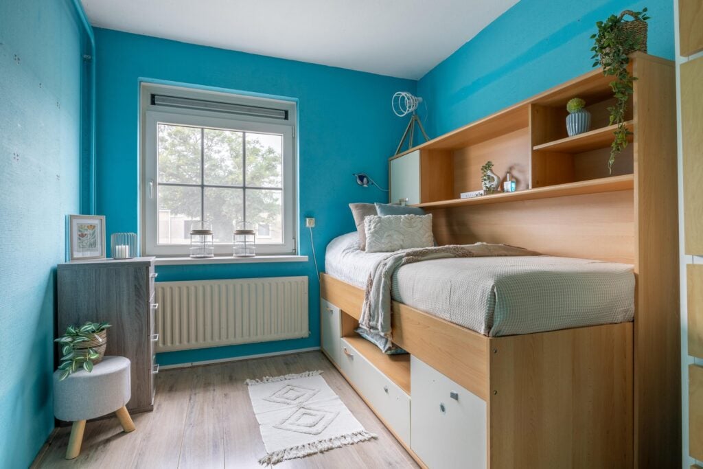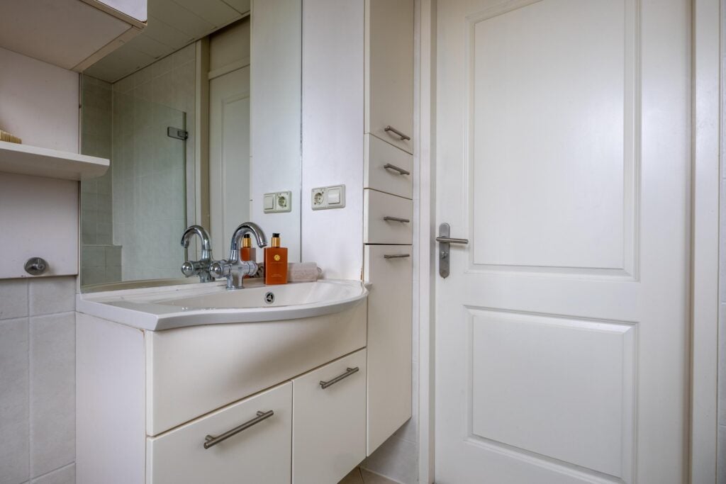 Op de eerste verdieping bevinden zich drie goed bemeten slaapkamers, stuk voor stuk licht en praktisch van formaat. Er is voldoende ruimte voor een bed, kast en zelfs een werk- of speelhoek. Alle ramen zijn voorzien van rolluiken en horren, wat zorgt voor extra comfort: koel in de zomer, volledig donker in de nacht en een veilig gevoel het hele jaar door. De badkamer is compleet uitgevoerd met een ligbad-douchecombinatie, toilet en wastafel, alles wat je nodig hebt voor dagelijks gemak.