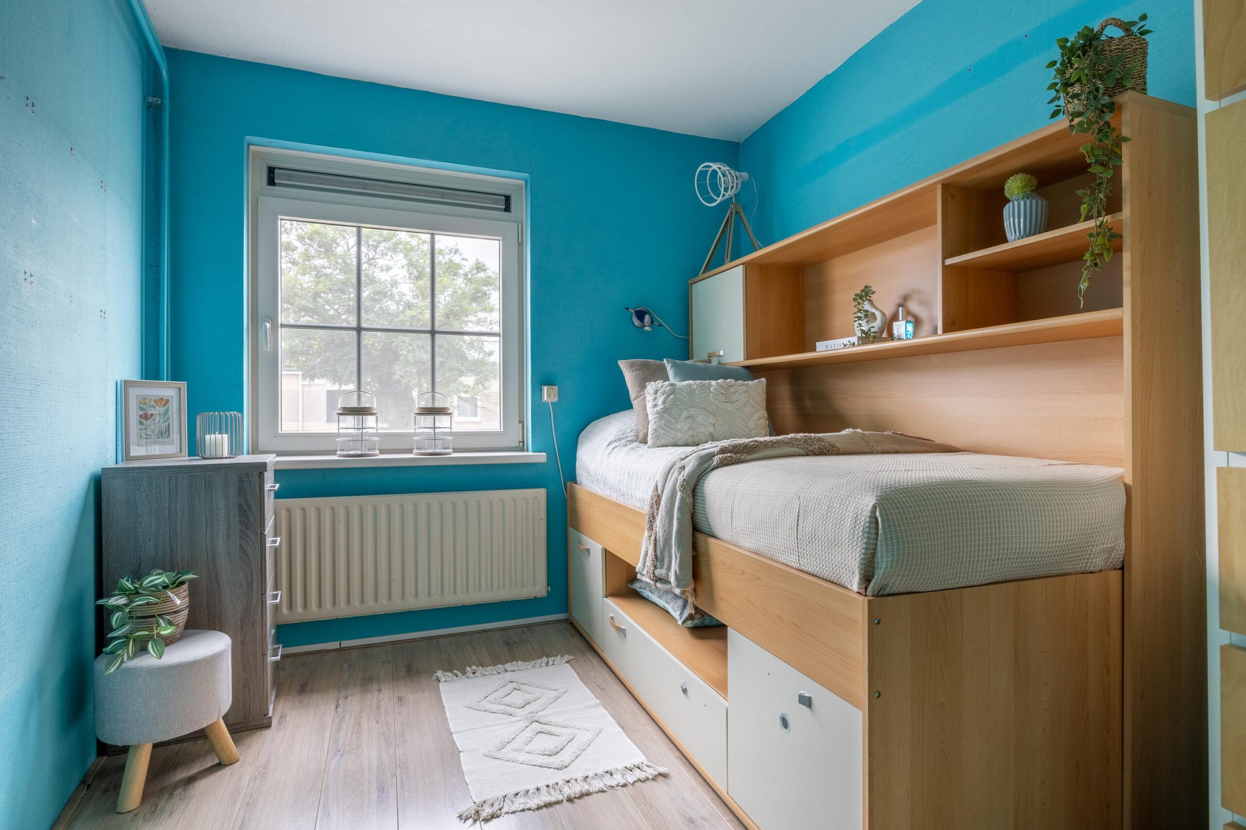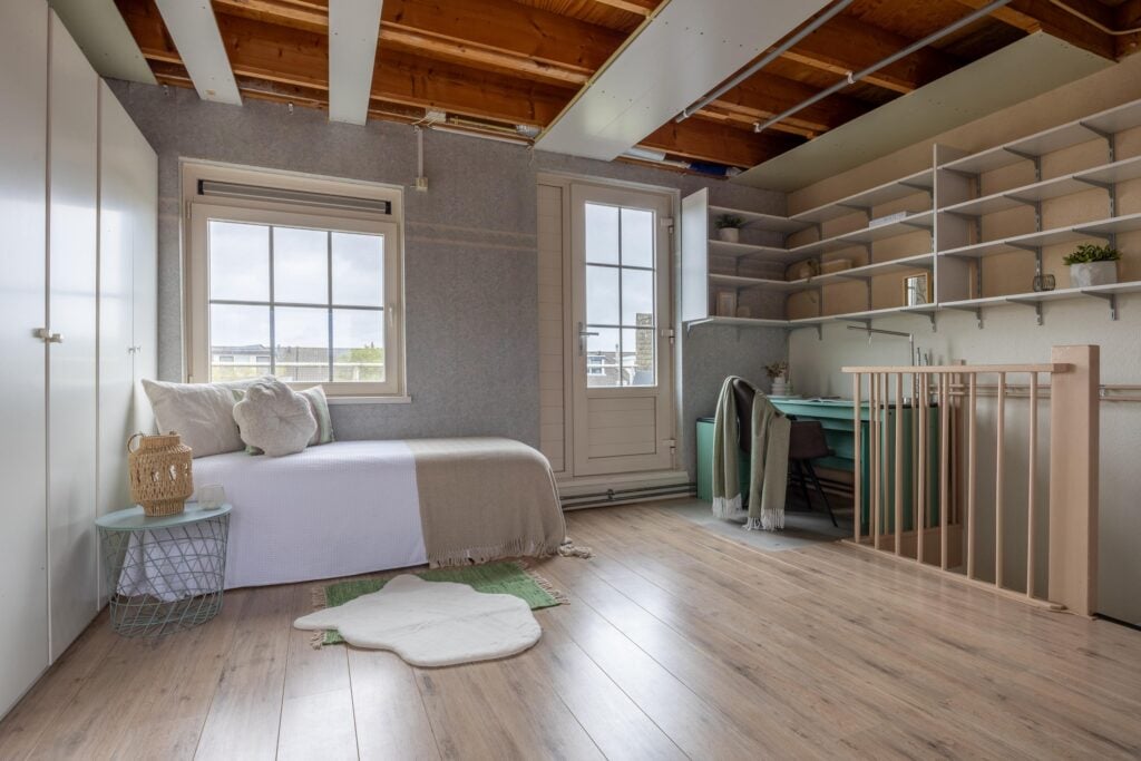 De tweede verdieping biedt nog veel potentie. Met een kleine aanpassing creëer je hier eenvoudig een vierde slaapkamer, een luxe masterbedroom of juist een ruime werkplek aan huis. Vanaf deze verdieping stap je direct het dakterras op, dat ook is uitgerust met rolluiken en een hor. Het is jouw tweede buitenruimte, waar je kunt genieten van de aangename middag- en avondzon en een uitzicht hebt over de rustige omgeving.