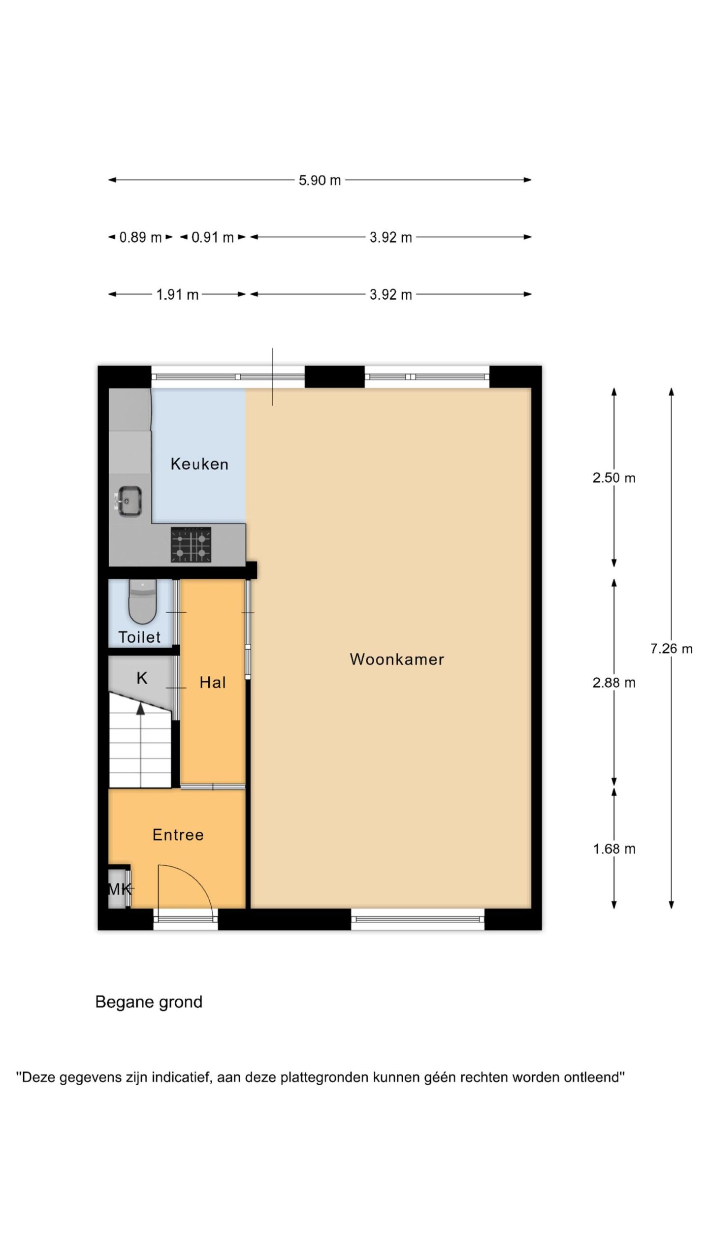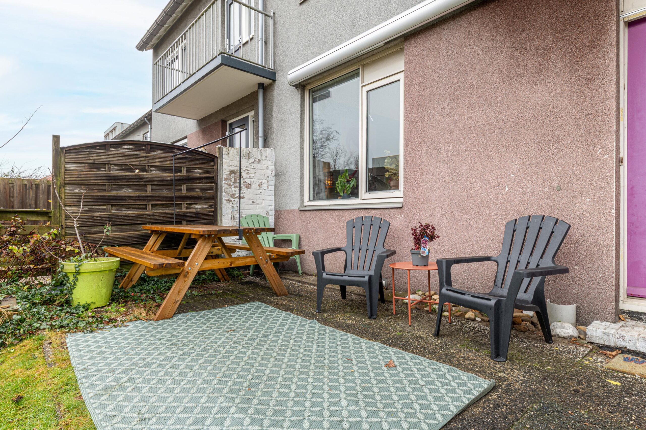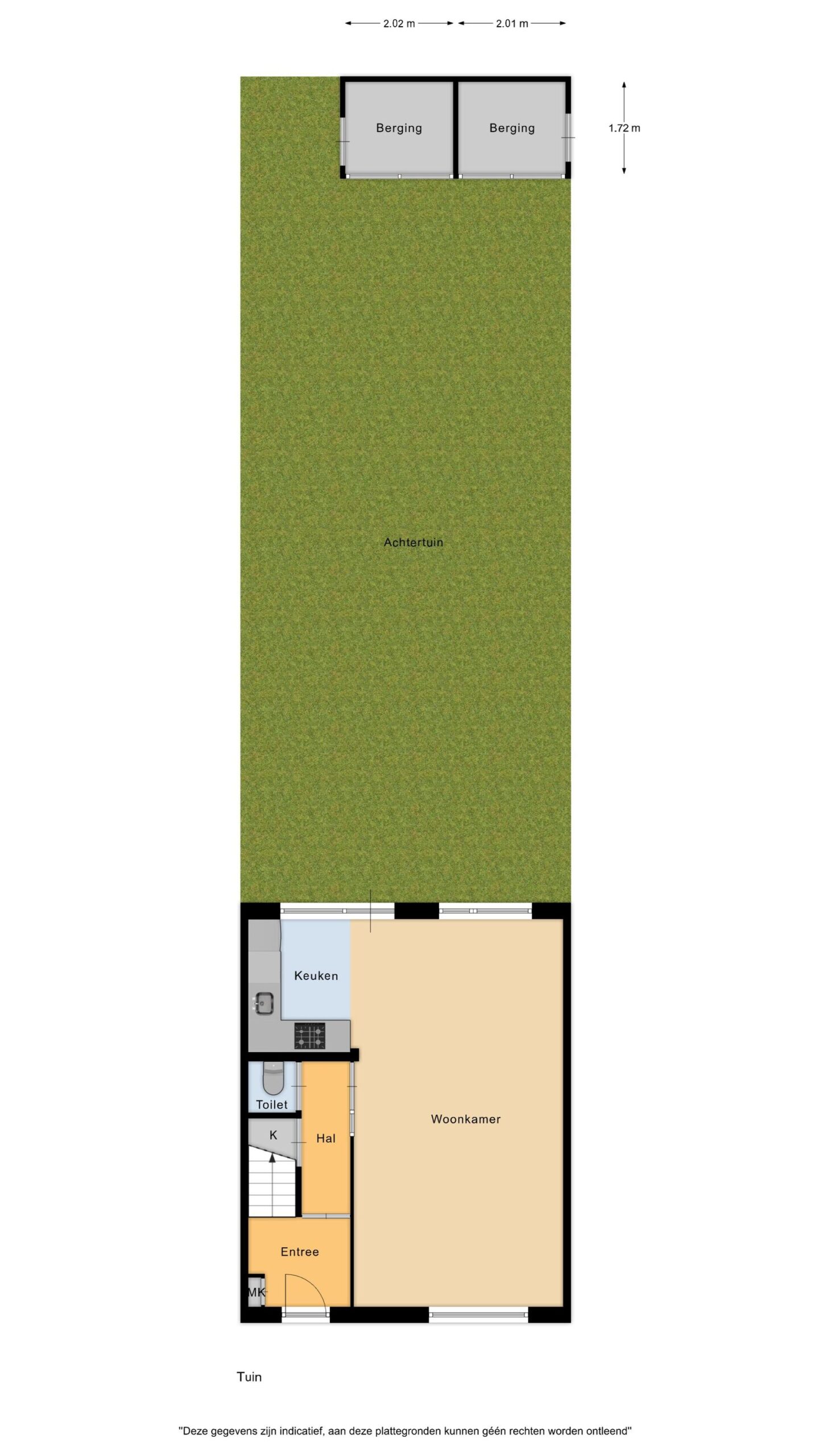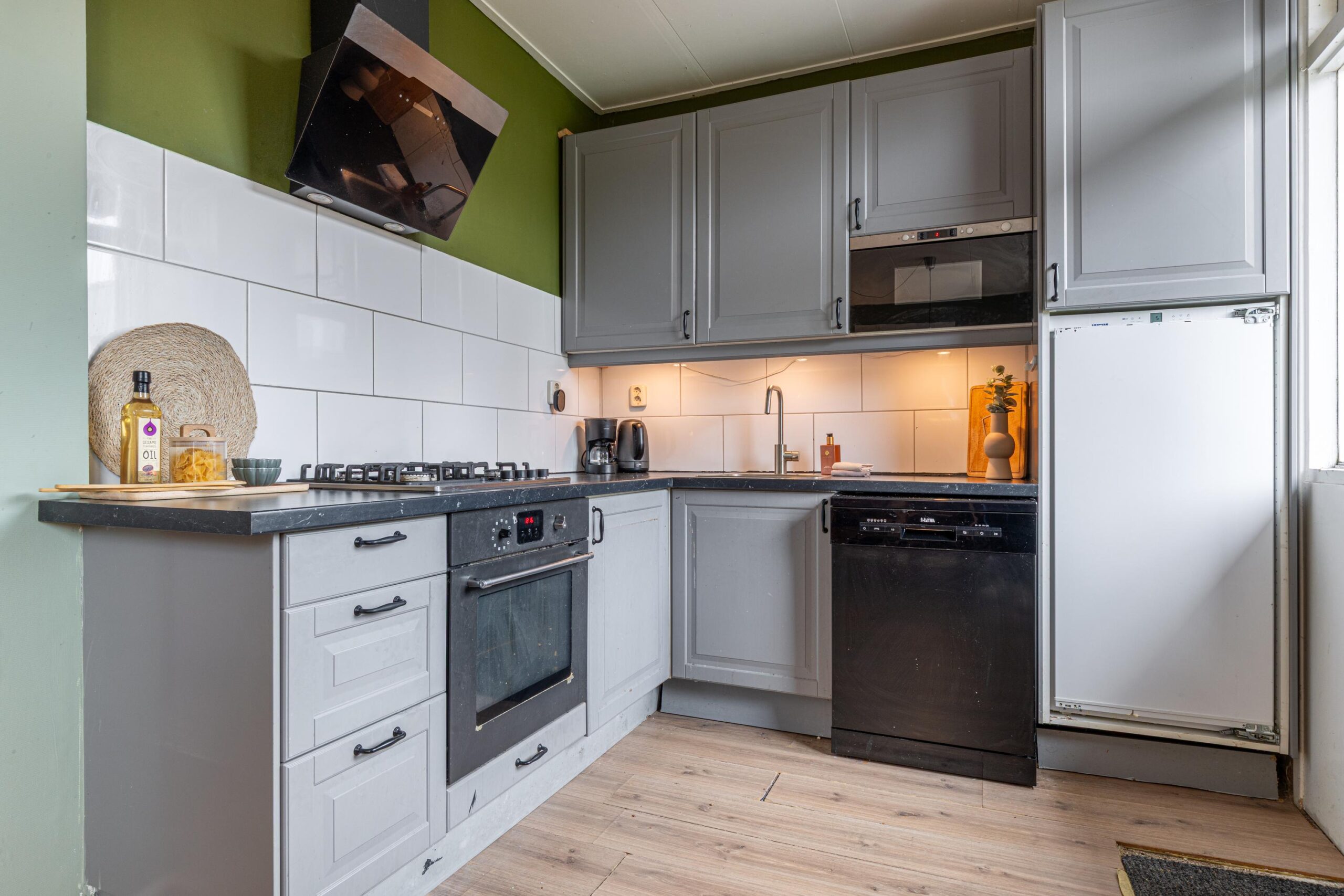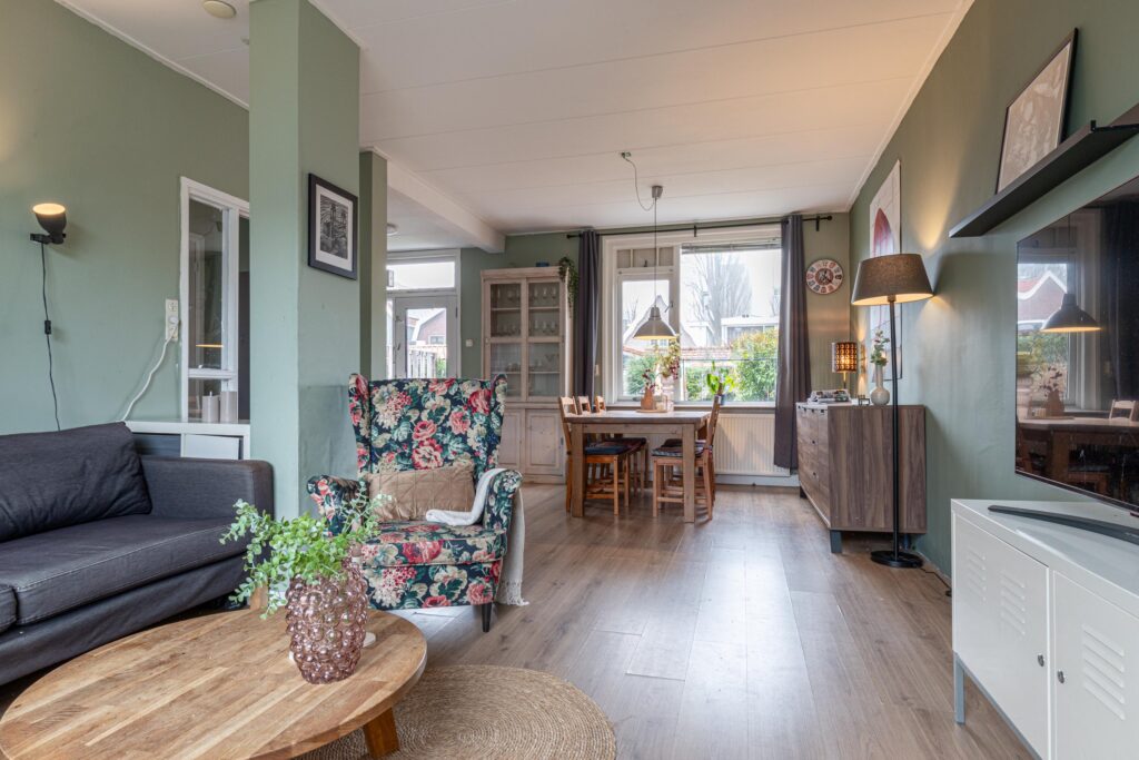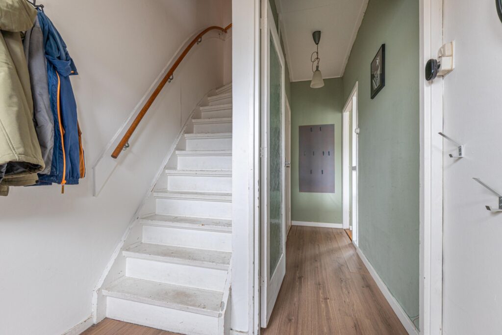 Via de entree kom je in de hal met toilet, trapopgang en toegang tot de woonkamer. De doorzonwoonkamer is aangenaam licht dankzij de ramen aan zowel de voor- als achterzijde en biedt volop ruimte voor een gezellige zithoek en een eettafel. De indeling is praktisch en overzichtelijk.