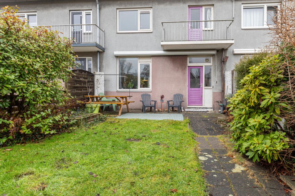Aan de voorzijde zorgt de groenstrook voor een vrij en open uitzicht, wat bijdraagt aan de rustige sfeer van de straat.