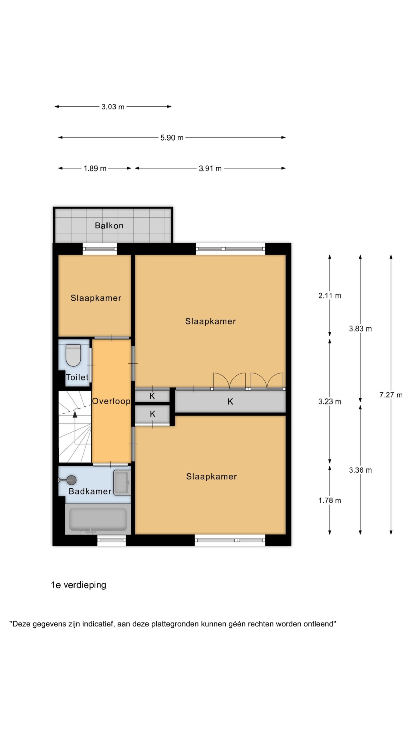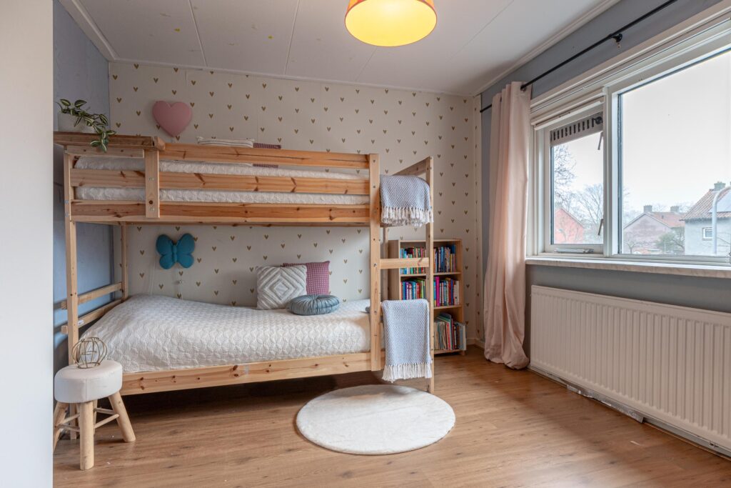 Op de eerste verdieping bevinden zich drie slaapkamers. Aan de voorzijde ligt een ruime slaapkamer. Aan de achterzijde bevindt zich een tweede ruime slaapkamer met uitzicht op de tuin. Daarnaast is er nog een derde slaapkamer aan de achterzijde met toegang tot het balkon, wat kleiner van formaat en uitstekend geschikt als kinder-, werk- of hobbykamer.