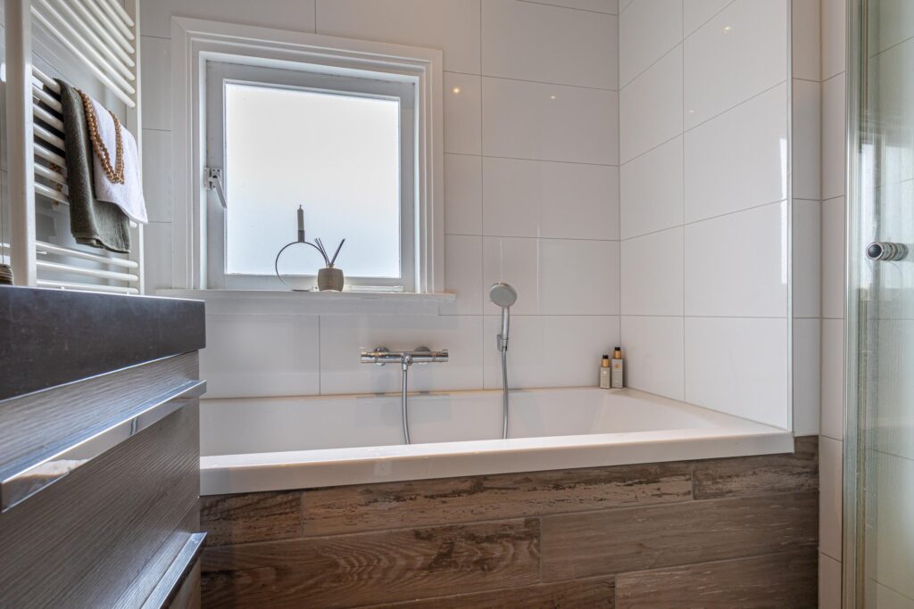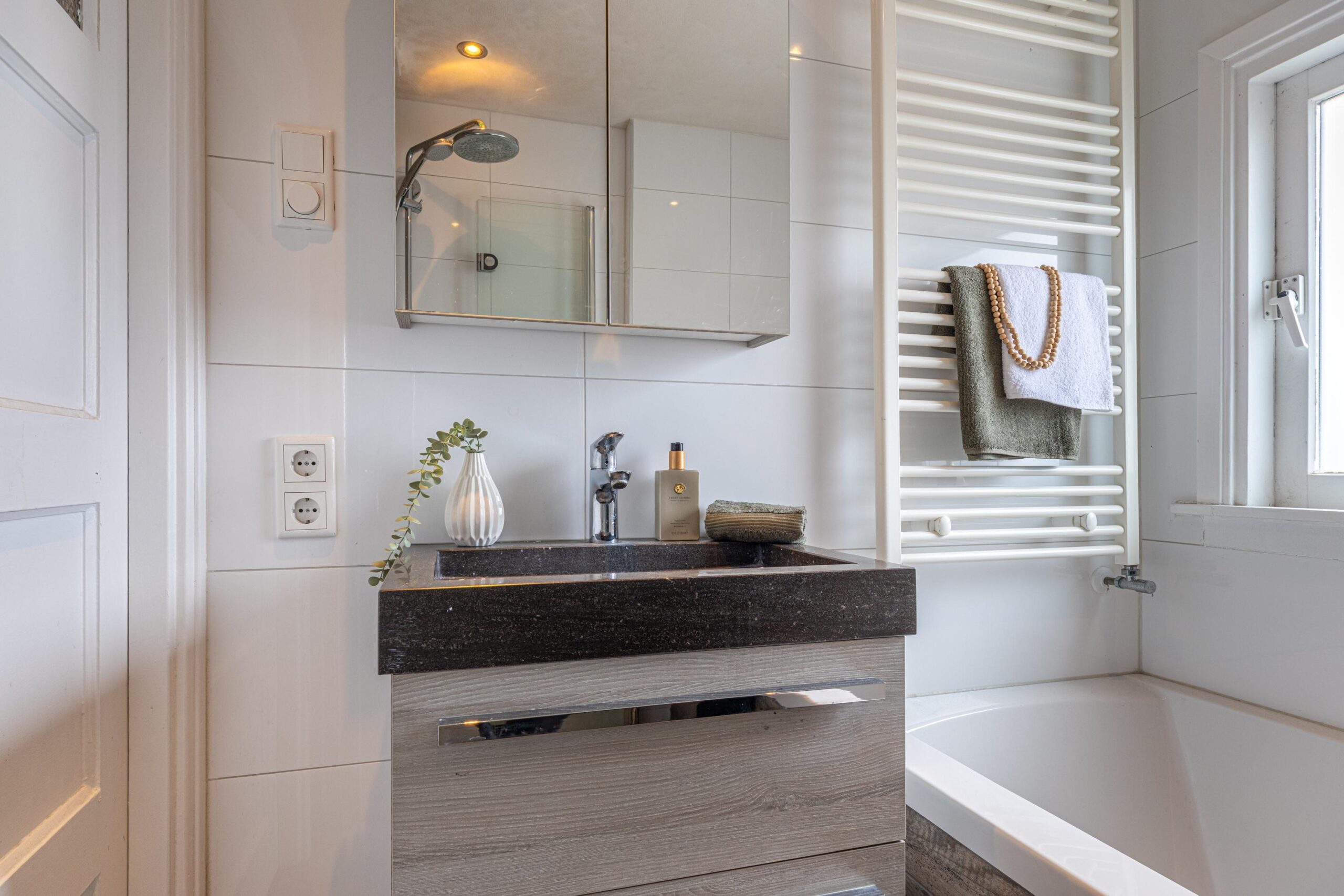 De badkamer is in 2019 vernieuwd en uitgevoerd met een frisse, moderne uitstraling en comfortabel sanitair.
