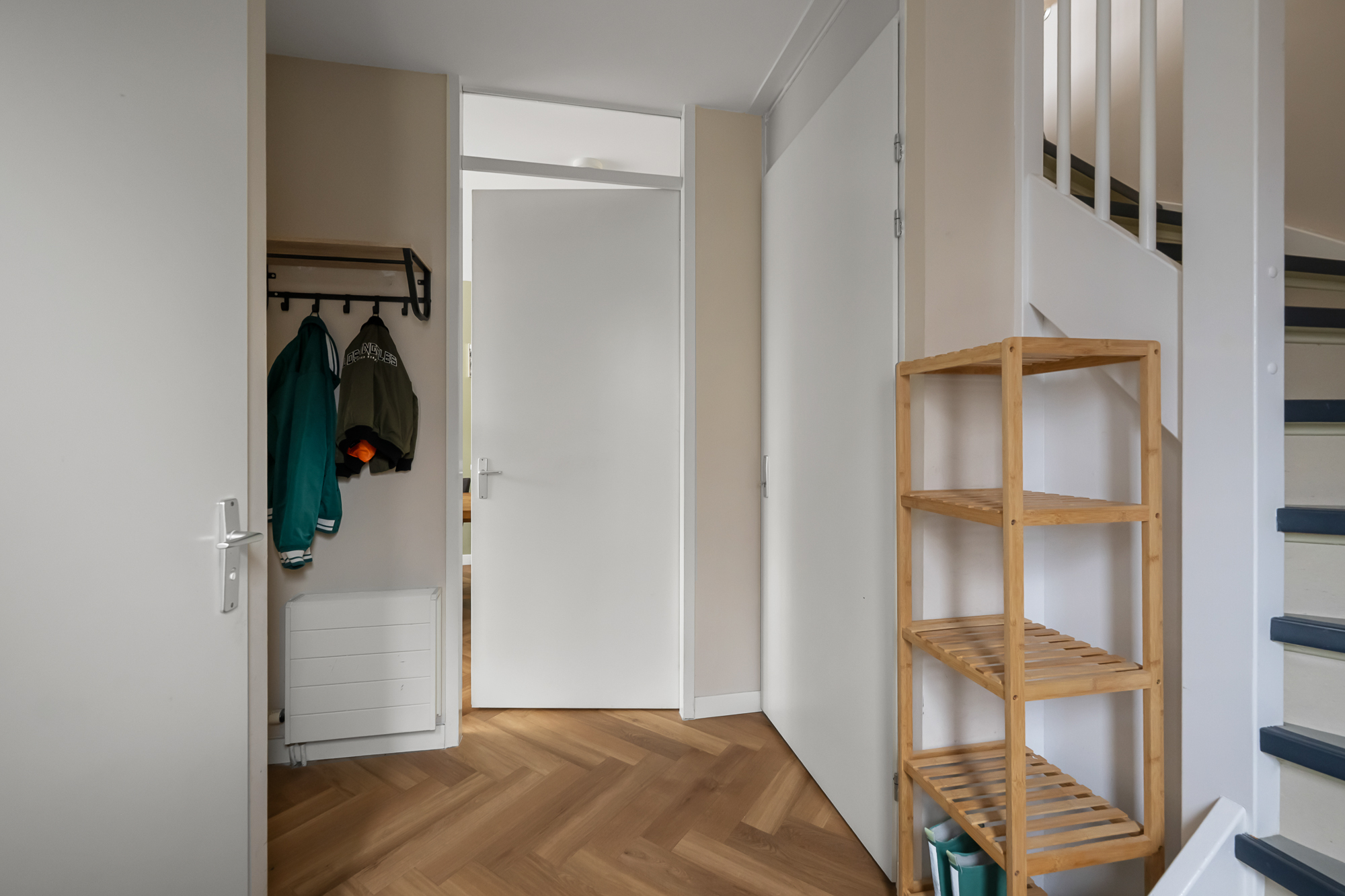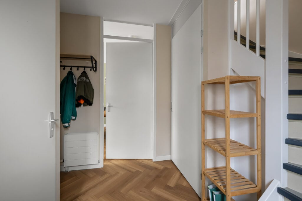– fraaie visgraatvloer en strak afgewerkte wanden met sierlijsten;