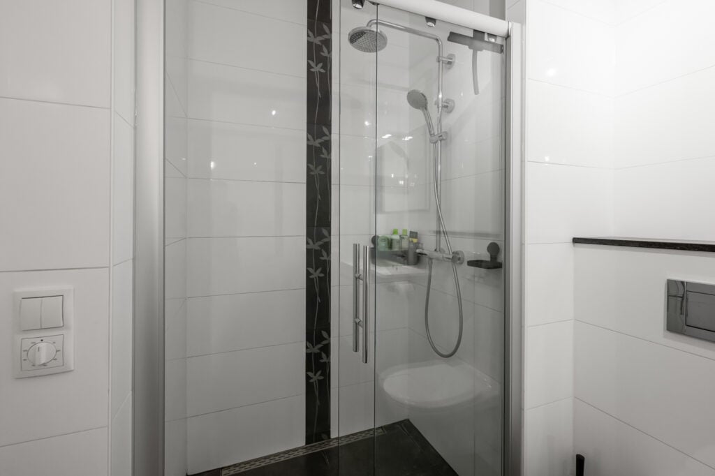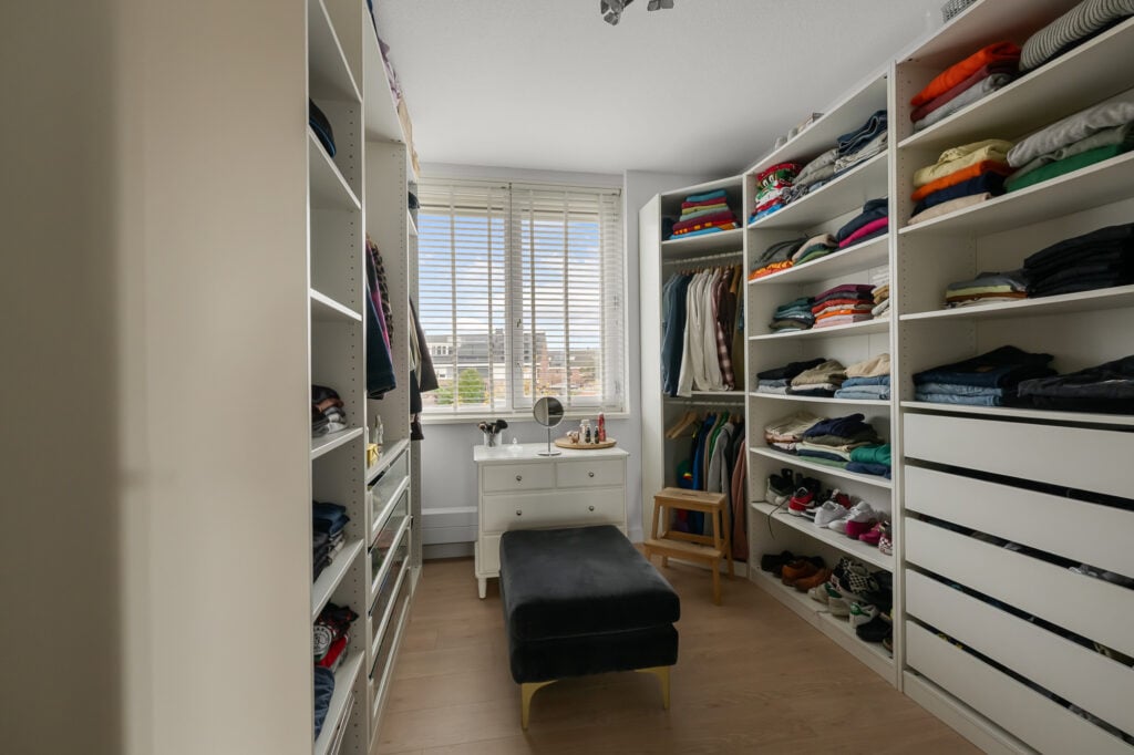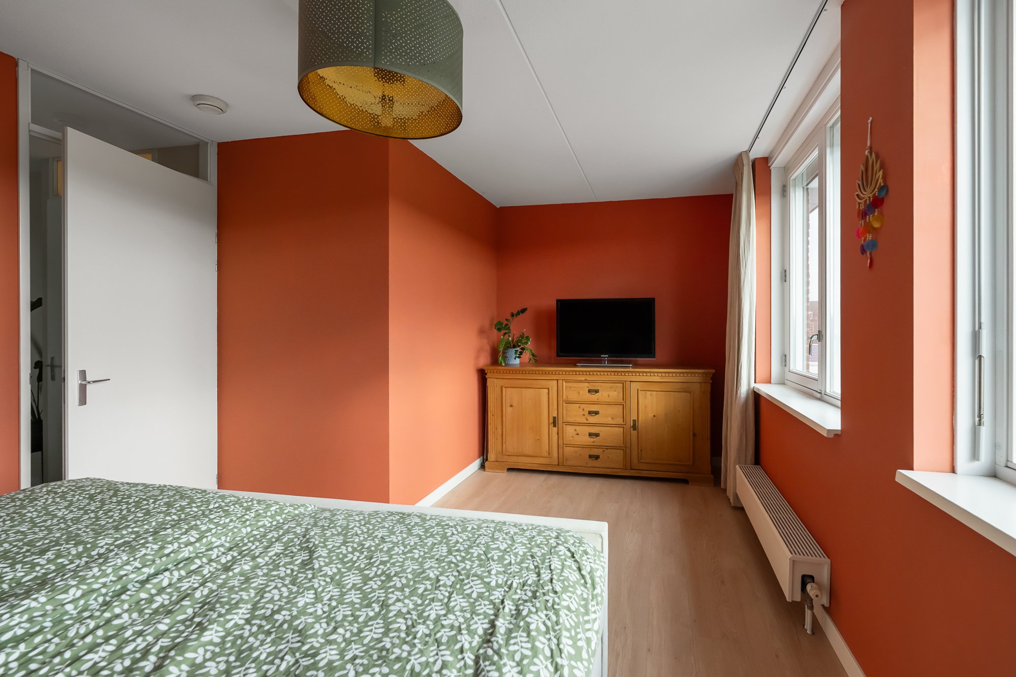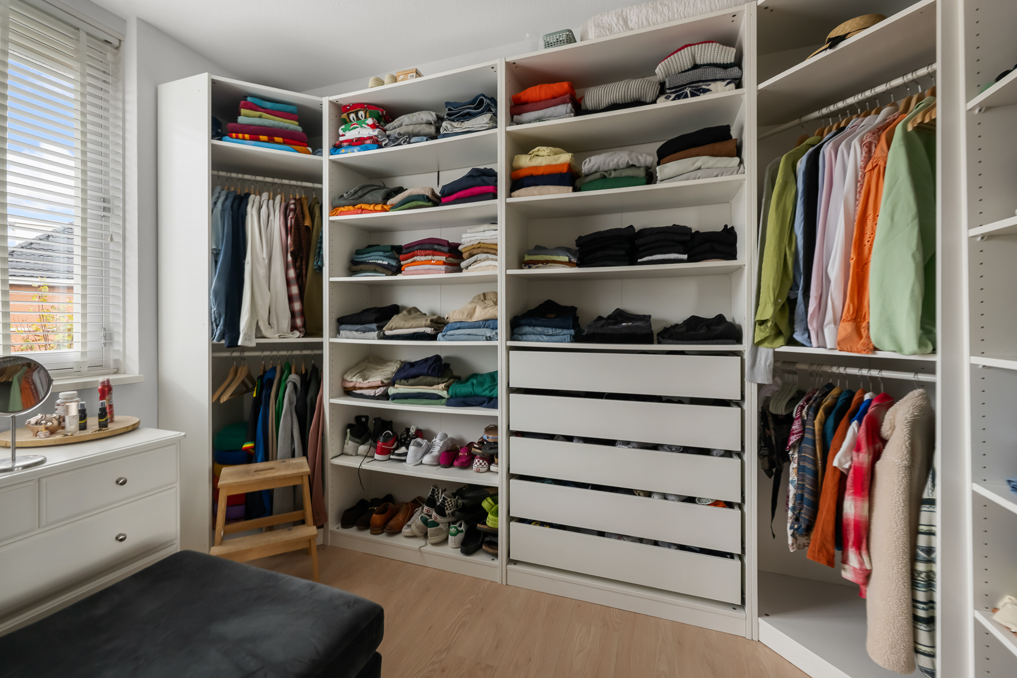 Via de ruime overloop zijn drie comfortabele slaapkamers bereikbaar. De hoofdslaapkamer en de kinderkamer zijn voorzien van airconditioning, wat zorgt voor een aangenaam binnenklimaat, ook op warme zomerdagen. Alle slaapkamers beschikken over rolluiken, waarvan één gedeeltelijk verduisterend is. De derde kamer wordt momenteel gebruikt als inloopkast, maar kan eenvoudig worden omgevormd tot een volwaardige slaapkamer of bijvoorbeeld een fijne werk- of hobbyruimte.
