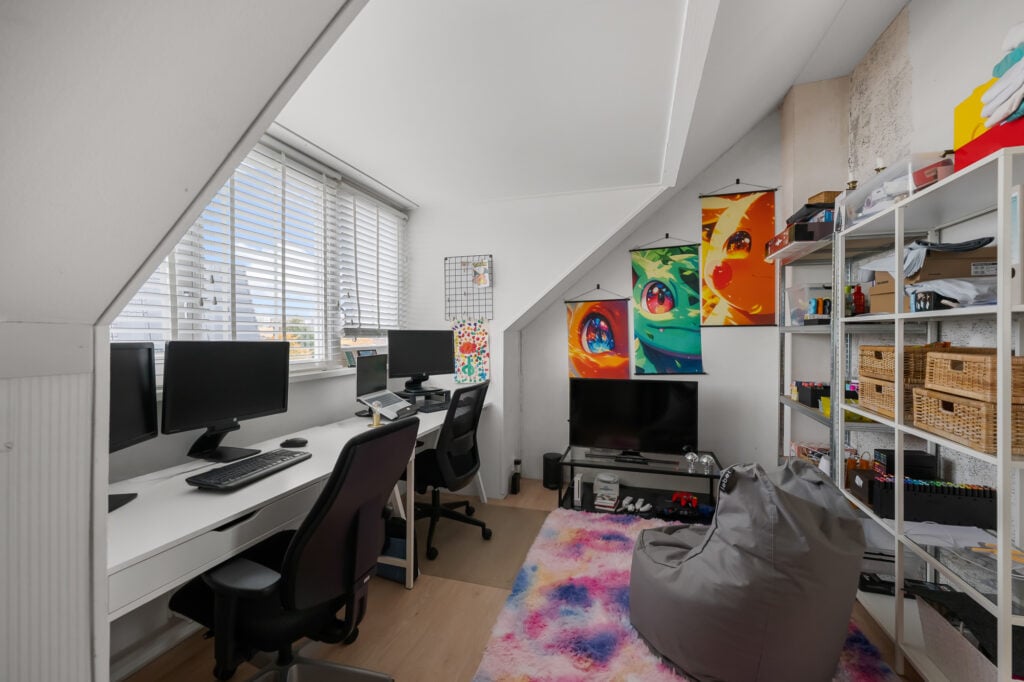 Op de tweede verdieping bevindt zich een overloop met aansluitingen voor de wasmachine, de cv-ketel en de WTW-unit. Daarnaast zijn er twee slaapkamers, beide voorzien van een dakkapel – één aan de voorzijde en één aan de achterzijde, waardoor de ruimtes extra licht en comfortabel aanvoelen. Deze verdieping biedt daarmee volop mogelijkheden, bijvoorbeeld als extra slaapkamers, werkruimte of hobbykamer.