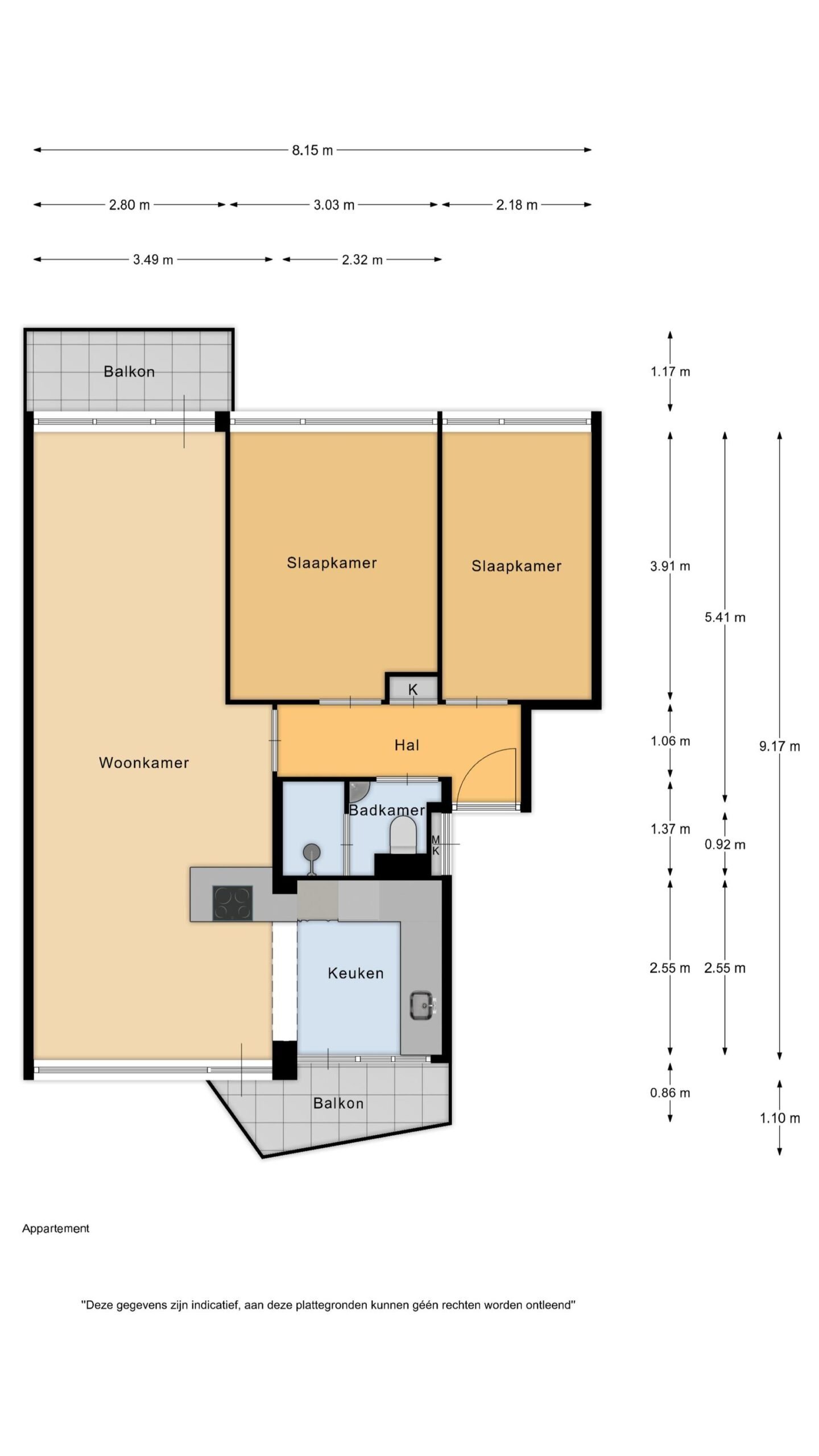 Het appartement beschikt over twee slaapkamers van goed formaat die veelzijdig in gebruik zijn, bijvoorbeeld als slaap-, werk- of logeerkamer. De badkamer is netjes ingericht met een douche en wastafel, en ook het toilet is dankzij de slimme indeling efficiënt in de ruimte opgenomen.