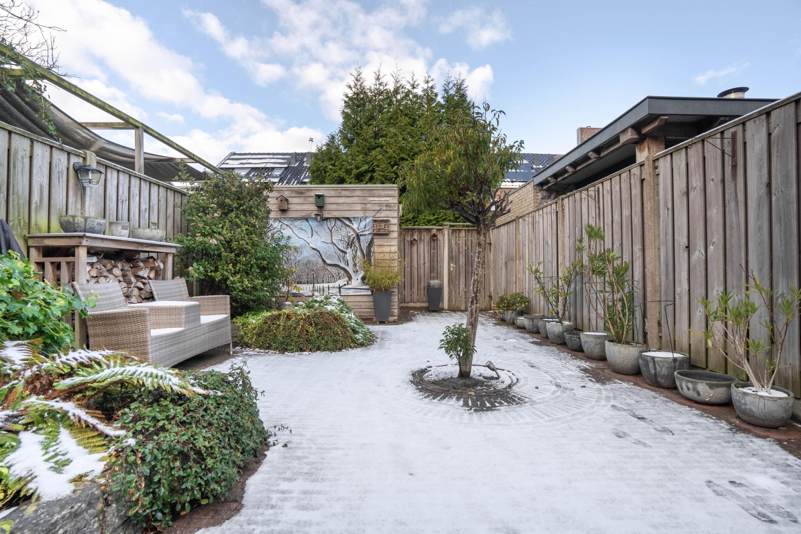• Diepe achtertuin met berging en achterom op noord-westen gelegen