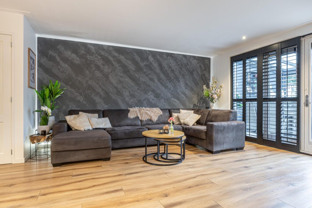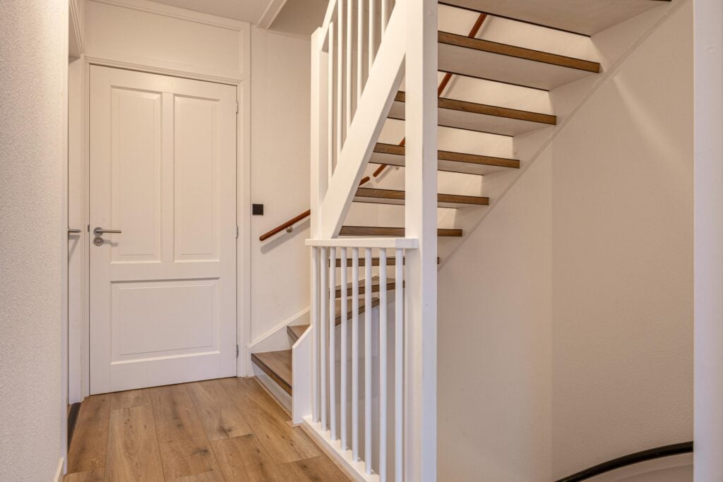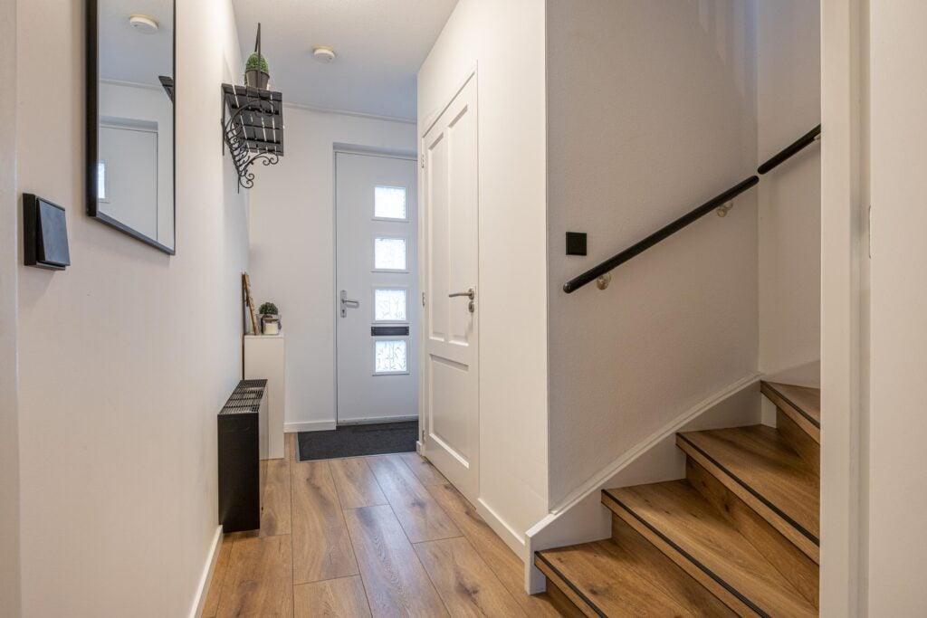 • Zowel de begane grond als de trap zijn voorzien van stijlvolle PVC vloeren en de wanden zijn professioneel gestuct, wat de warme uitstraling van de woning versterkt. De 1e verdieping is voorzien van een laminaatvloer en de 2e verdieping heeft vloerbedekking.