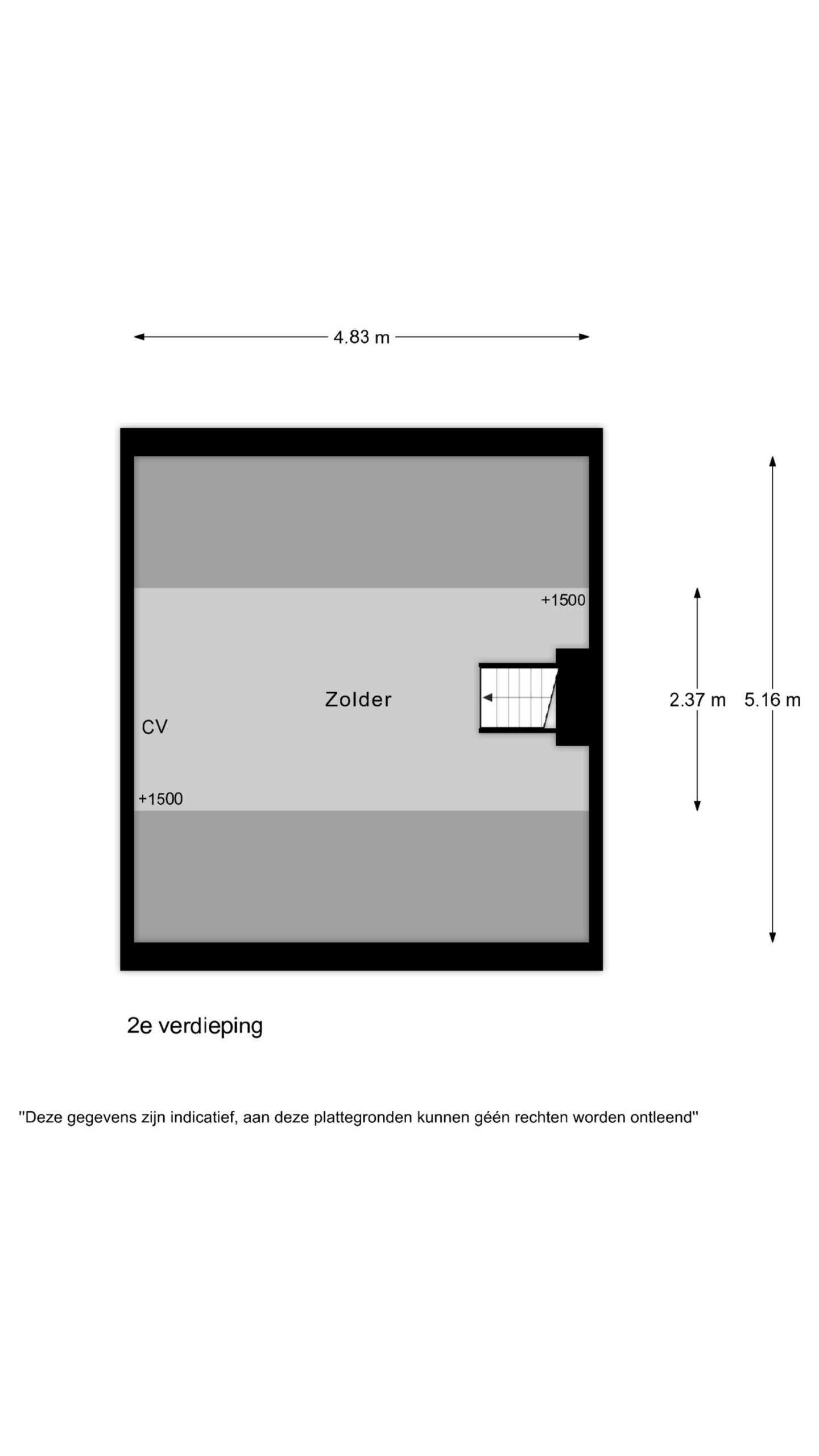 Via een vlizotrap is de vliering bereikbaar, met extra bergruimte en de opstelplaats voor de cv-installatie.