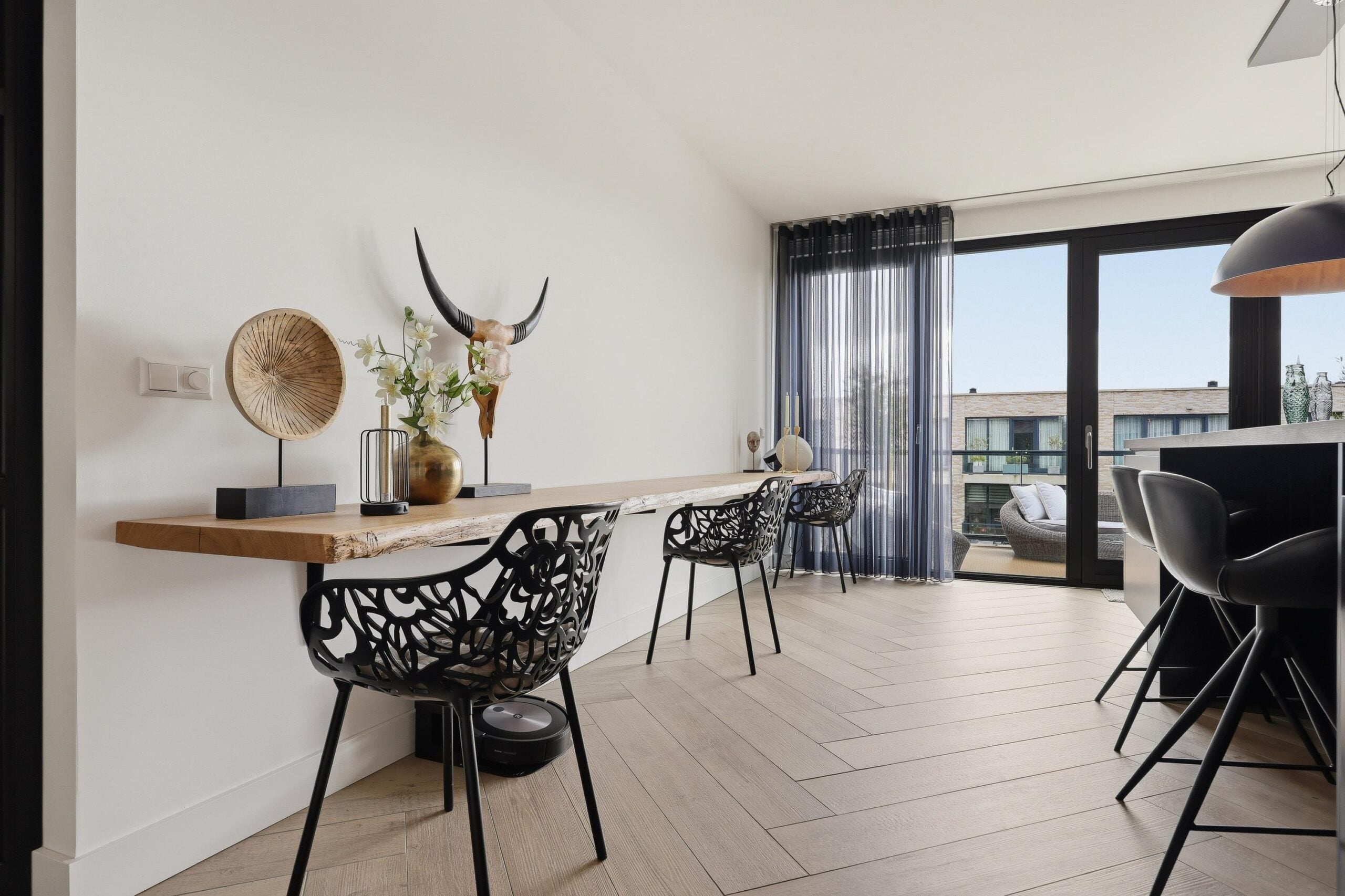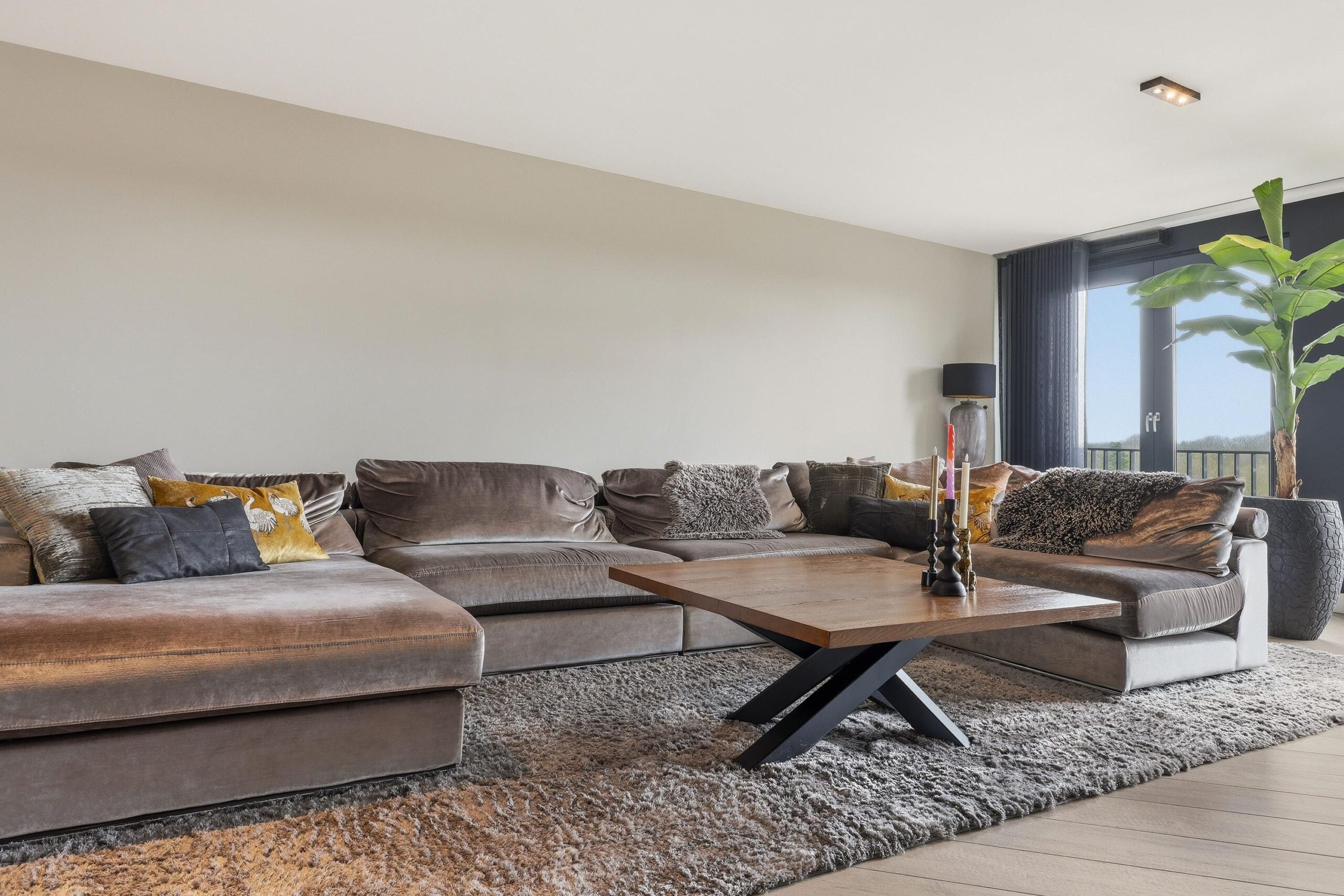 – ruime living met 2x Frans balkon en gezellige bio ethanol haard;