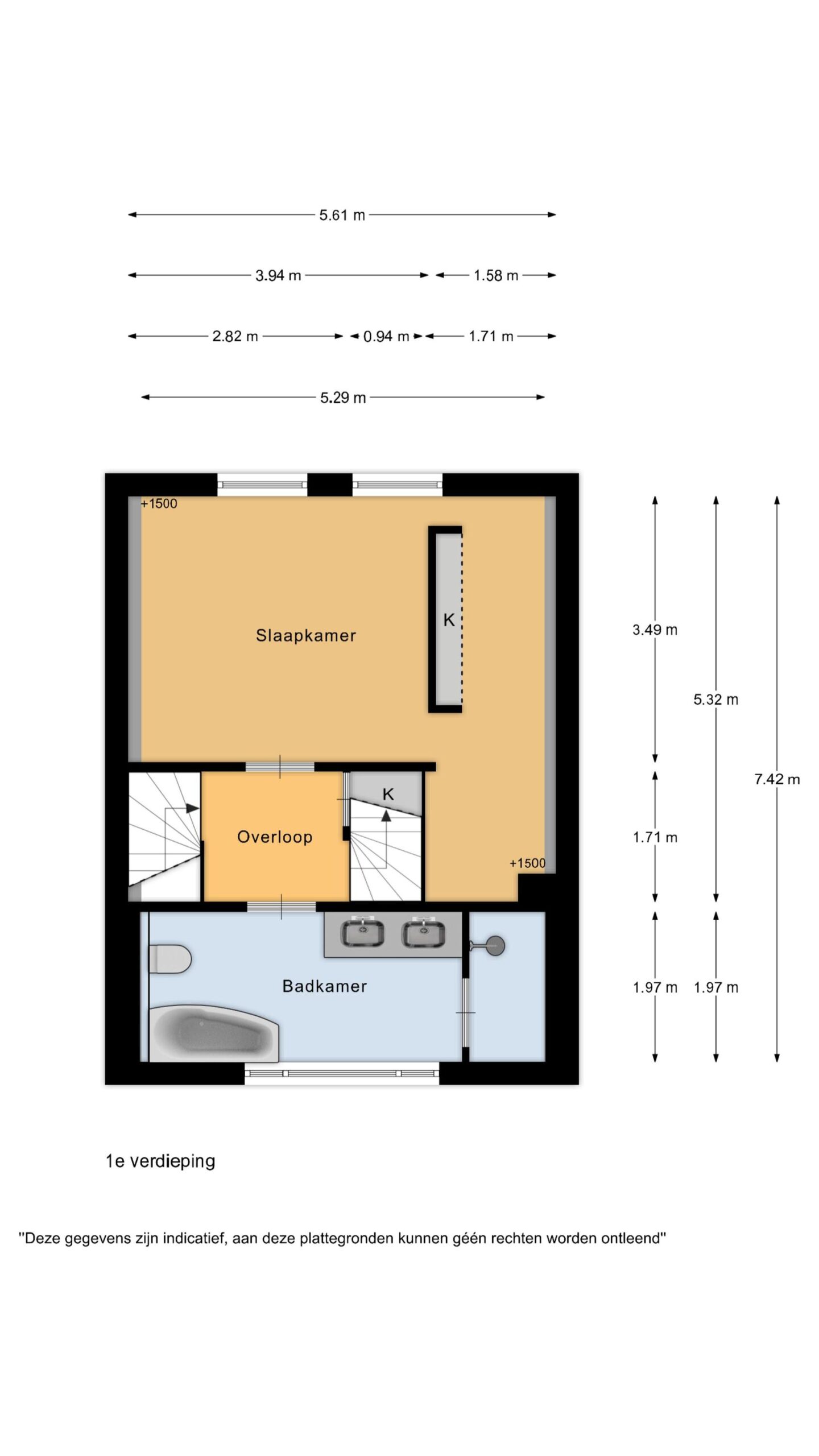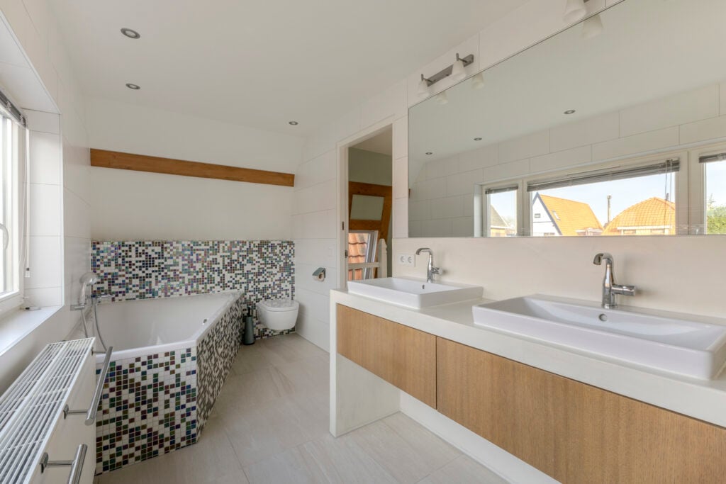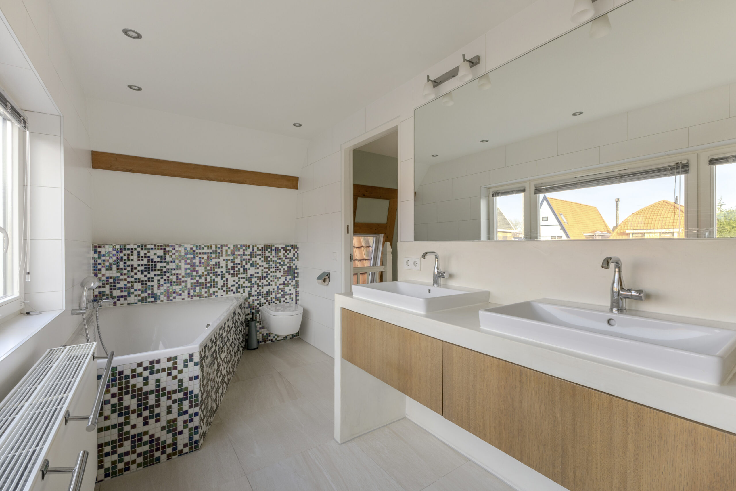 Op de eerste verdieping bevindt zich een royale slaapkamer met een praktische inloopkast. Daarnaast is hier een opvallend ruime en complete badkamer gerealiseerd. Deze moderne badkamer, eveneens vernieuwd in 2017, beschikt over een ligbad, een aparte douche, een dubbele wastafel en een tweede toilet. Een heerlijke wellness-achtige ruimte waar comfort en luxe samenkomen en waar je de dag ontspannen begint en afsluit.