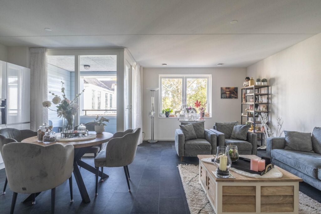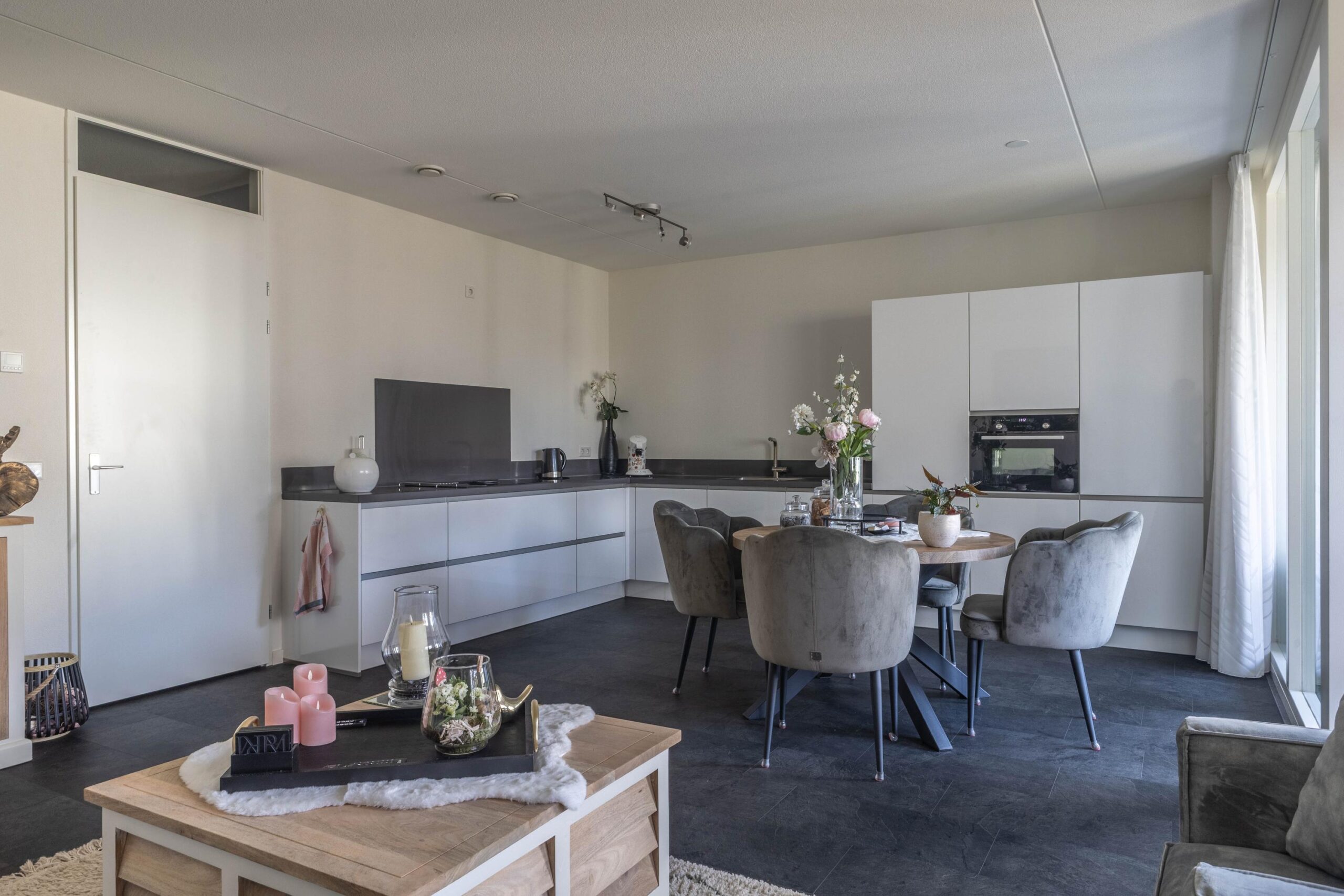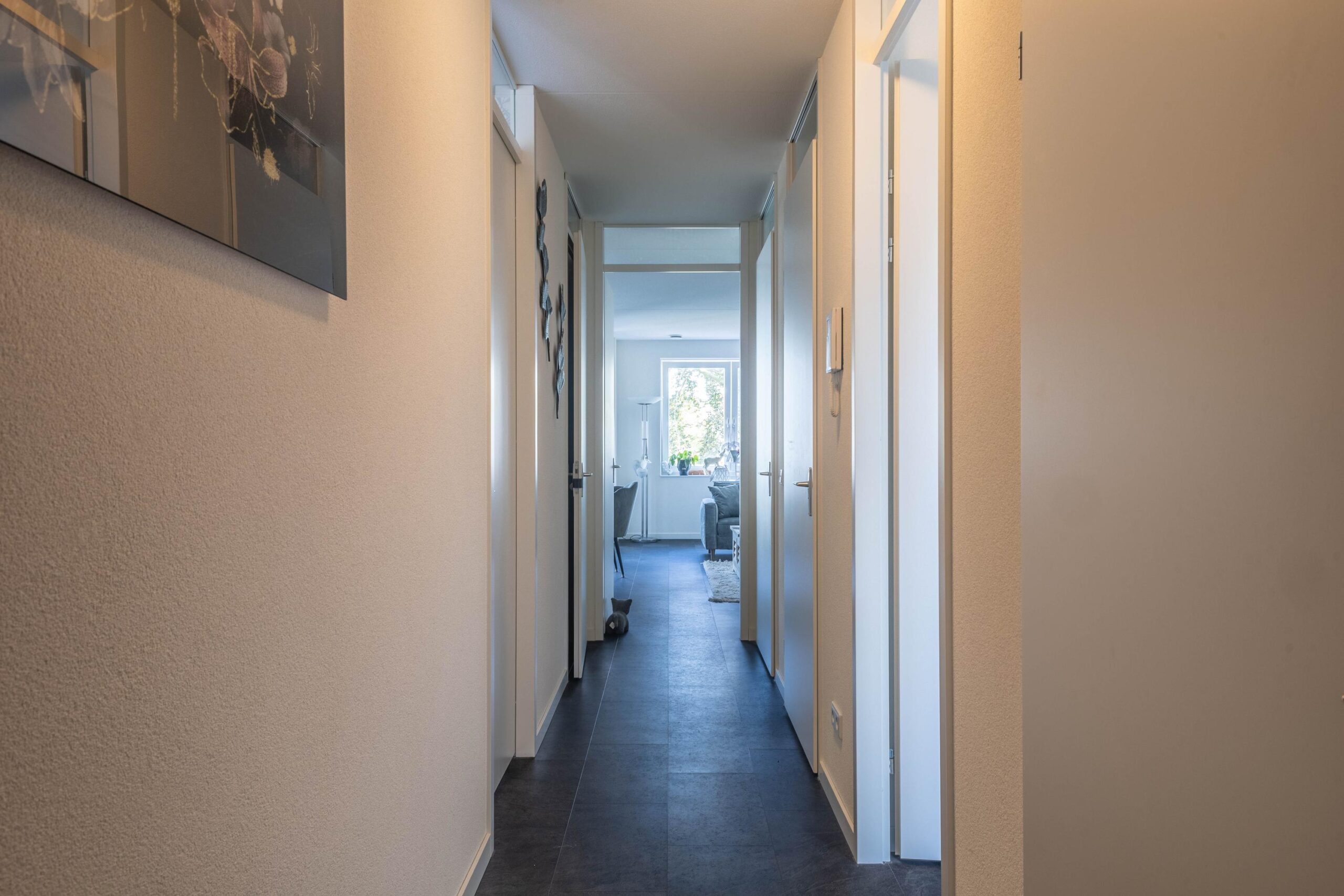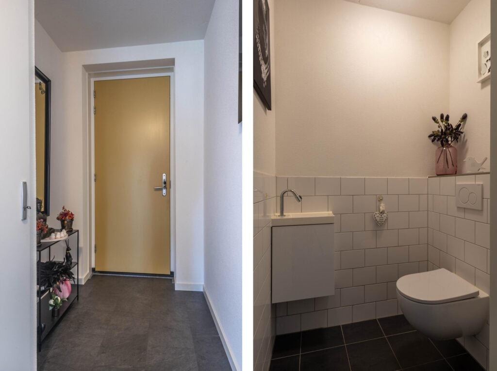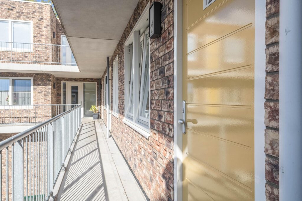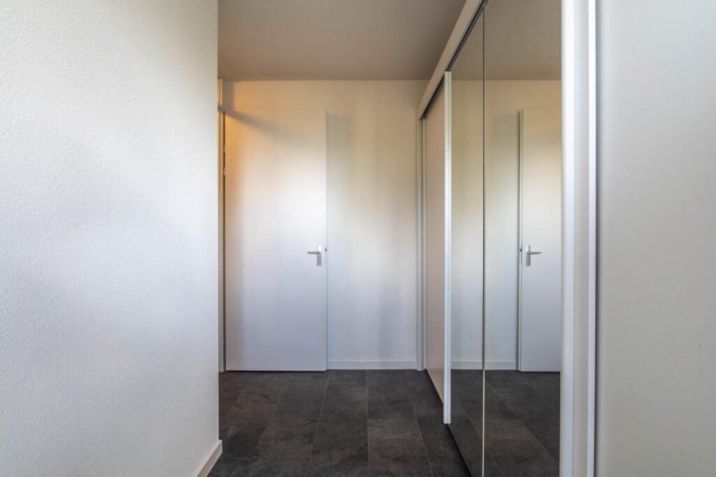 Het appartement ligt in een jong, modern complex (2020) met lift en uitstekende isolatie. De centrale hal maakt direct een verzorgde indruk en via de galerij bereik je de voordeur van het appartement. Op het afgesloten binnenterrein bevinden zich de privéparkeerplaats én een eigen fietsenberging, praktisch en veilig.