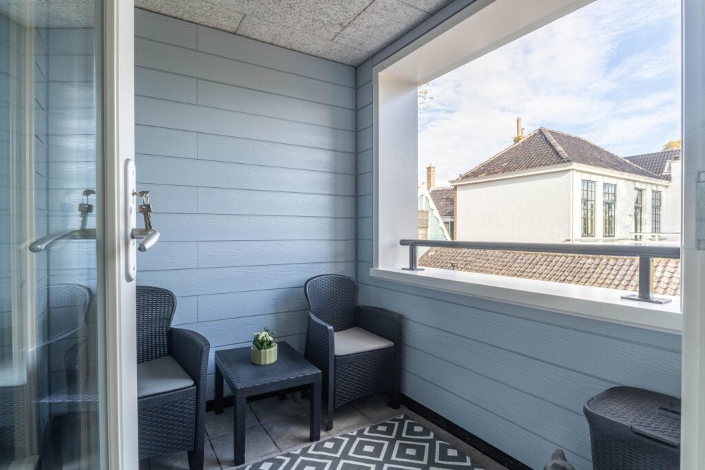 Via de woonkamer stap je het balkon op, een heerlijke plek voor je eerste kop koffie in de ochtendzon of een ontspannen avondmoment.