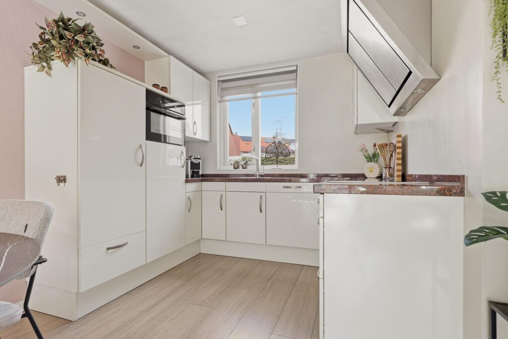 Aan de voorzijde bevindt zich de ruime keuken in praktische C-opstelling. Hier beschik je over volop werk- en bergruimte, ideaal voor dagelijks gebruik én gezellige avonden koken. De keuken is voorzien van diverse inbouwapparatuur, waarvan meerdere onderdelen recent zijn vernieuwd, waaronder de koel-vriescombinatie, vaatwasser en combi-oven. Het granieten werkblad maakt het geheel compleet en geeft de keuken een luxe uitstraling.
